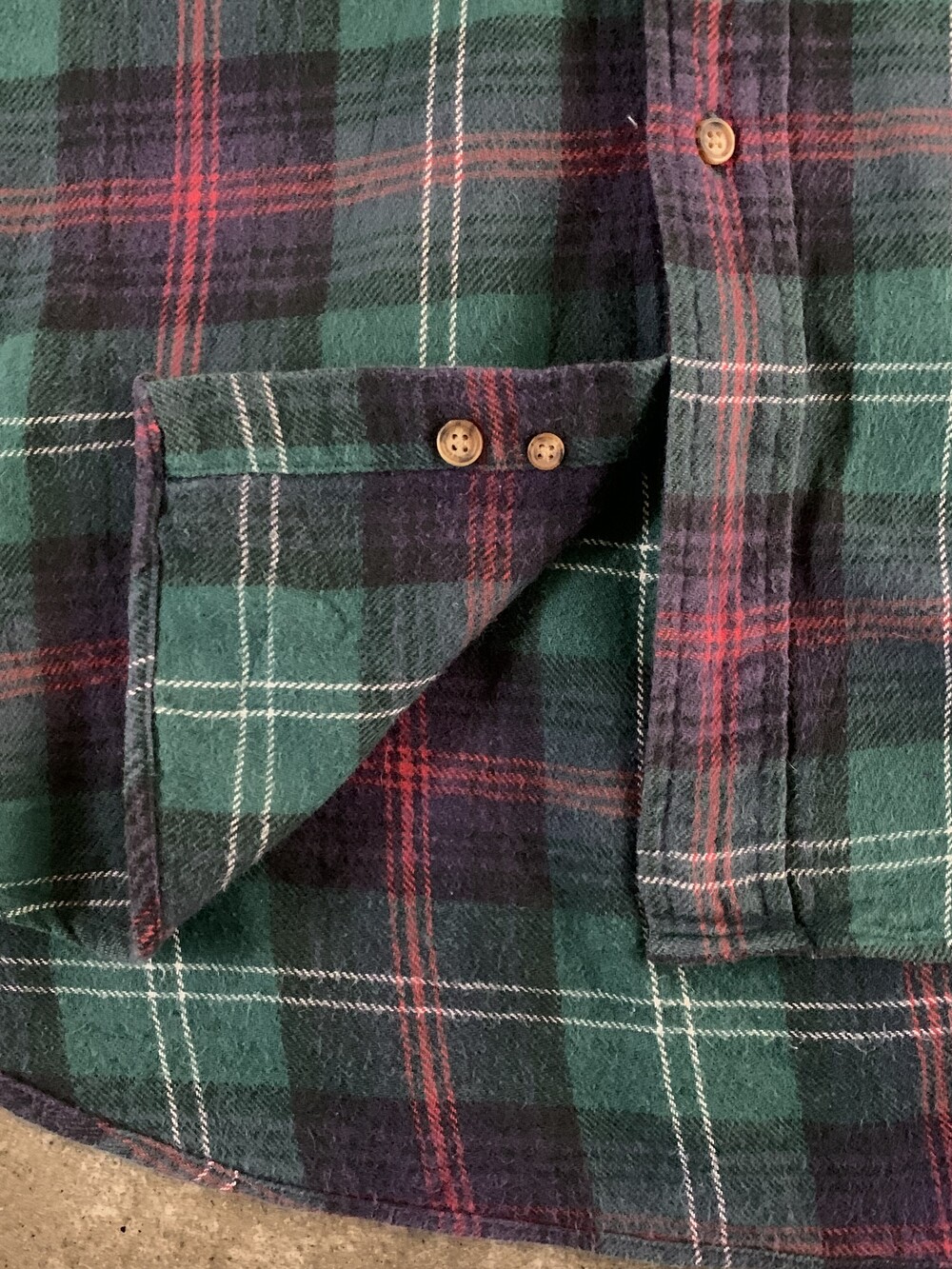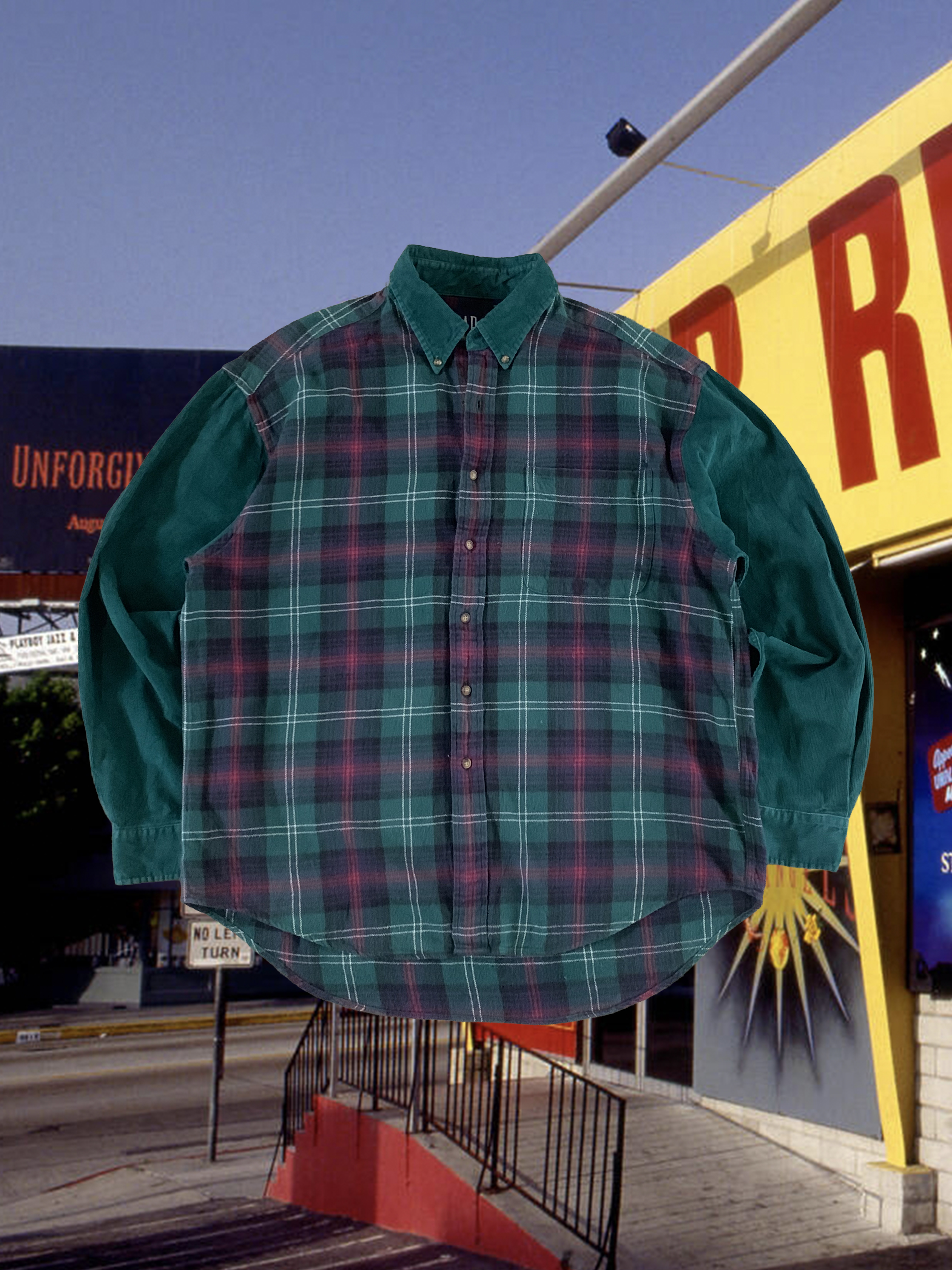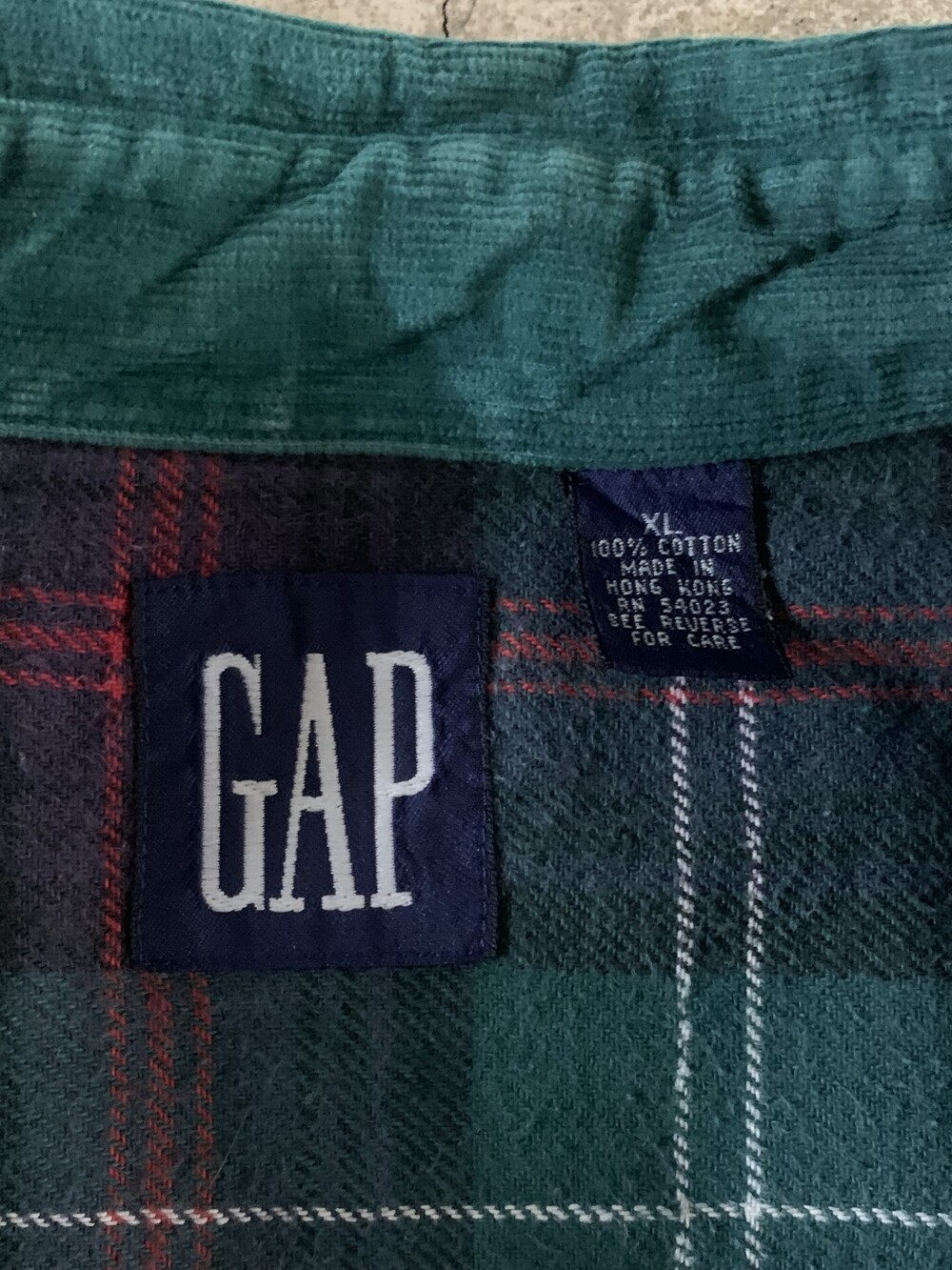 1980-90년대 아메리칸 캐주얼을 대표하는 브랜드 중에서도 누구나 쉽게 입을 수 있을만한 캐주얼 분위기의 브랜드 갭(GAP)의 버튼다운 셔츠. 소매와 칼라는 코듀로이, 몸판은 두껍지 않으면서도 겉면이 기모가 일어난 플란넬 원단으로 구성되어 한 가지 옷에 두 가지 이상의 소재가 섞인 스위칭 셔츠.