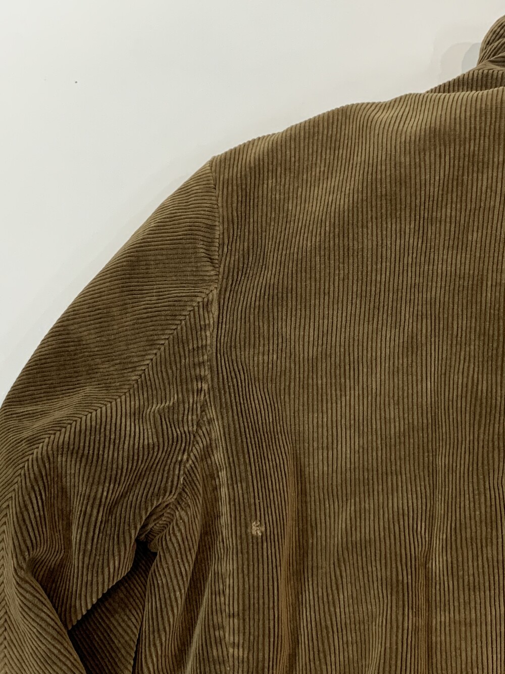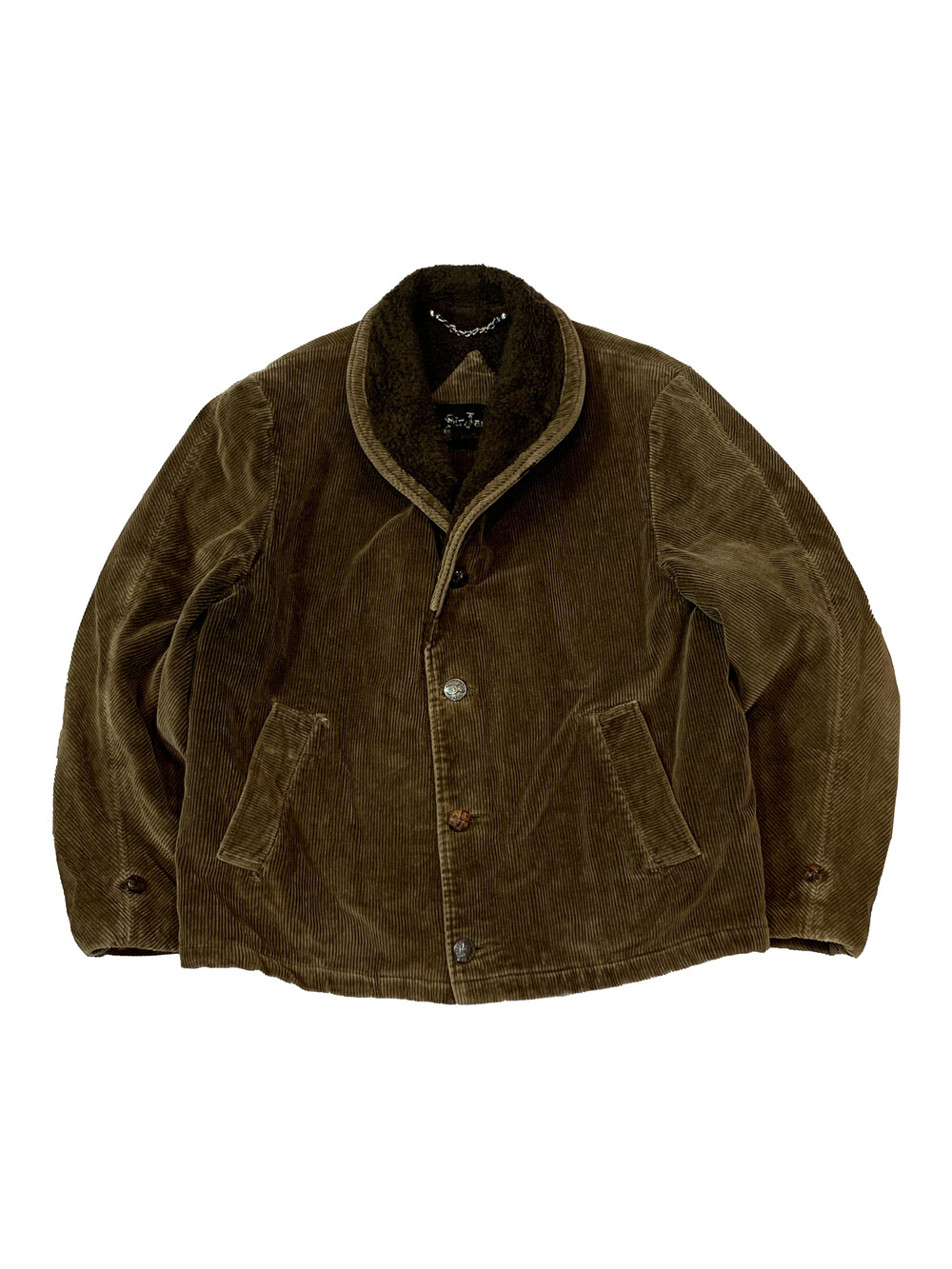 코듀로이 겉감, 칼라와 라펠 구분 없는 숄칼라, 이너와 칼라에 붙은 보아 플리스 조합이 돋보이는 SIR JAC 브랜드의 코듀로이 자켓입니다. 소재감 뿐만 아니라 착용 시 둥글게 떨어지는 실루엣이 따뜻한 느낌을 자아내는 제품으로, 적절한 레이어드 시 겨울철에도 입을 수 있을만한 제품입니다.
