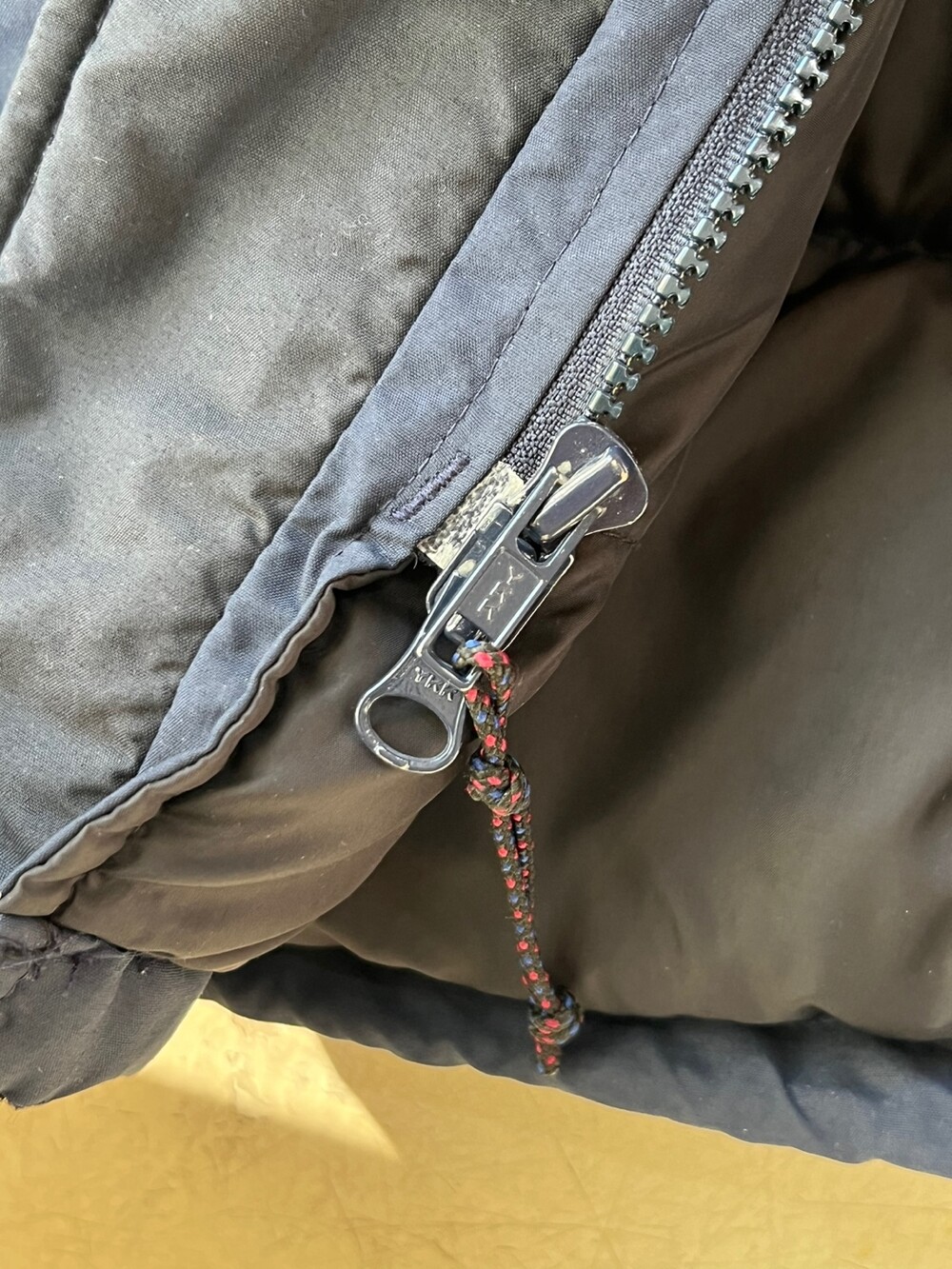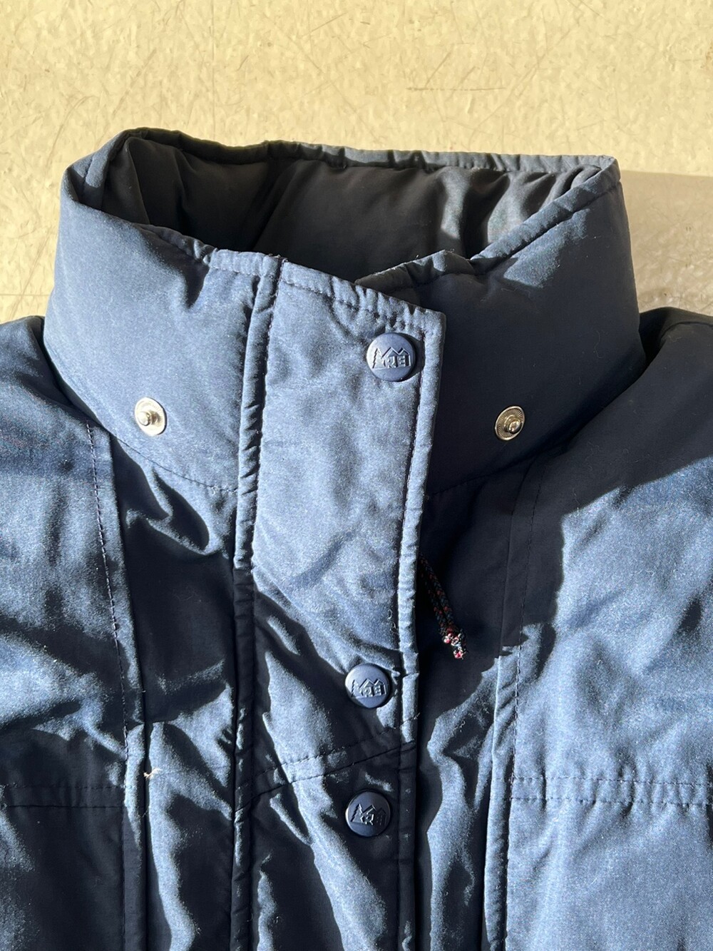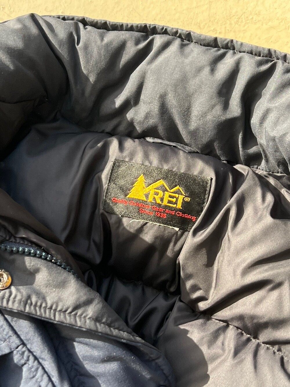 미국의 아웃도어 브랜드 R.E.I. 의 다운 자켓입니다. 본래 분리 가능한 후드가 결합되어 출시된 제품으로, 해당 제품은 후드가 유실되고 자켓만 있는 제품입니다. 전면에 지퍼 및 스냅으로 열고 닫을 수 있는 포켓 4개, 그리고 플리스가 깔린 핸드워머 용도의 찔러넣는 포켓 4개 총 8개의 포켓이 있는 제품입니다.