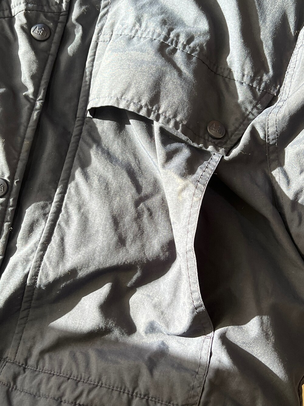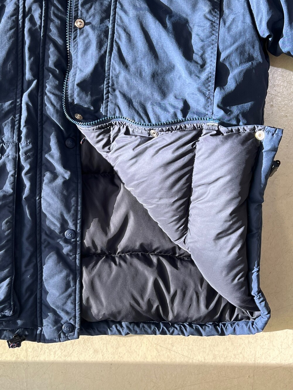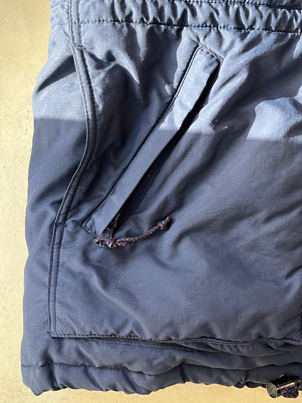 미국의 아웃도어 브랜드 R.E.I. 의 다운 자켓입니다. 본래 분리 가능한 후드가 결합되어 출시된 제품으로, 해당 제품은 후드가 유실되고 자켓만 있는 제품입니다. 전면에 지퍼 및 스냅으로 열고 닫을 수 있는 포켓 4개, 그리고 플리스가 깔린 핸드워머 용도의 찔러넣는 포켓 4개 총 8개의 포켓이 있는 제품입니다.