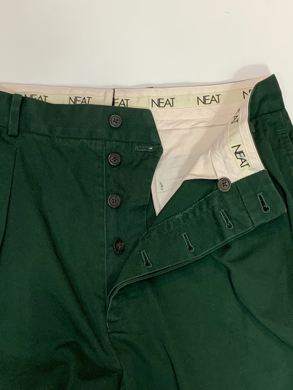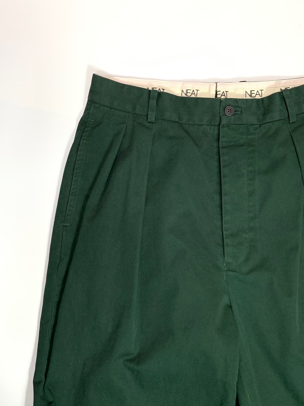 🚩Detail 매 시즌마다 캐리오버되는 대표적인 아이템으로, 전면에 깊은 두 개의 플리츠가 특징적인 니트(NEAT)의 치노팬츠. 셔츠나 티셔츠를 턱인하기에 좋을만한 제품이지만 개의치않고 캐주얼한 셔츠를 빼입거나 스포티한 나일론 자켓 등 캐주얼한 착장에 활용하기에도 좋을만한 제품입니다. 표기 44 사이즈로 허리나 밑단 시접이 남아있어 수선을 통해 밑단을 늘리거나 허리단을 늘릴수도 있습니다.