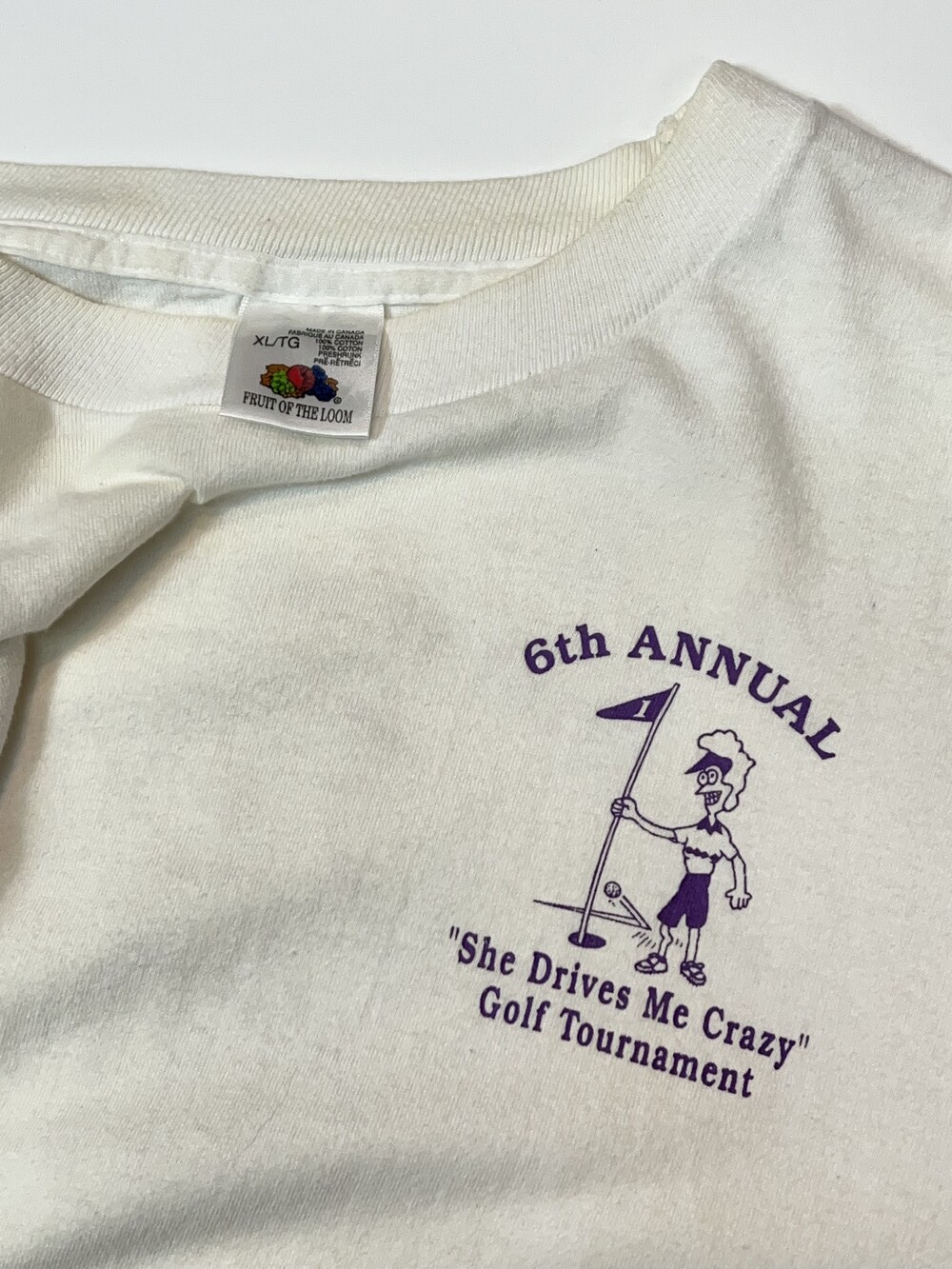 골프 토너먼트 프로모션 프린팅. 전후면 우스꽝스러우면서도 유쾌한 프린팅이 돋보이는 제품입니다.