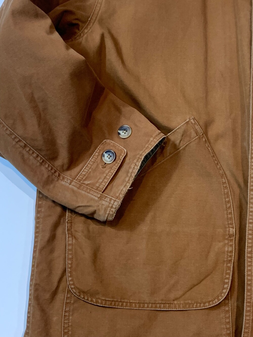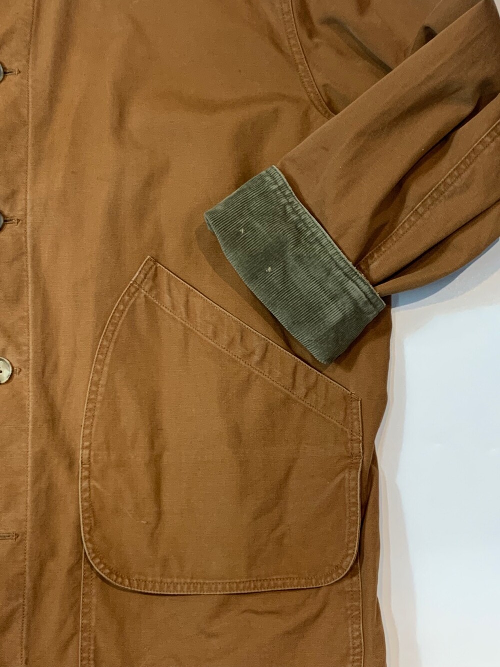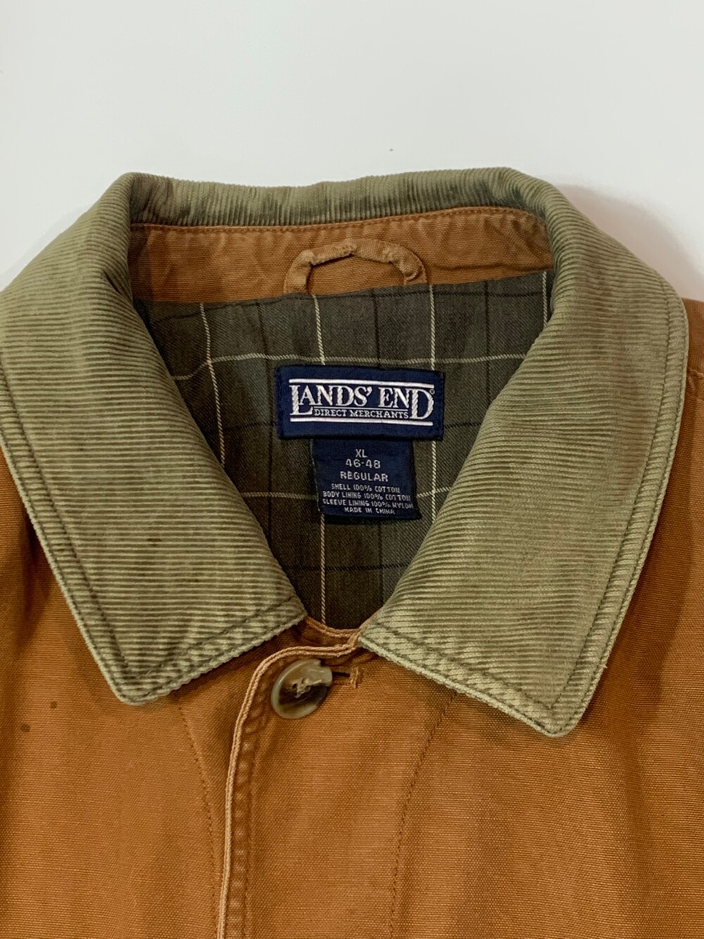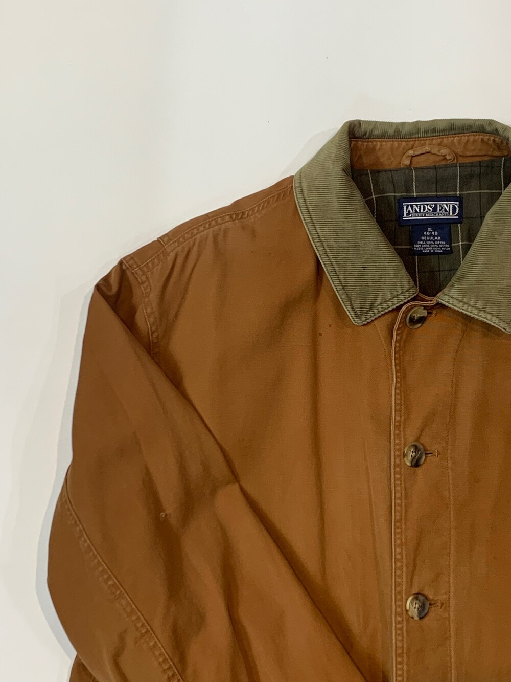 미국발 캐주얼 브랜드 랜즈엔드의 반 코트입니다. 초어자켓 혹은 반 코트로 불리우는 품목으로, 주로 볼 수 있는 사양인 덕캔버스 겉감과 플란넬 라이닝 대신 겉감은 요철감이 덜한 덕캔버스 원단, 안쪽은 얇은 코튼 원단으로 대체되어 보다 캐주얼하게 착용할 수 있는 제품입니다.