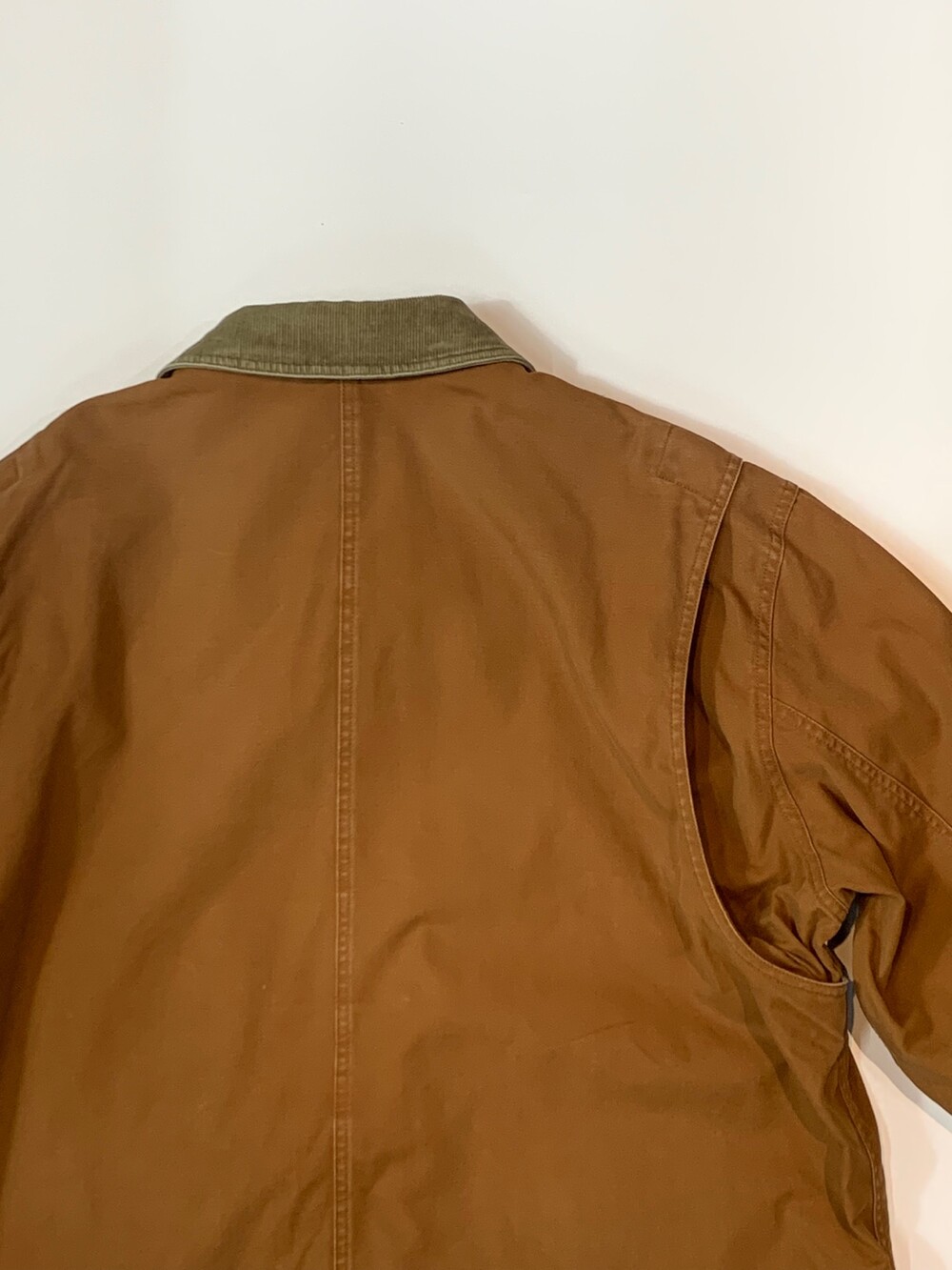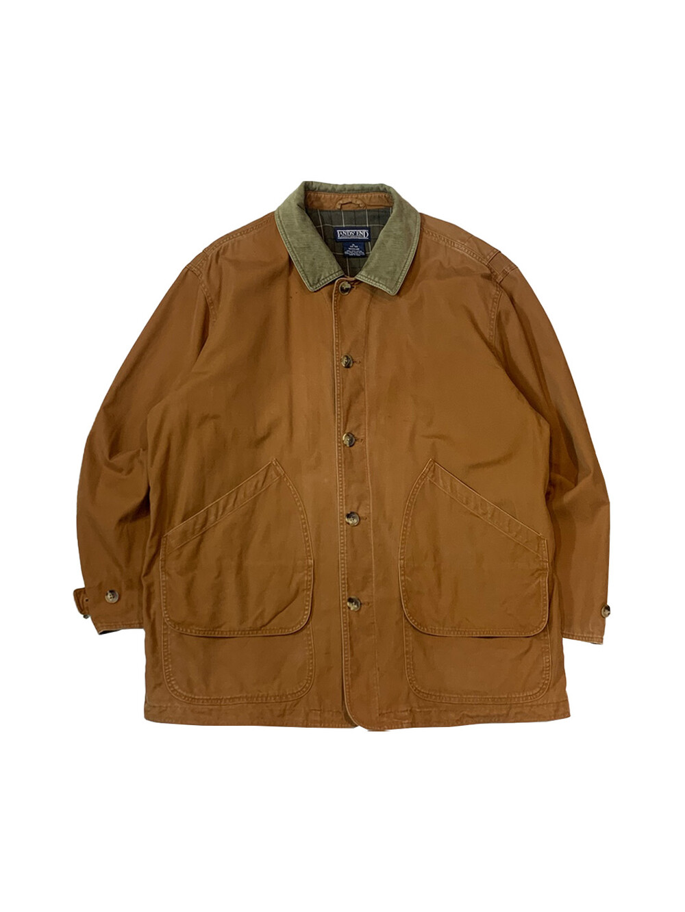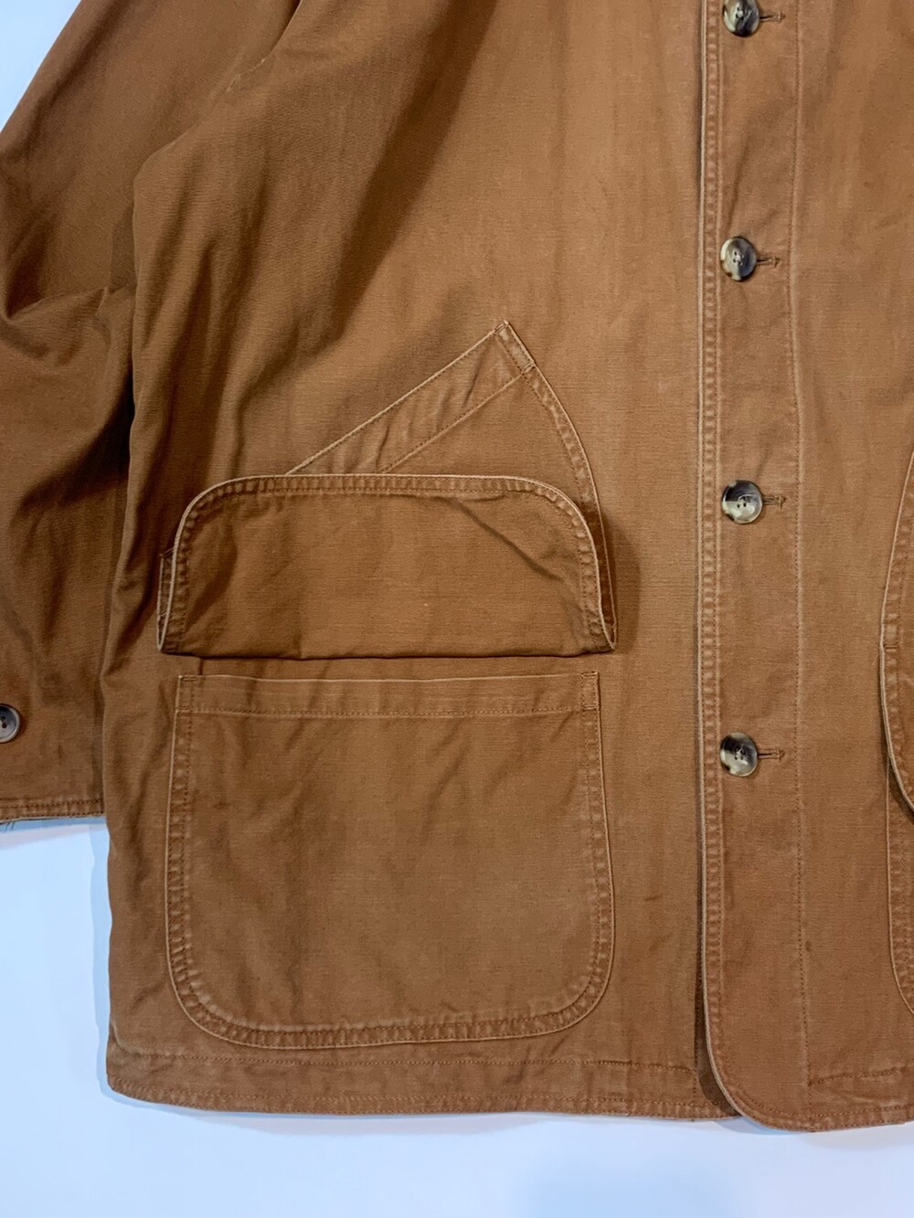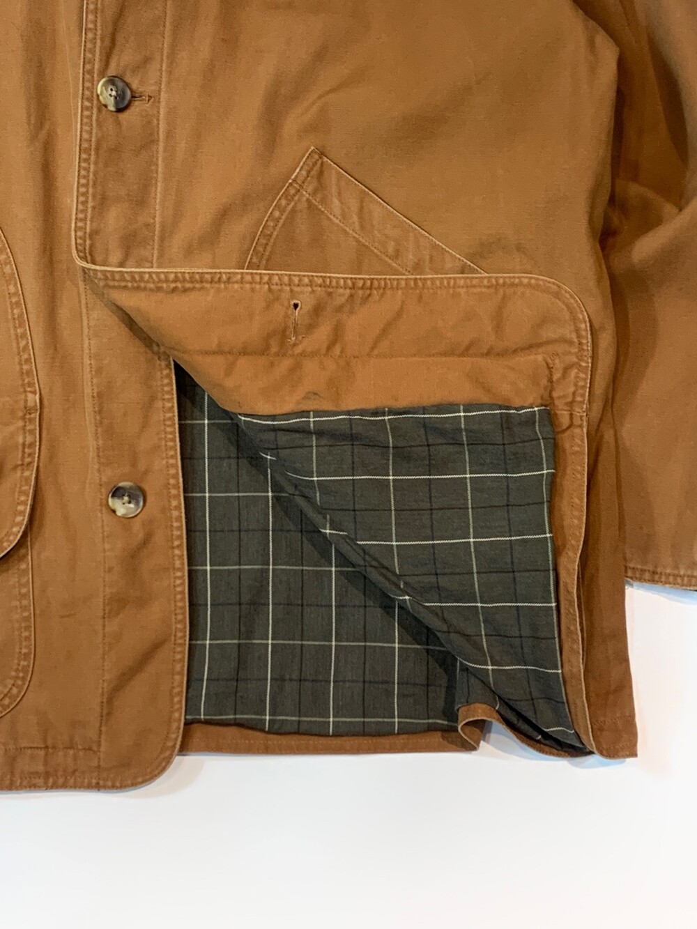 미국발 캐주얼 브랜드 랜즈엔드의 반 코트입니다. 초어자켓 혹은 반 코트로 불리우는 품목으로, 주로 볼 수 있는 사양인 덕캔버스 겉감과 플란넬 라이닝 대신 겉감은 요철감이 덜한 덕캔버스 원단, 안쪽은 얇은 코튼 원단으로 대체되어 보다 캐주얼하게 착용할 수 있는 제품입니다.