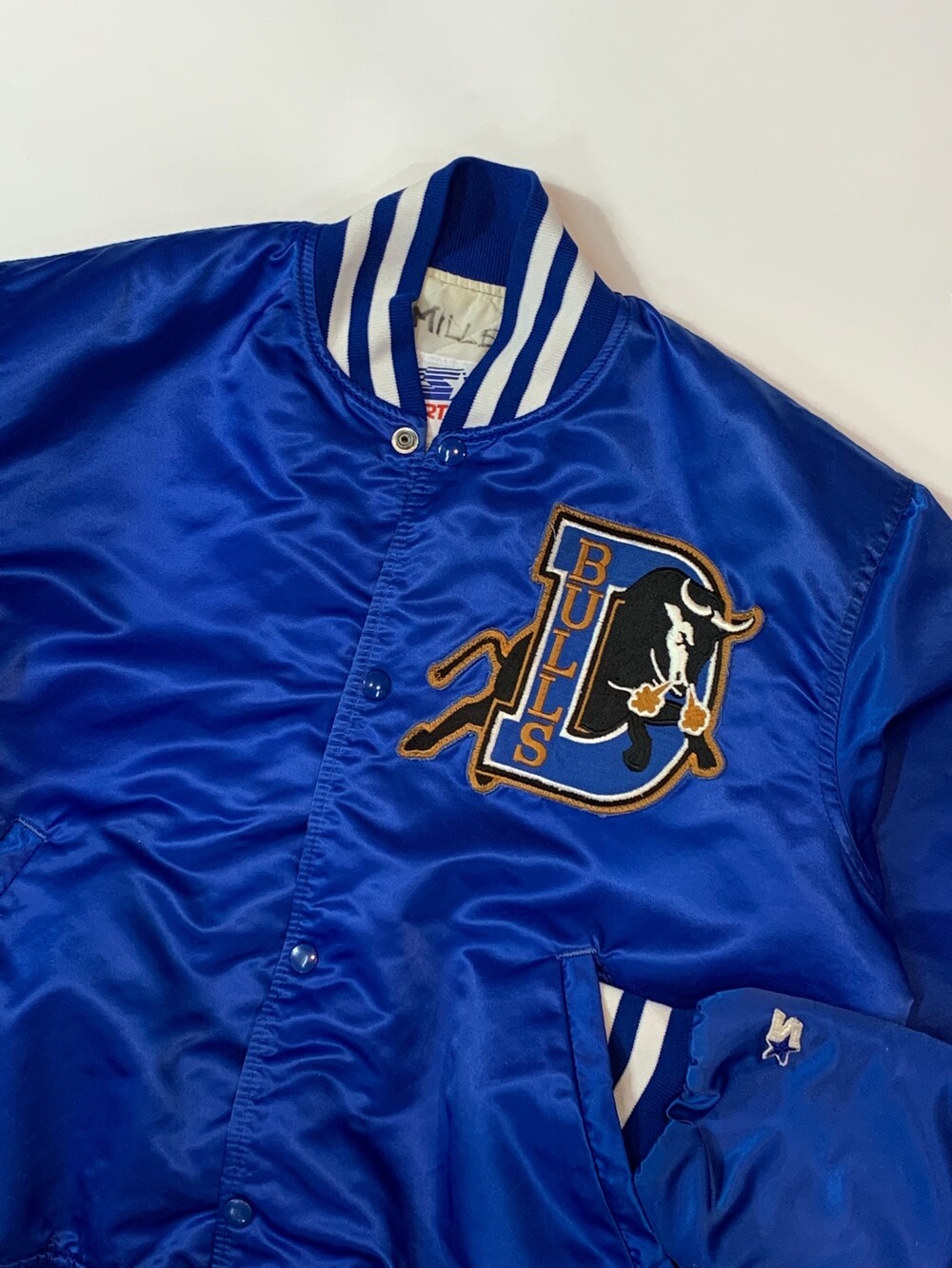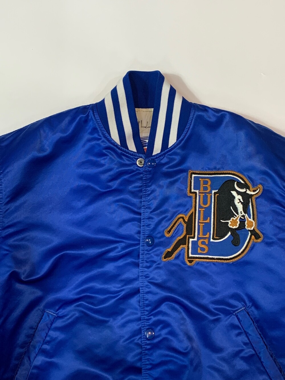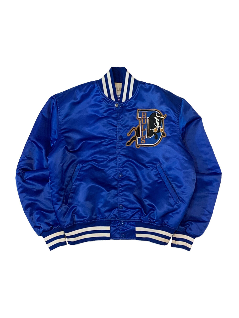 당시에는 더블A, 현재는 트리플A 소속으로 템파베이 레이스와 마이너리그 계약을 맺은 더럼 불스(DURHAM BULLS)의 스타디움 자켓입니다. 더그아웃에서 대기중인 선수들이나 매니저가 주로 업었기 때문에 메이저리그 제품에 한해서는 더그 아웃 자켓이라고도 부릅니다.