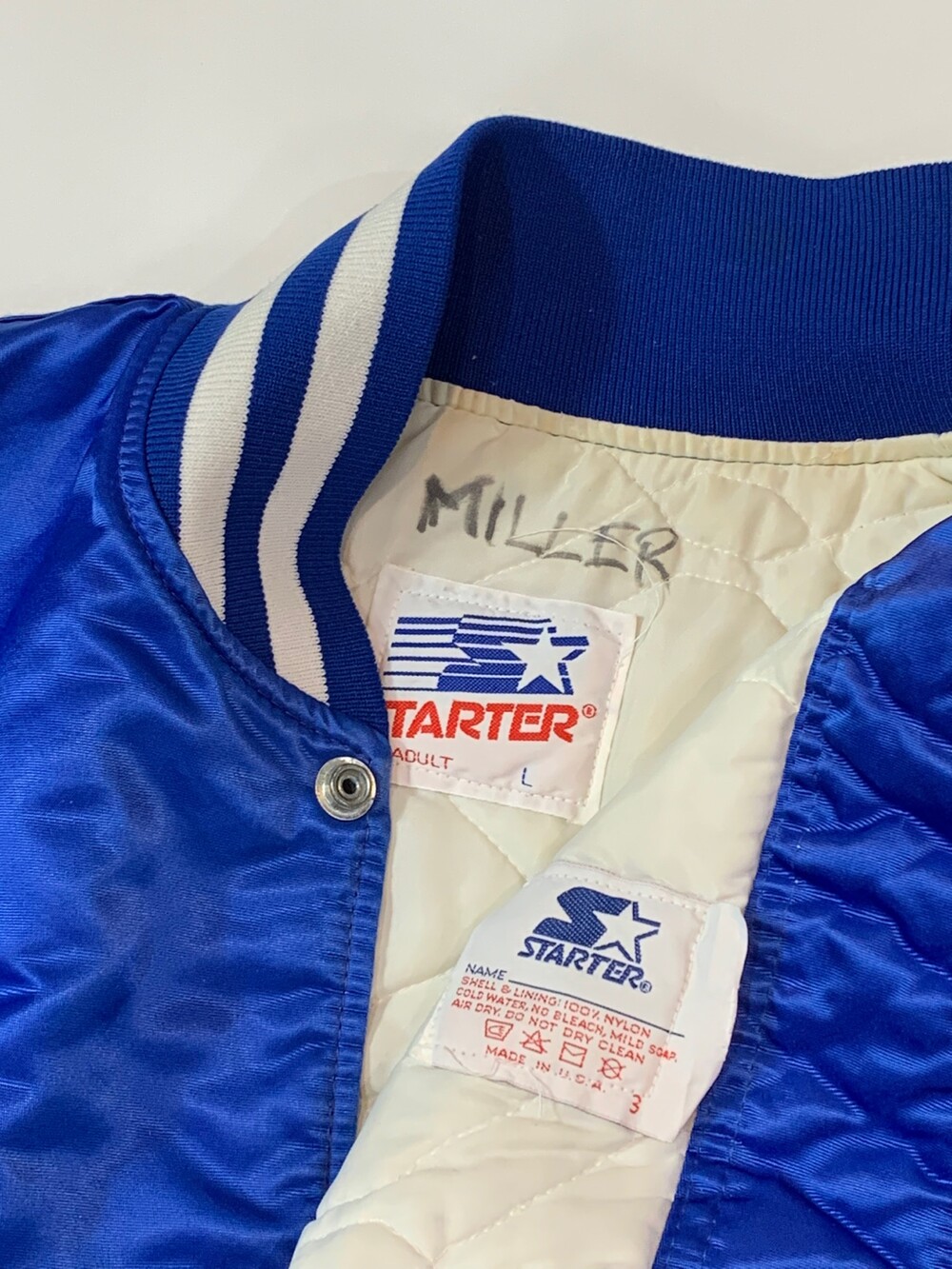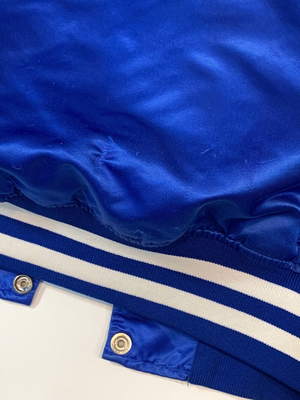 🚩Detail 고밀도 나일론 특유의 매끄러운 질감, 타이트한 립, 그리고 각 구단을 대표하는 배색이 들어가는 팀 자켓, 혹은 스타디움 자켓으로 부르는 품목입니다. 미국 내 프로레벨 리그인 NFL, NBA, MLB, NHL 등의 리그와 오피셜 라이센스 계약을 맺고 생산했던 시기의 제품으로, 힙합 문화와 결부되어 루즈한 실루엣으로 선보이는 1990년대 중후반에 생산되는 팀자켓에 비해 상대적으로 핏하면서도 스포티한 감성이 지배적인 제품입니다.