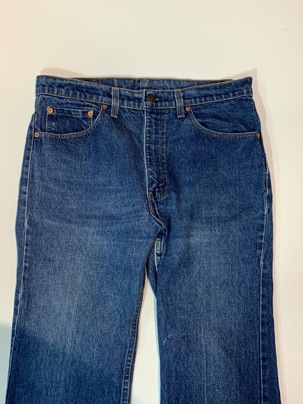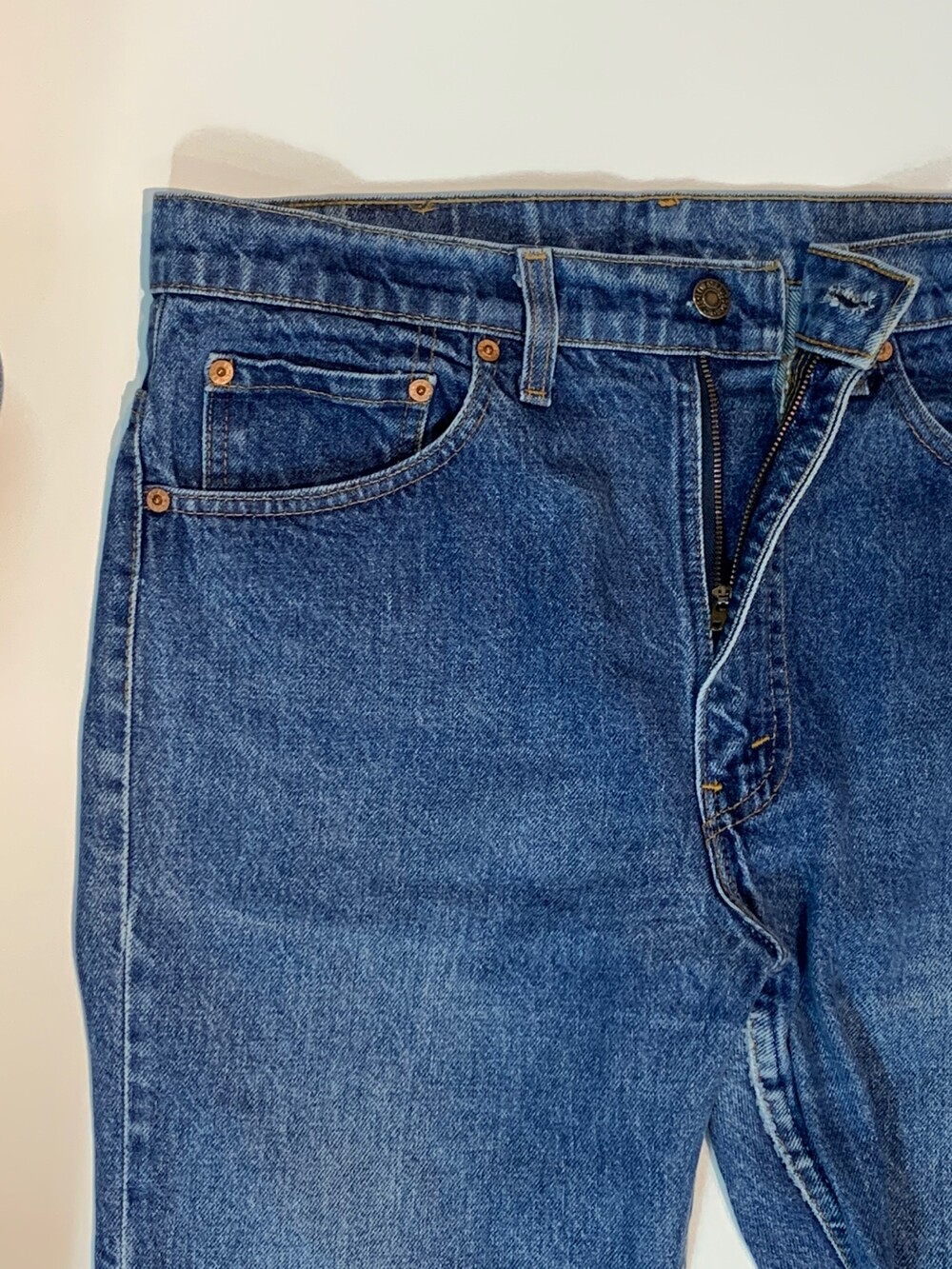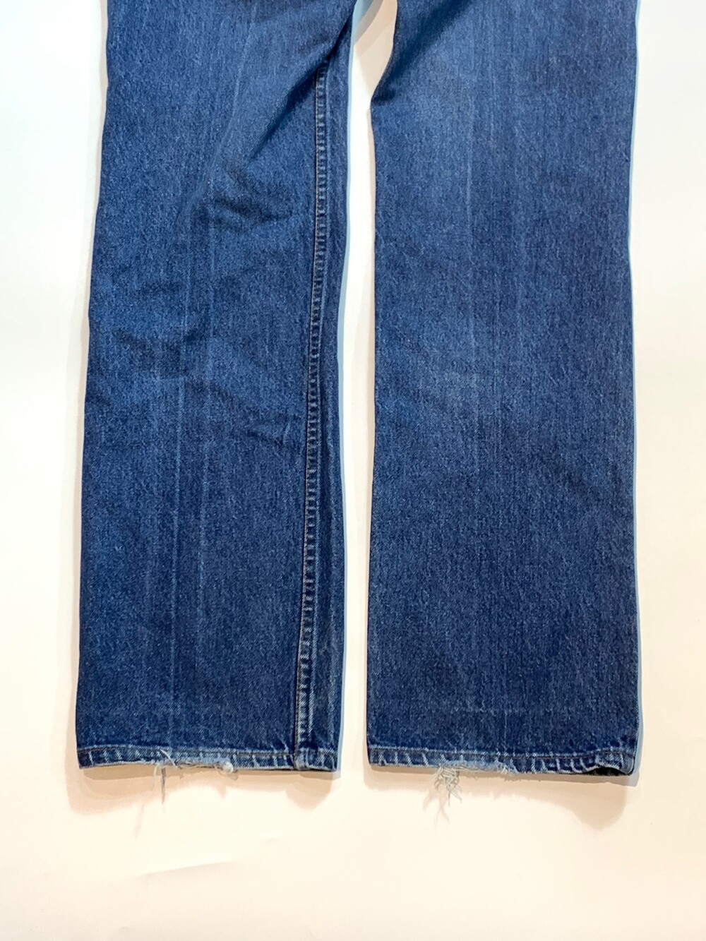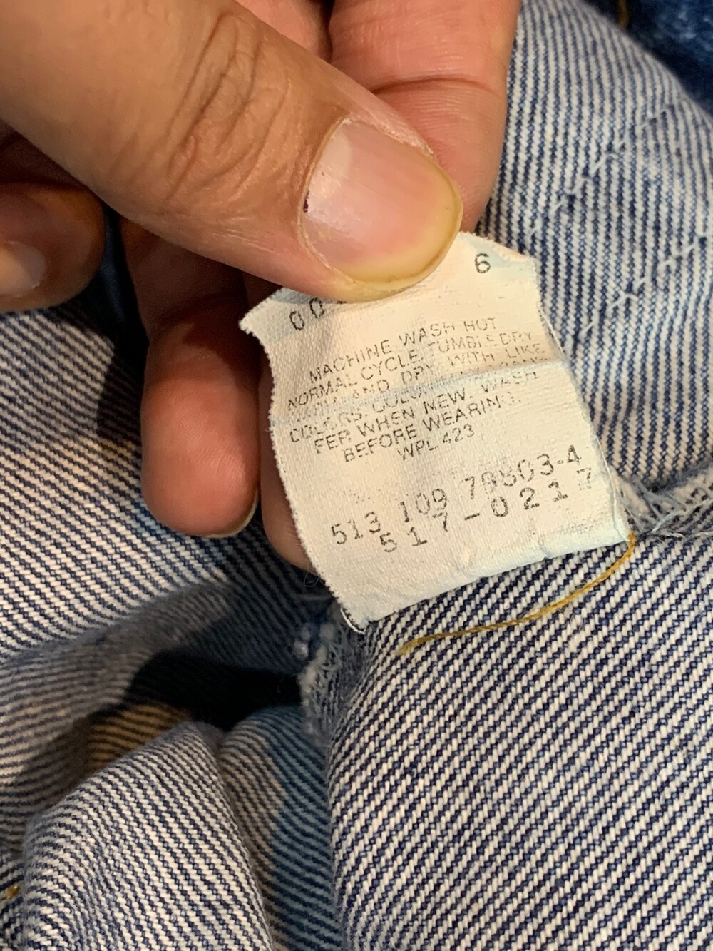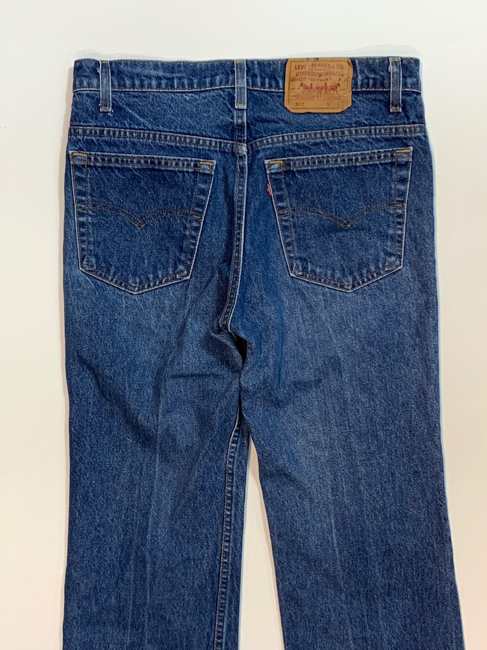 오렌지탭 517에 비하면 무릎 아래로 완만한 부츠컷 형태의 1989년 10월 생산 리바이스 517 데님 팬츠. 허리 단면에 맞추기보다는 평소에 31-32인치 입는 분들 혹은 그보다 작게 입는 분들이 오버사이징해서 입기를 권장드립니다.