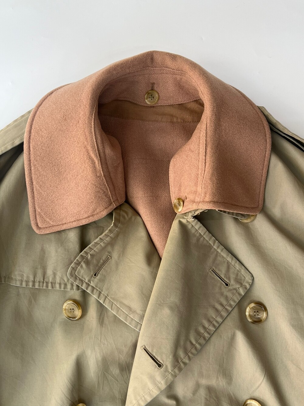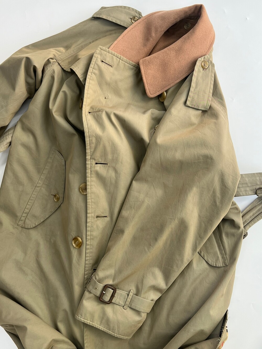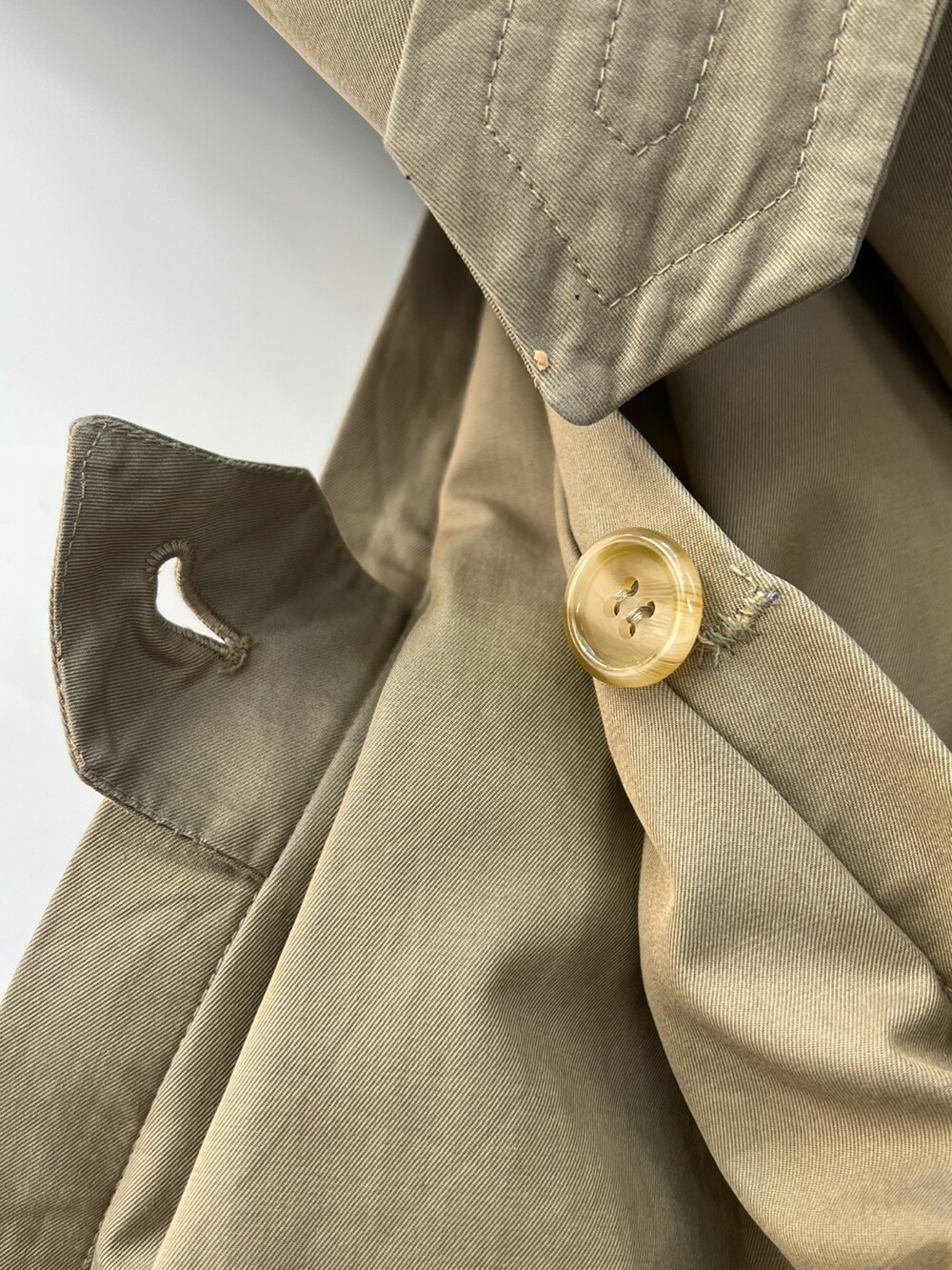 🚩Detail 소매가 한 장의 패널로 구성되어 착용 시 유려한 실루엣을 보이는, 이른바 원패널 슬리브 디테일을 가진 버버리의 트렌치 코트입니다. 코튼 100%의 개버딘 코튼을 겉감으로, 라이닝은 카멜 헤어가 포함된 울 소재로 되어 있어 라이닝을 결합했을 때 묵직한 착용감을 자랑합니다. 아웃쉘 뿐만아니라 칼라와 몸판 라이닝, 소매 스트렙과 벨트 등의 구성품을 모두 갖춘 제품입니다.