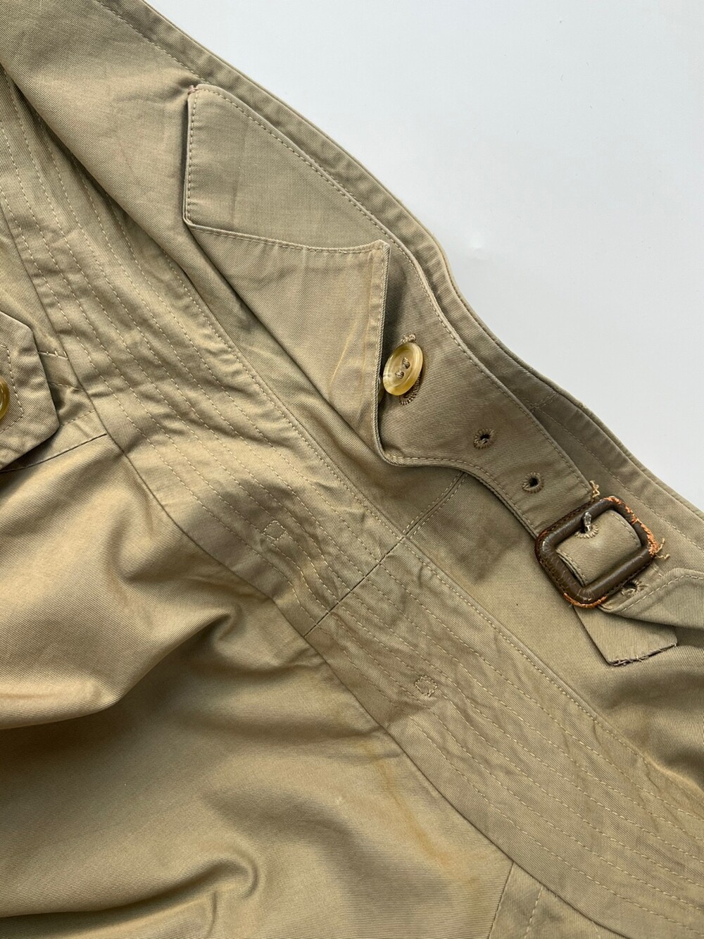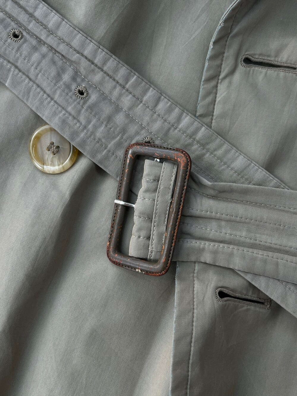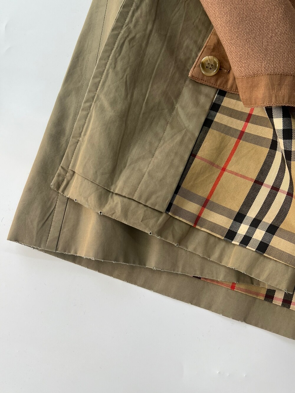 🚩Detail 소매가 한 장의 패널로 구성되어 착용 시 유려한 실루엣을 보이는, 이른바 원패널 슬리브 디테일을 가진 버버리의 트렌치 코트입니다. 코튼 100%의 개버딘 코튼을 겉감으로, 라이닝은 카멜 헤어가 포함된 울 소재로 되어 있어 라이닝을 결합했을 때 묵직한 착용감을 자랑합니다. 아웃쉘 뿐만아니라 칼라와 몸판 라이닝, 소매 스트렙과 벨트 등의 구성품을 모두 갖춘 제품입니다.