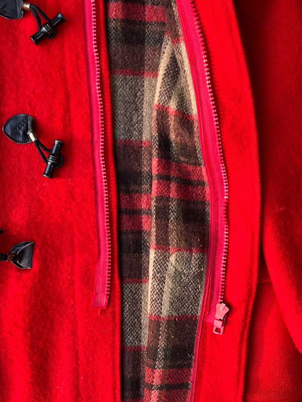에크루 컬러 베이스에 각기 다른 4가지 컬러의 스트라이프 패턴이 들어간 담요인 Four Point Wool Blanket 으로 널리 알려진 허드슨즈 베이(HUDSON'S BAY)의 더플코트입니다. 클래식한 더플코트와는 달리 독특한 디자인의 토글이 돋보이며, 토글 뿐만아니라 지퍼로도 열고 닫을 수 있는 제품입니다. 울 100%의 혼용률에 비해서는 덜 무겁다는 점도 장점 중 하나입니다.