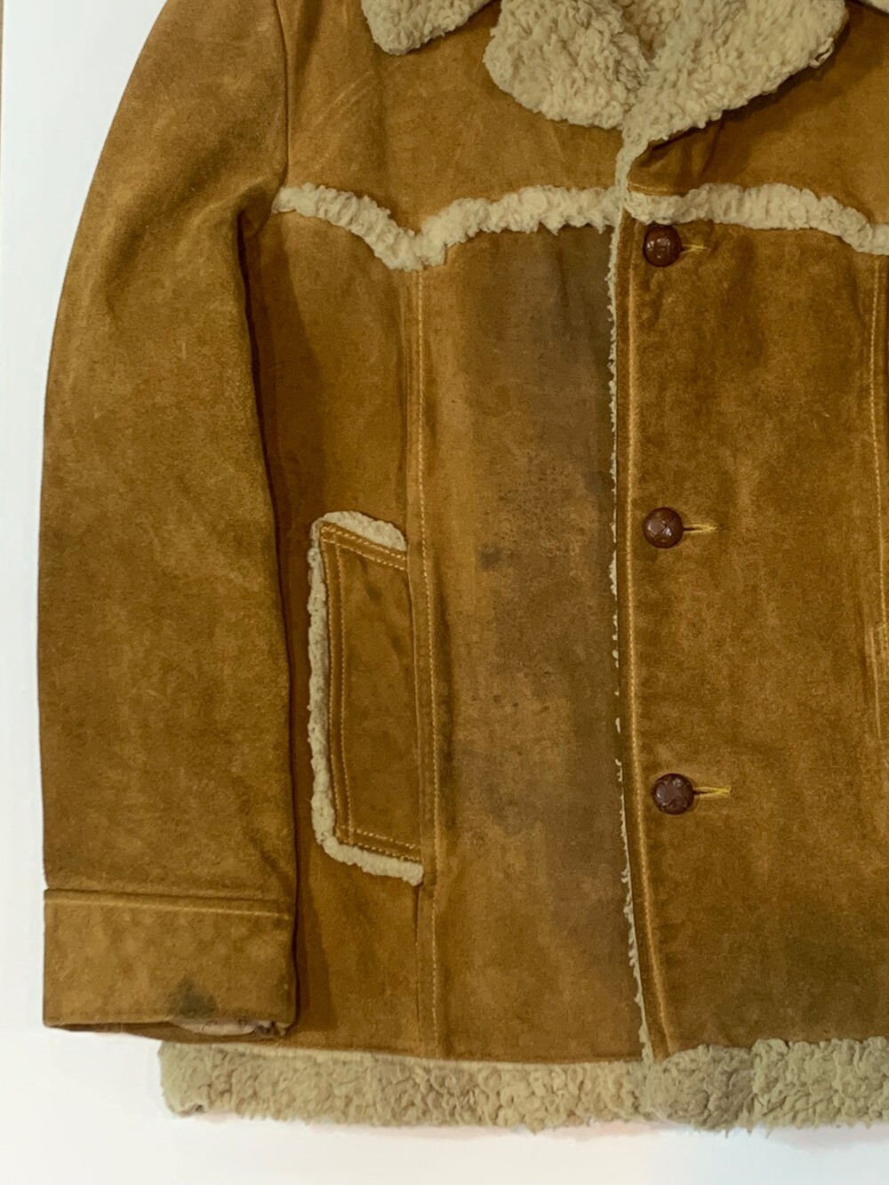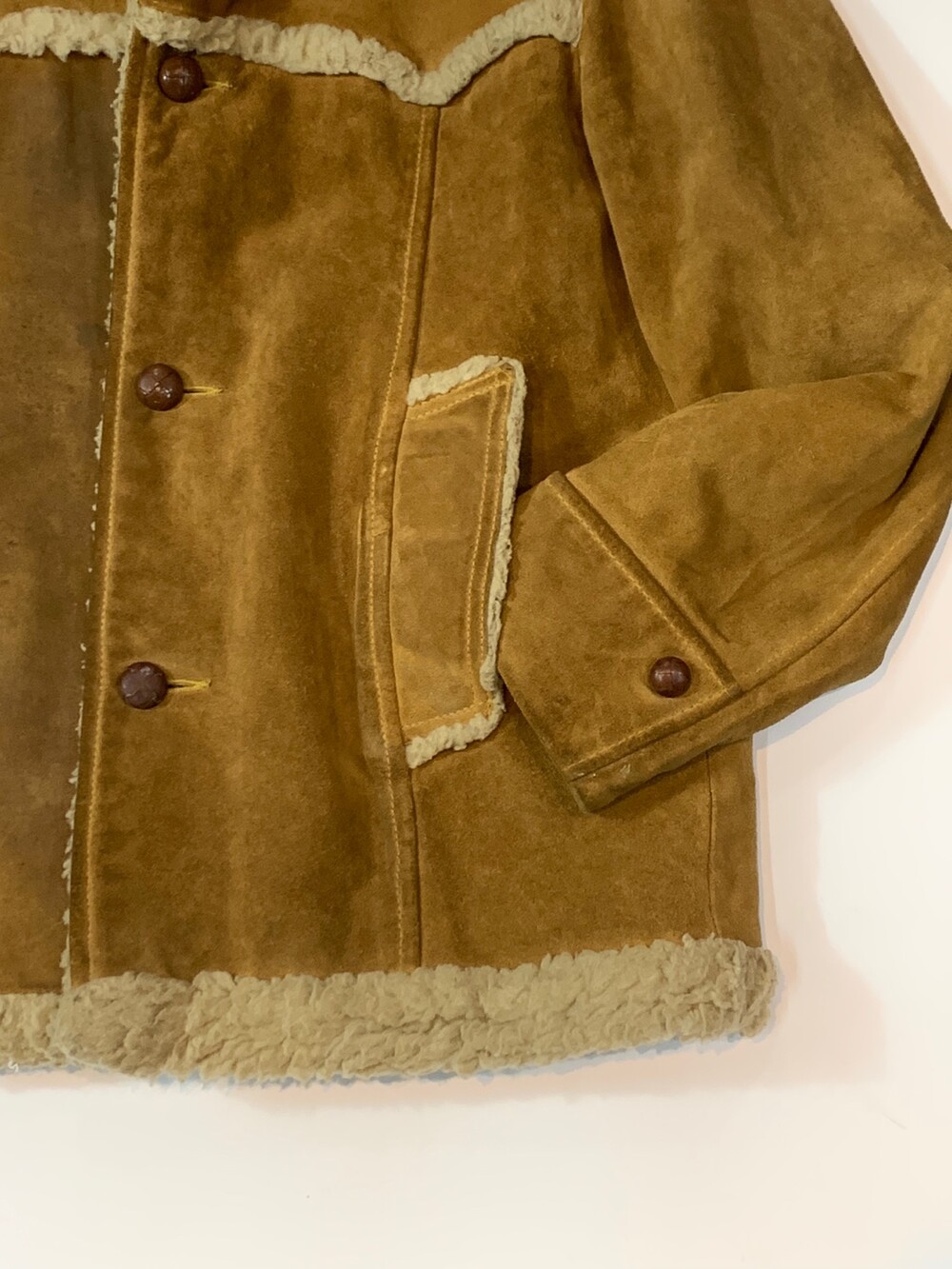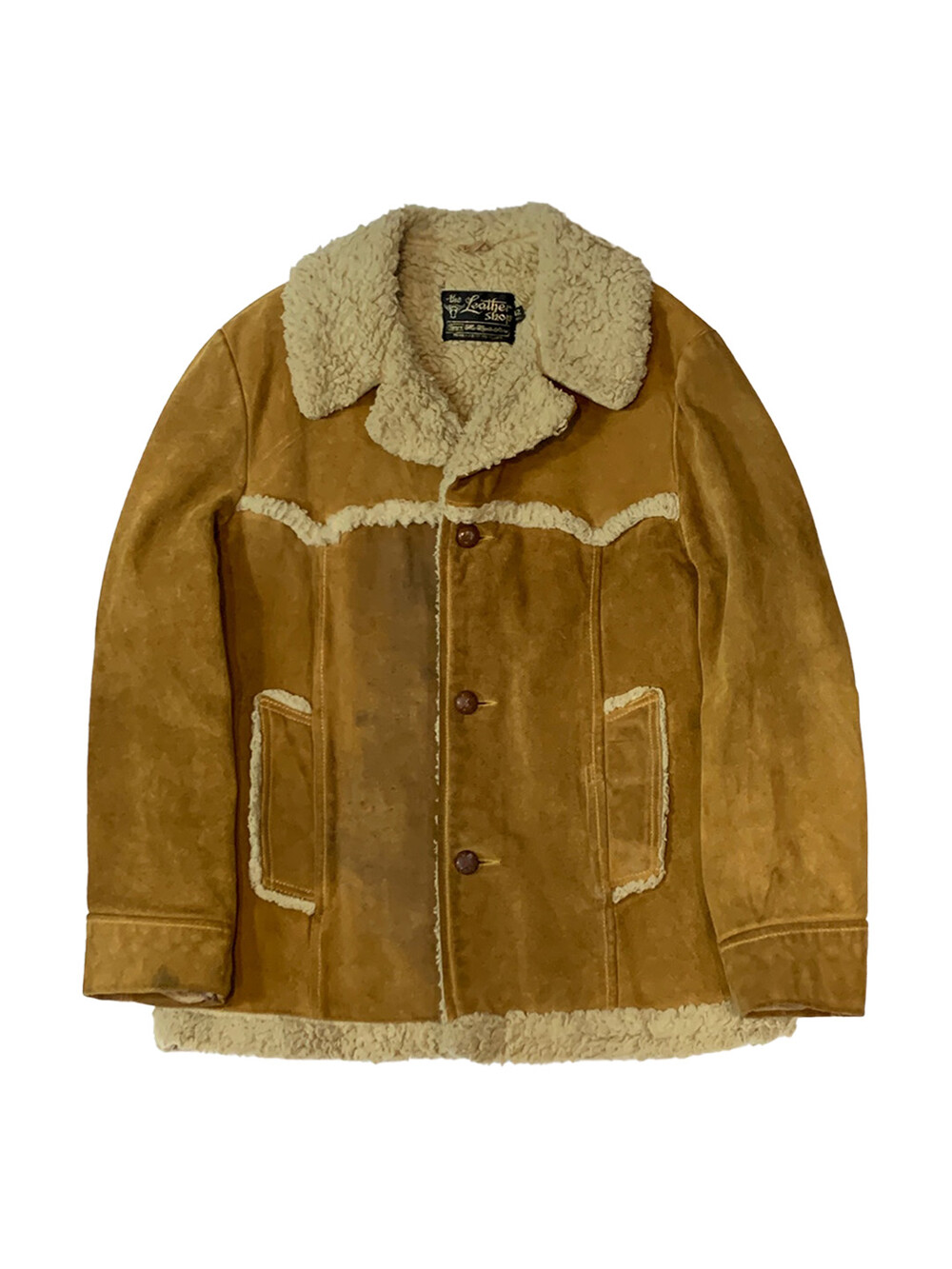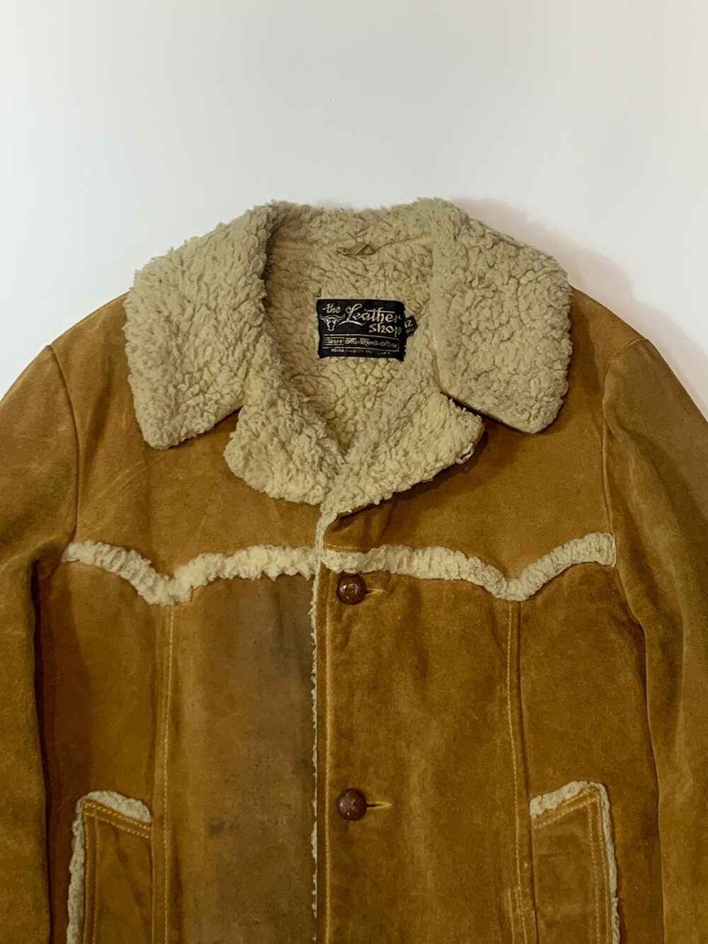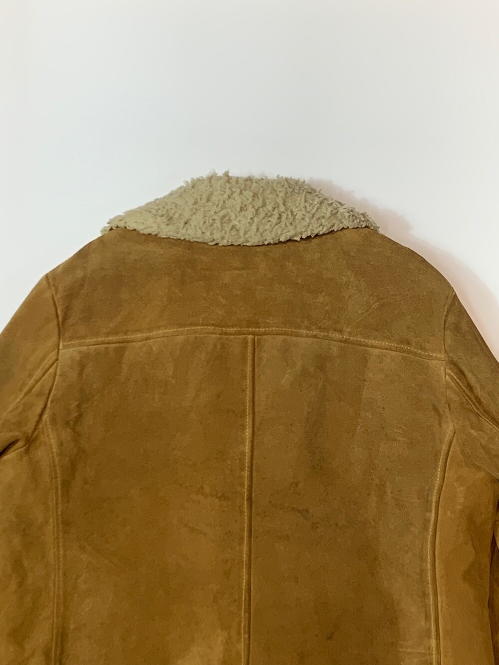 스웨이드 가죽 아웃쉘에 쉐르파 라이닝이 붙는 시얼즈 산하의 브랜드 레더샵의 시어링 코트. 엉덩이를 살짝 덮는 짧은 기장감의 레더 코트로, 칼라 뿐만아니라 전면 요크와 포켓 입구, 그리고 밑단에도 쉐르파 라이닝이 붙어 캐주얼하게 착용하기 좋을만한 제품.