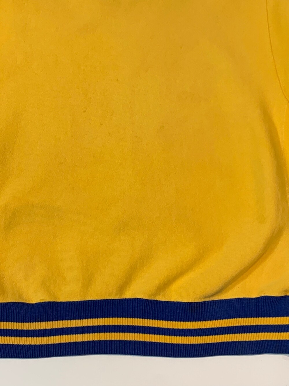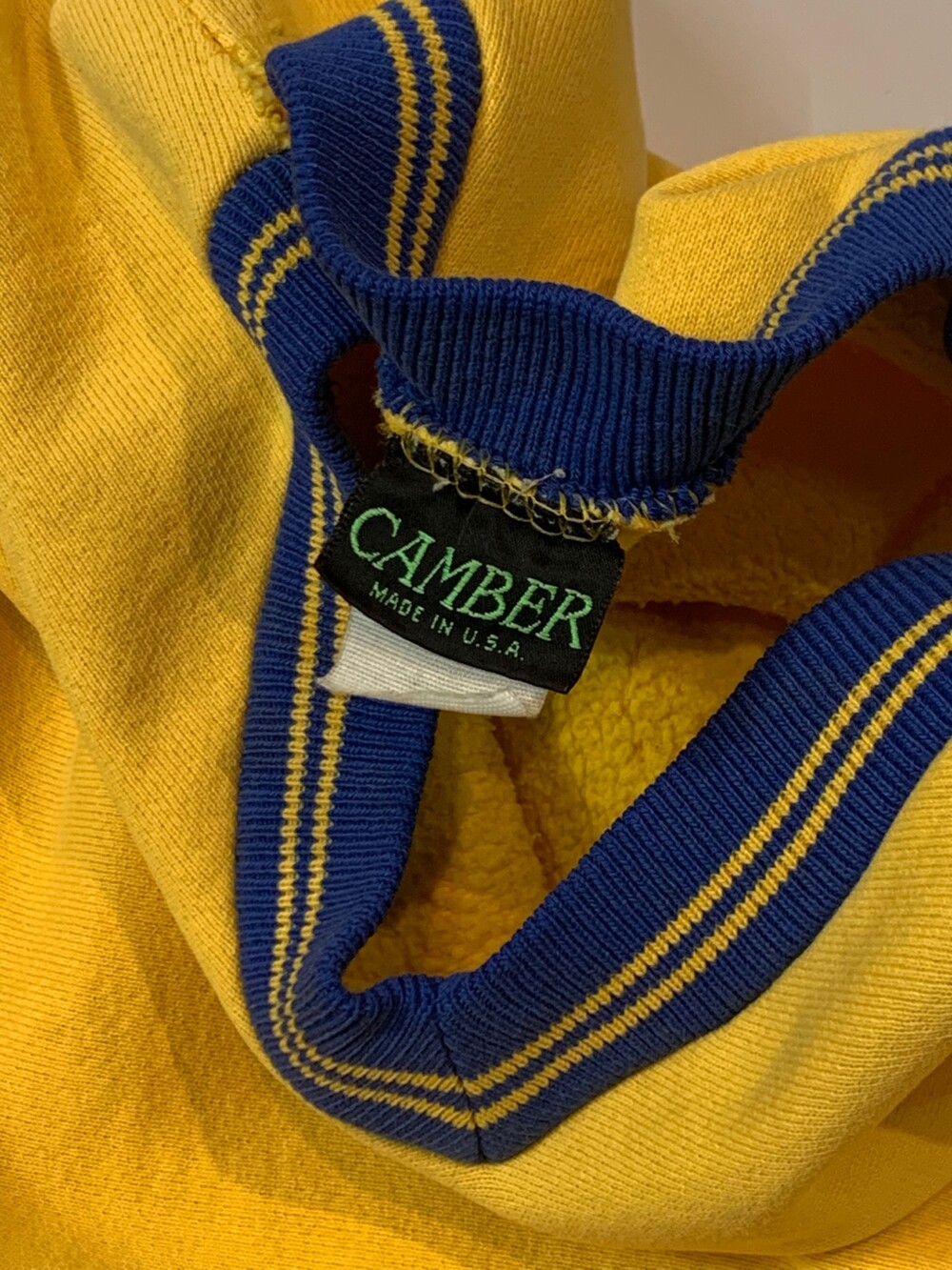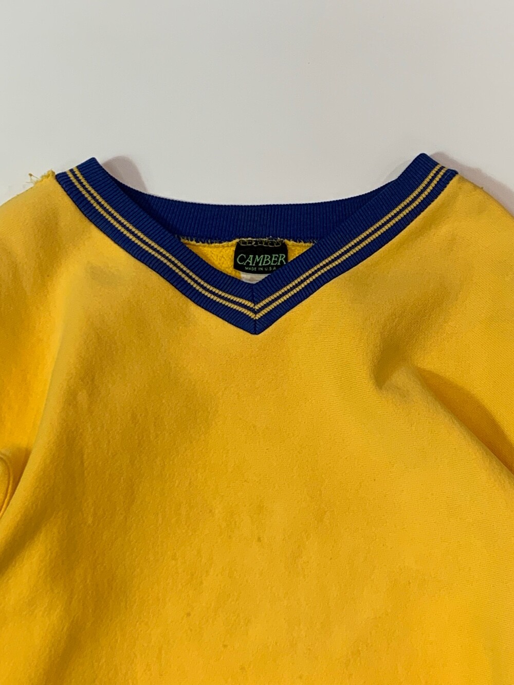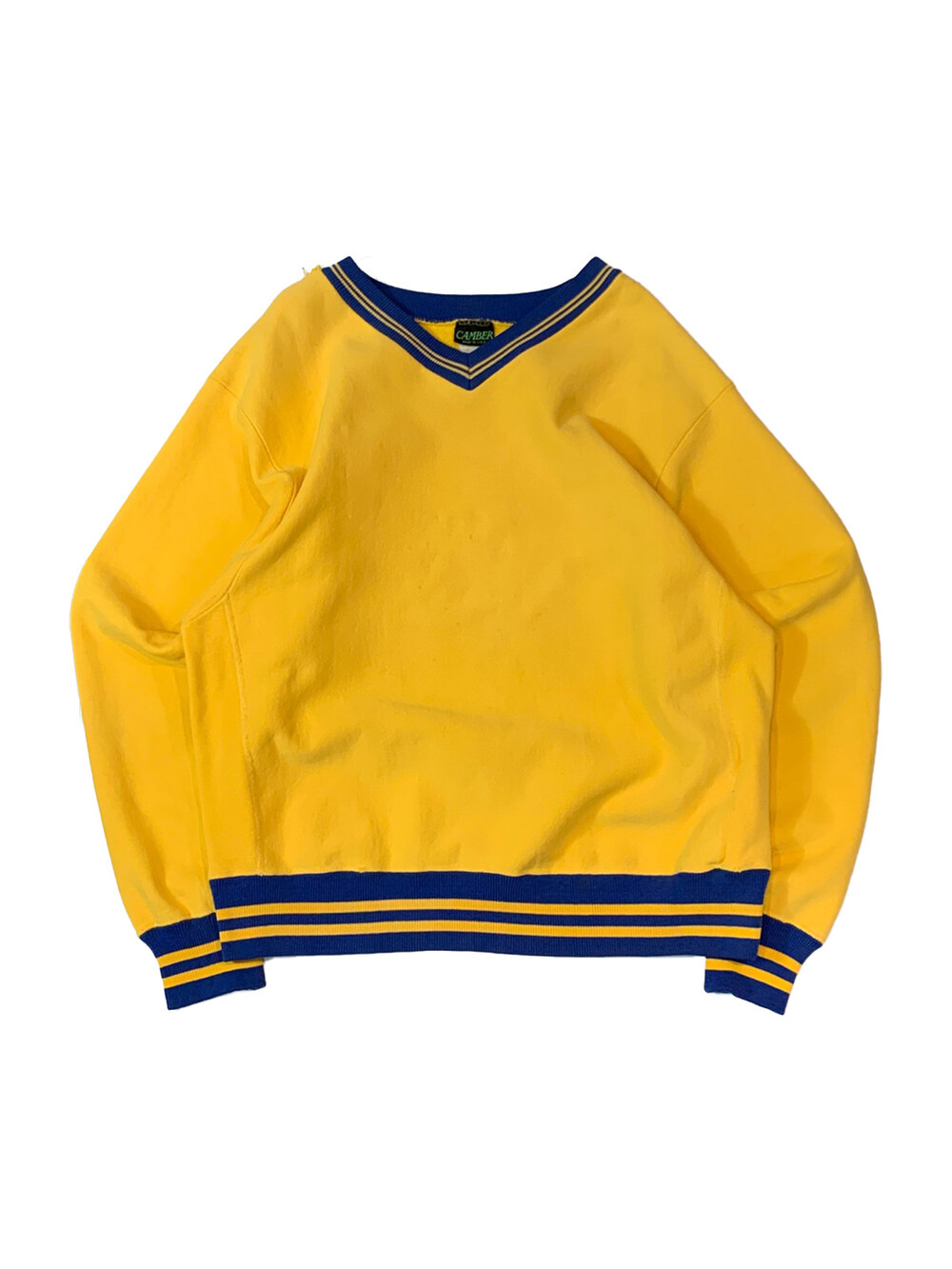 🚩Detail 몸판 원단 결이 가로방향을 향하도록 원단 재단방향을 90도로 돌려 재단하는 호리즌탈 위브 타입의 스웻셔츠 메이커 중에서도 지금까지 명맥을 이어오고 있는 캠버(CAMBER)의 스웻셔츠입니다. 별도의 프린팅은 없으나 노란색 바디에 파란색 스트라이프 립이 붙는 브이넥 스웨셔츠로, 기존의 리버스위브 타입의 스웻과는 색다른 느낌으로 착용할 수 있습니다. 사용감이 짙은 편이라 단품보다는 이너에 셔츠나 후디 등의 이너를 입고 그 위에 입는 방식으로, 오버사이징해서 착용하기를 권장드립니다.