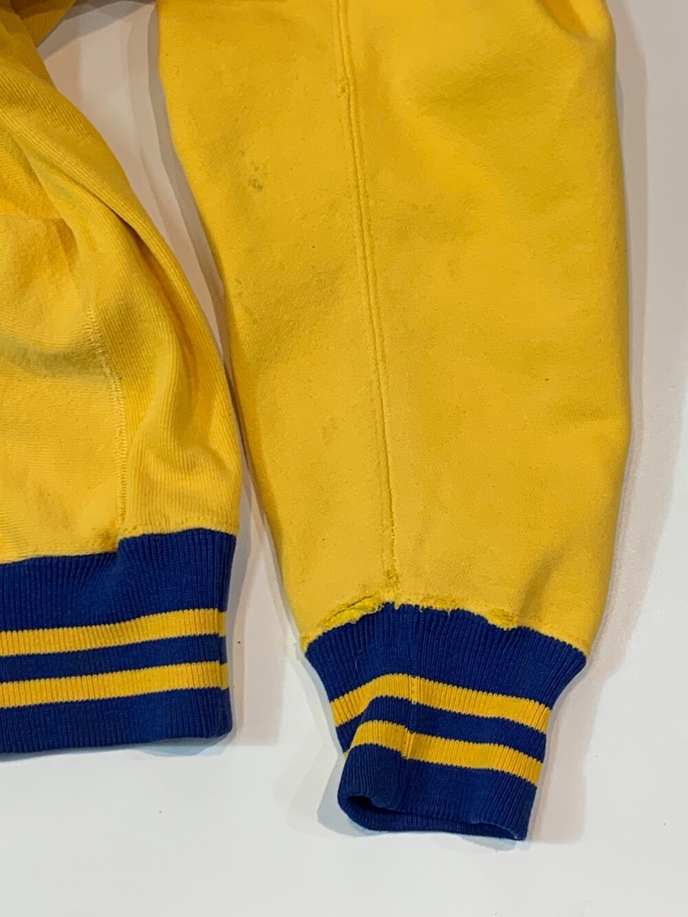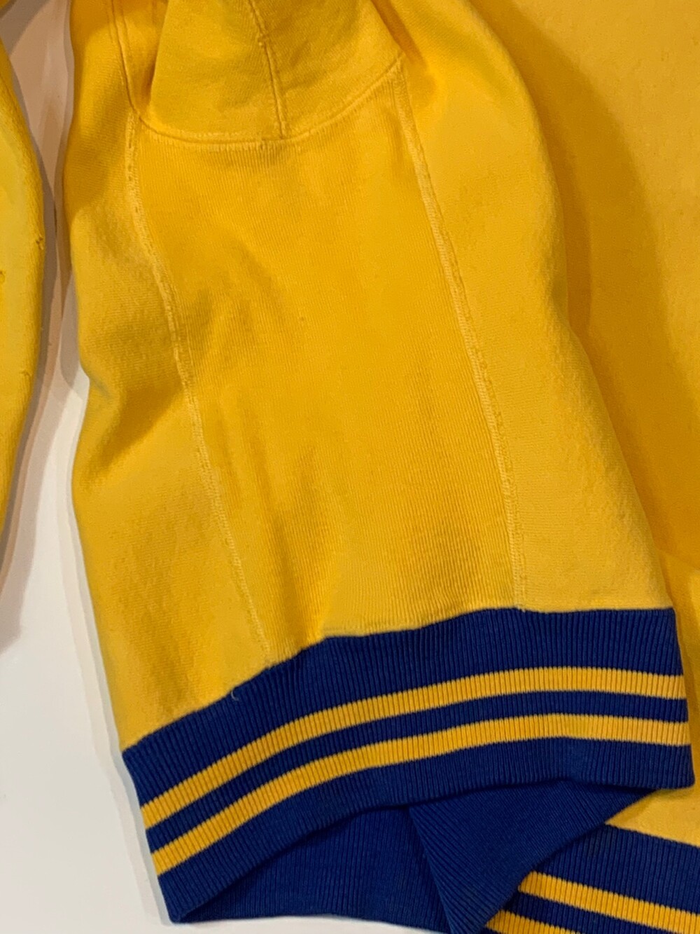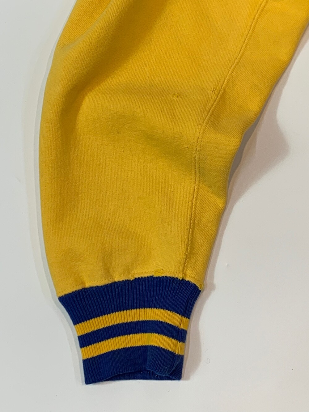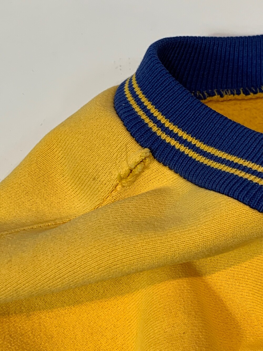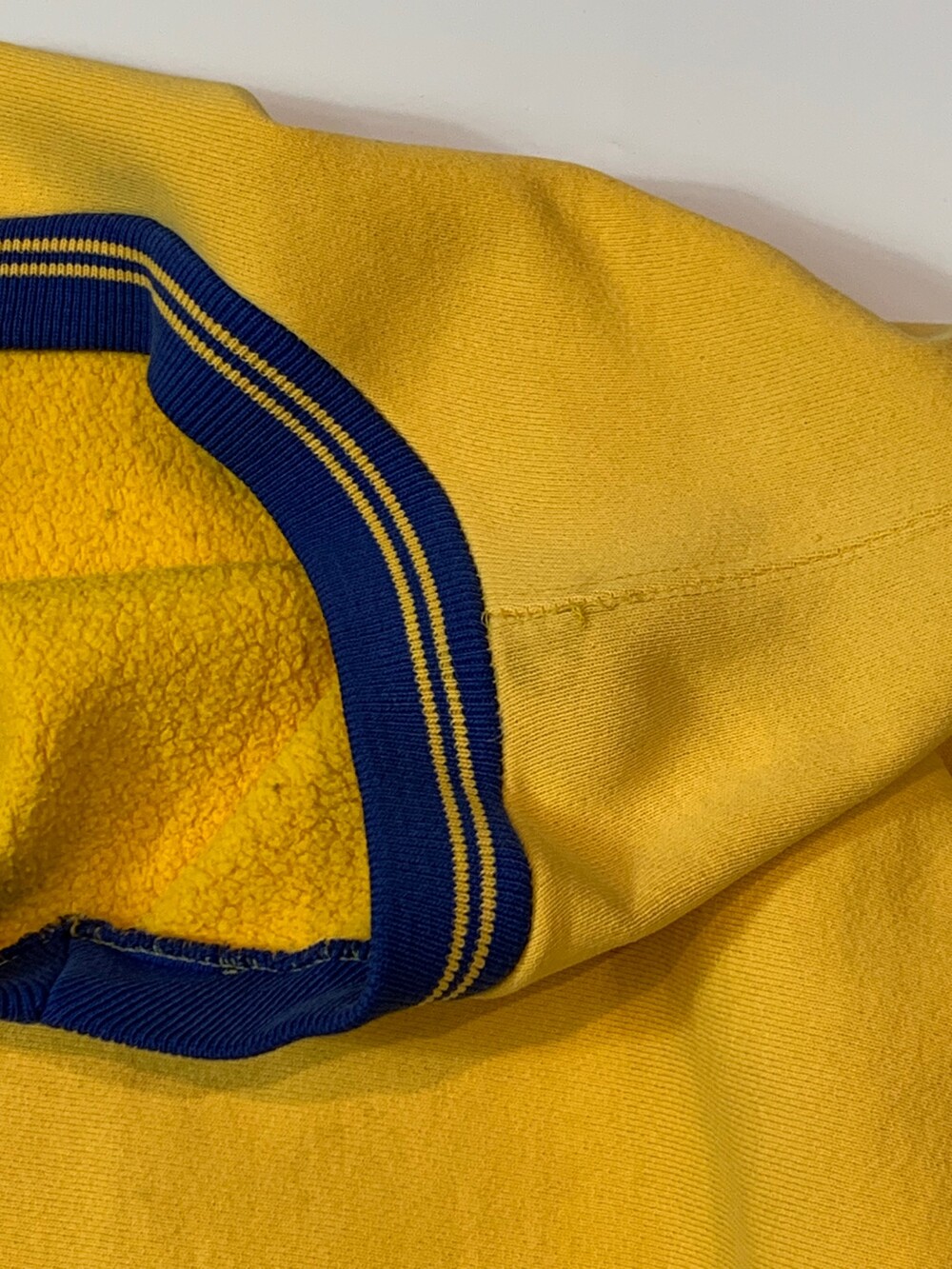 🚩Detail 몸판 원단 결이 가로방향을 향하도록 원단 재단방향을 90도로 돌려 재단하는 호리즌탈 위브 타입의 스웻셔츠 메이커 중에서도 지금까지 명맥을 이어오고 있는 캠버(CAMBER)의 스웻셔츠입니다. 별도의 프린팅은 없으나 노란색 바디에 파란색 스트라이프 립이 붙는 브이넥 스웨셔츠로, 기존의 리버스위브 타입의 스웻과는 색다른 느낌으로 착용할 수 있습니다. 사용감이 짙은 편이라 단품보다는 이너에 셔츠나 후디 등의 이너를 입고 그 위에 입는 방식으로, 오버사이징해서 착용하기를 권장드립니다.
