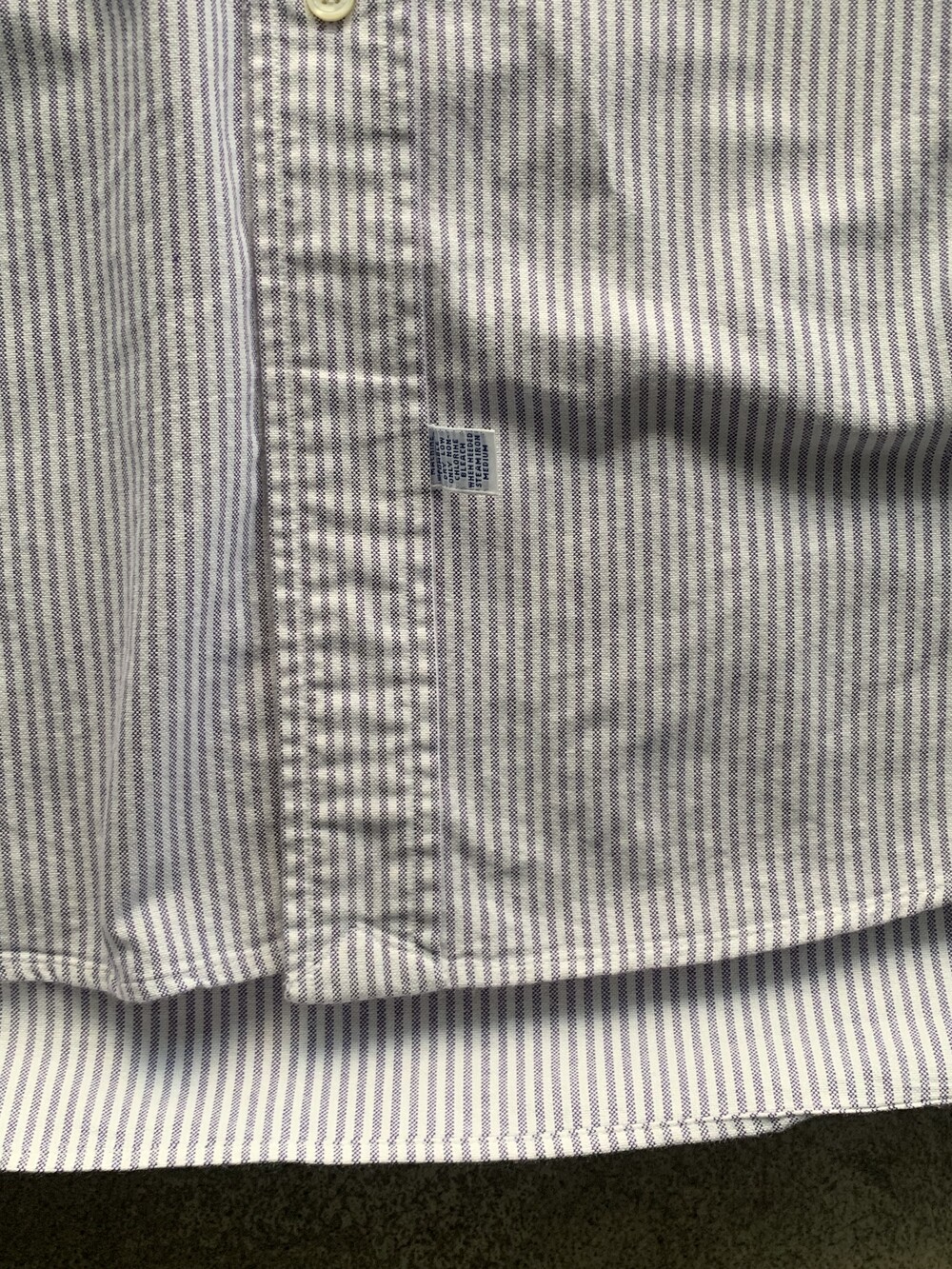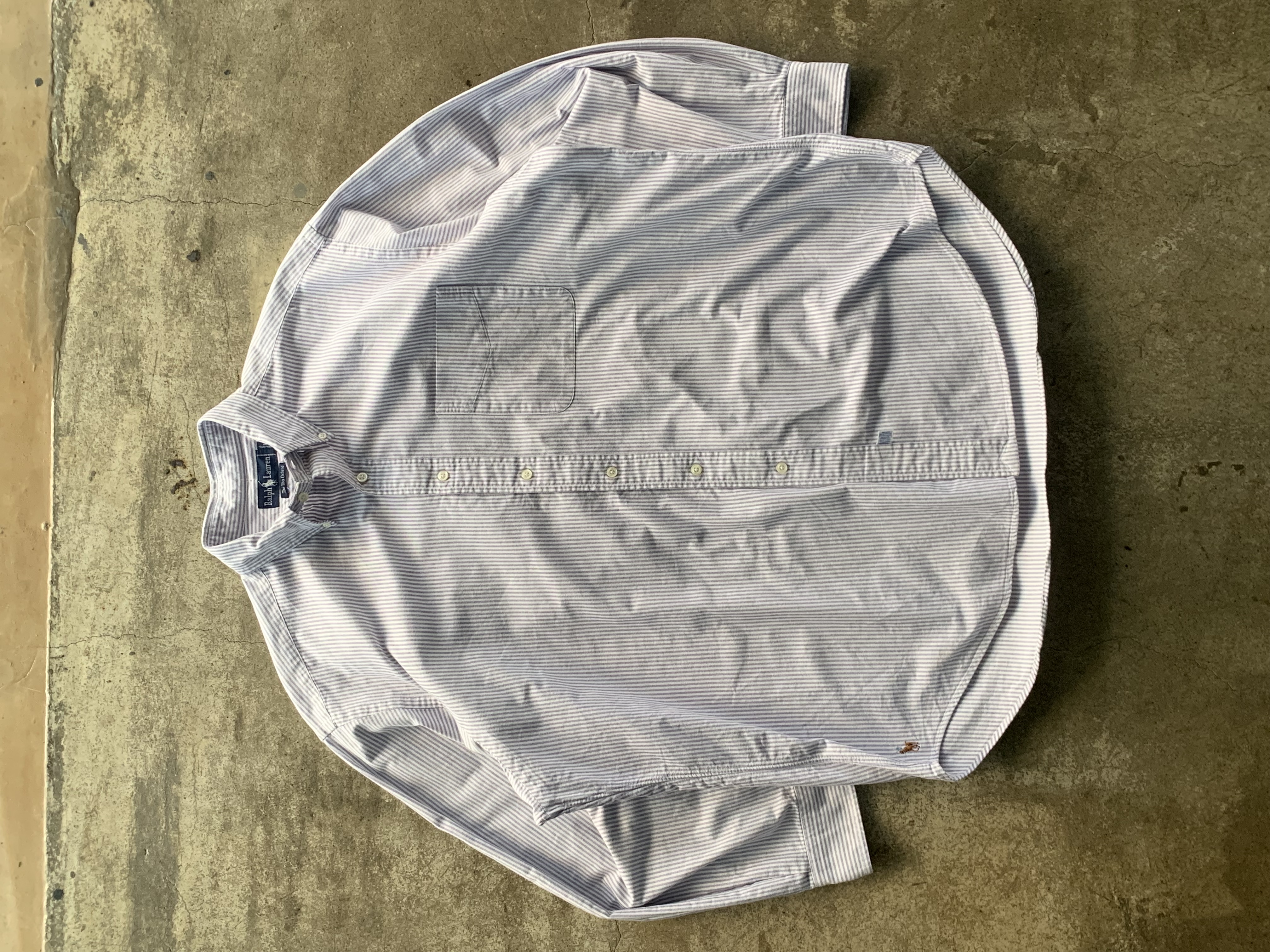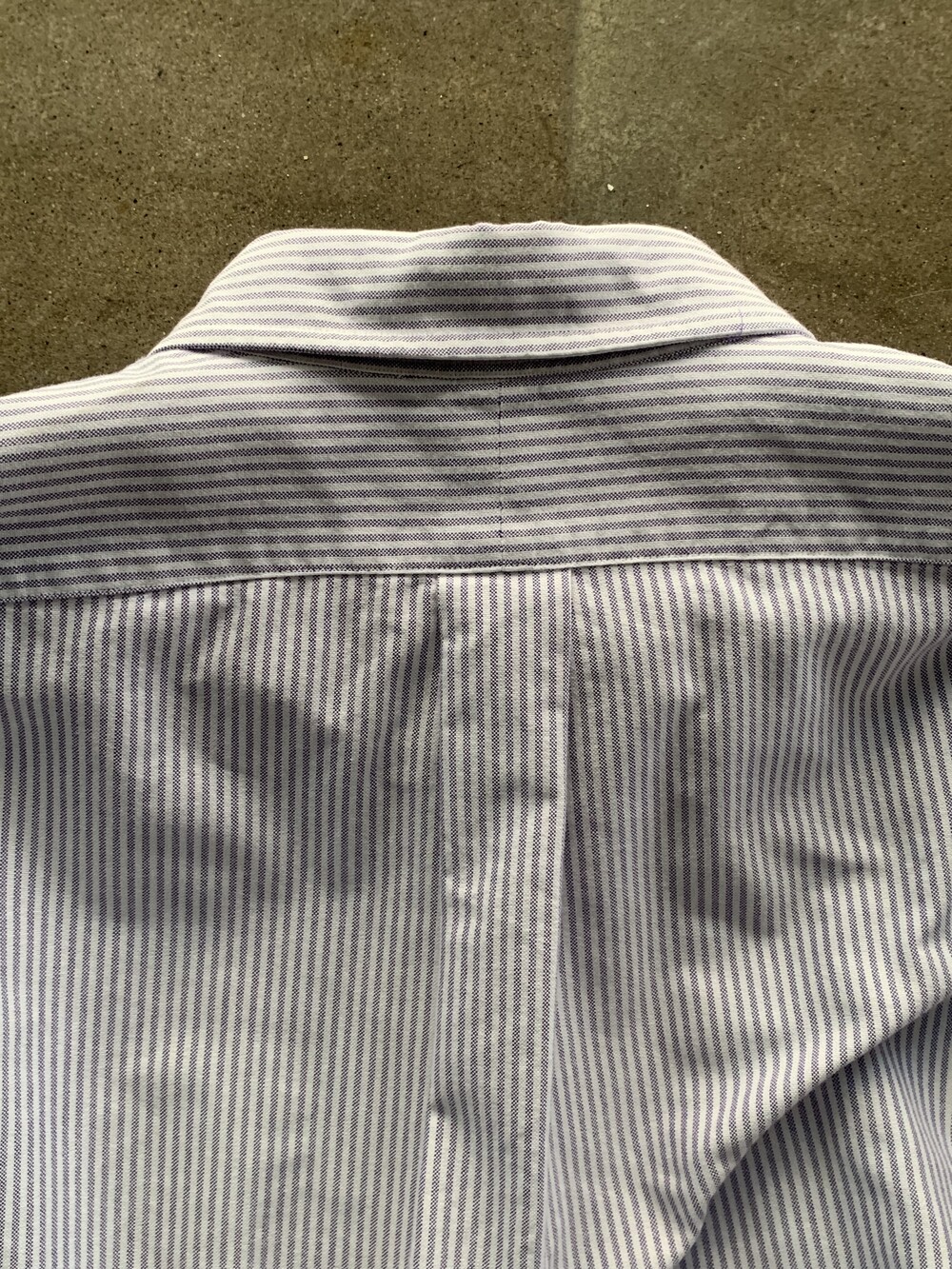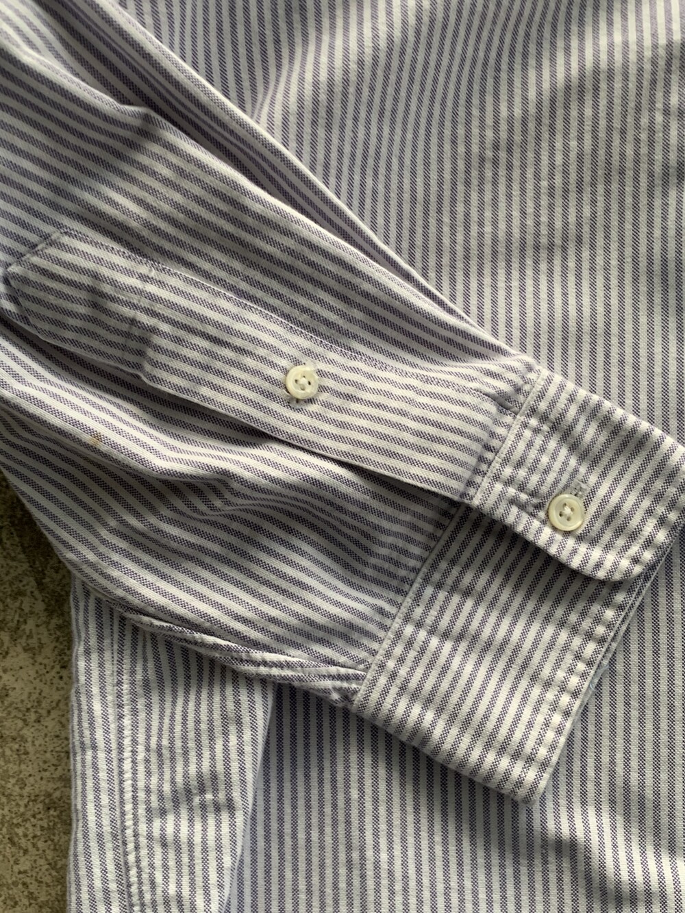 🚩Detail 요크(셔츠 뒷면 어깨를 덮는 패널) 위쪽으로는 기존의 클래식한 셔츠의 문법을 따르되 요크 아래로는 여유롭고 맥시한 실루엣을 선보이는, 1990년대에 발매된 폴로 랄프로렌의 오버사이즈드 셔츠 라인 중에서도 빅셔츠와 유사하나 옥스포드 코튼 원단으로만 적용되어 선보였던 더 빅 옥스포드(The Big Oxford) 라인의 버튼다운 셔츠.