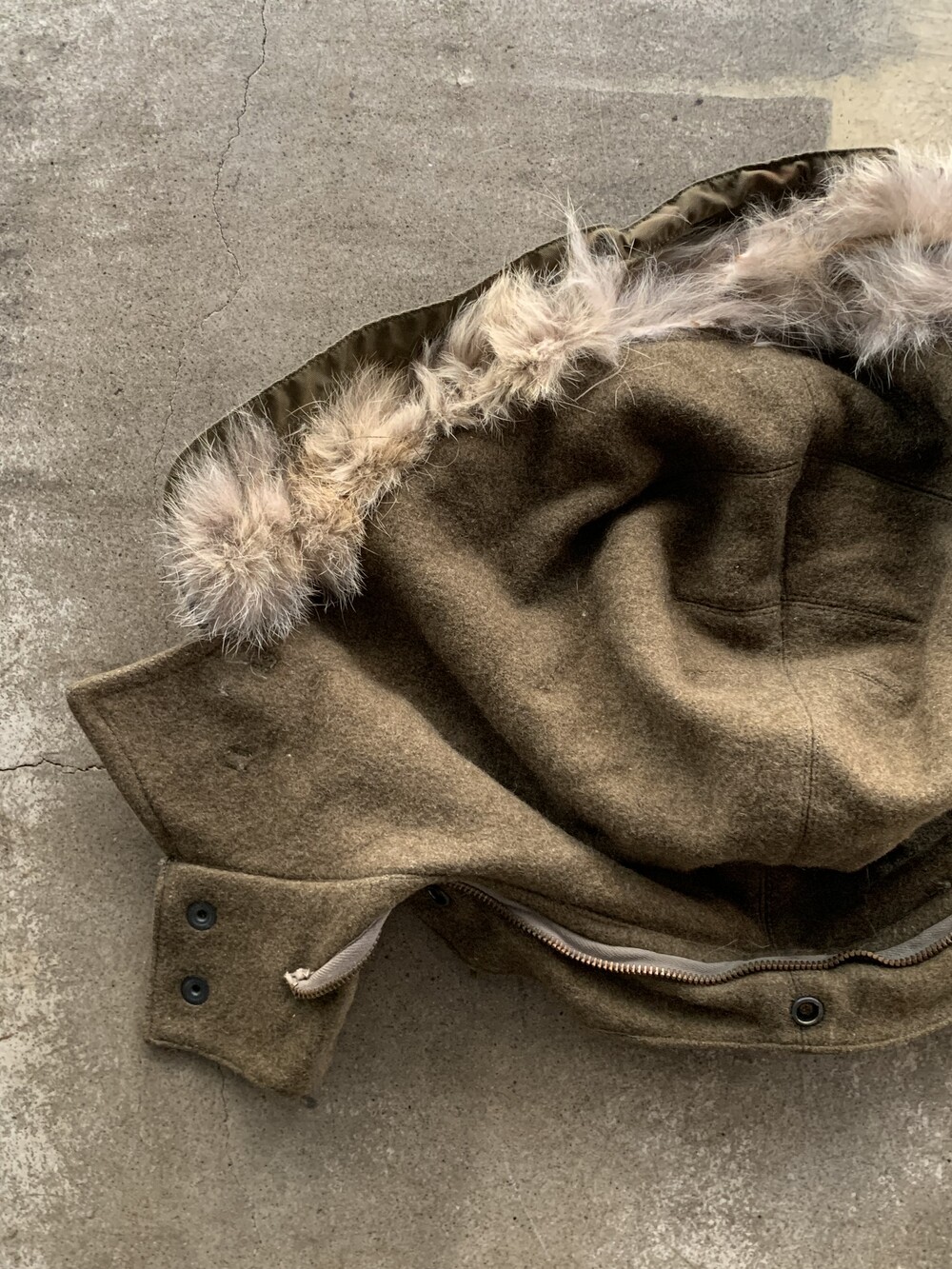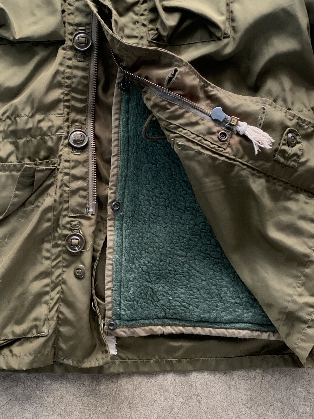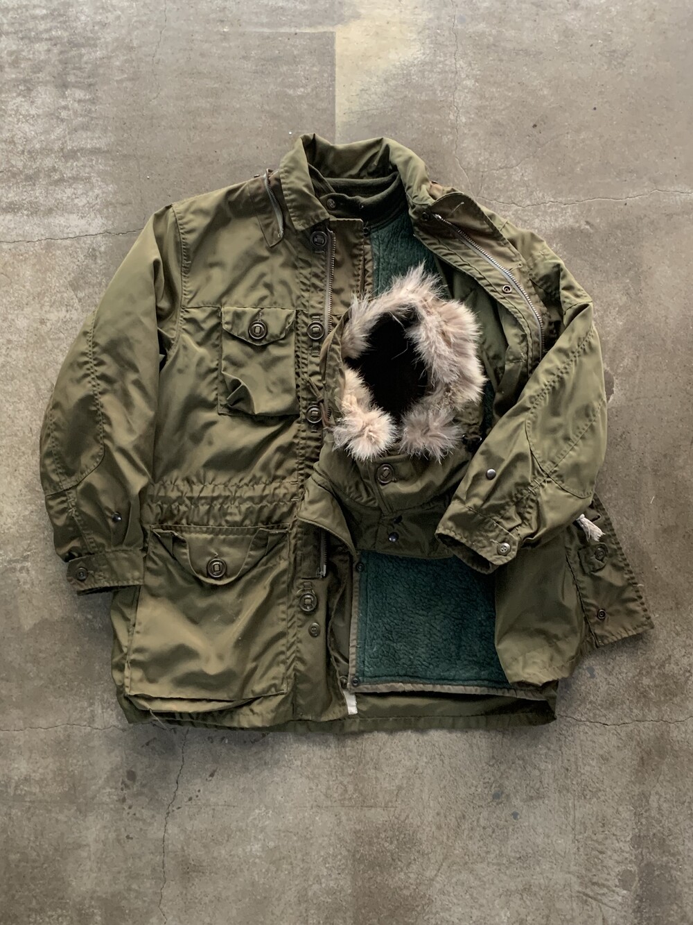 미군 M-48이나 M-51 초기형에 비해서도 훨씬 가벼우면서도 요철감이 있는 나일론 옥스포드 원단 아웃쉘, 그린 컬러 울 파일과 울 소재 친스트랩이 붙어 보온을 담당하는 라이너, 지퍼와 스냅으로 체결할 수 있는 후드가 붙어 구성 빠짐없이 세트로 구성된 제품입니다. 표기 Large로 105호 혹은 그보다 조금 작게 입는 분들에게 권장드립니다.