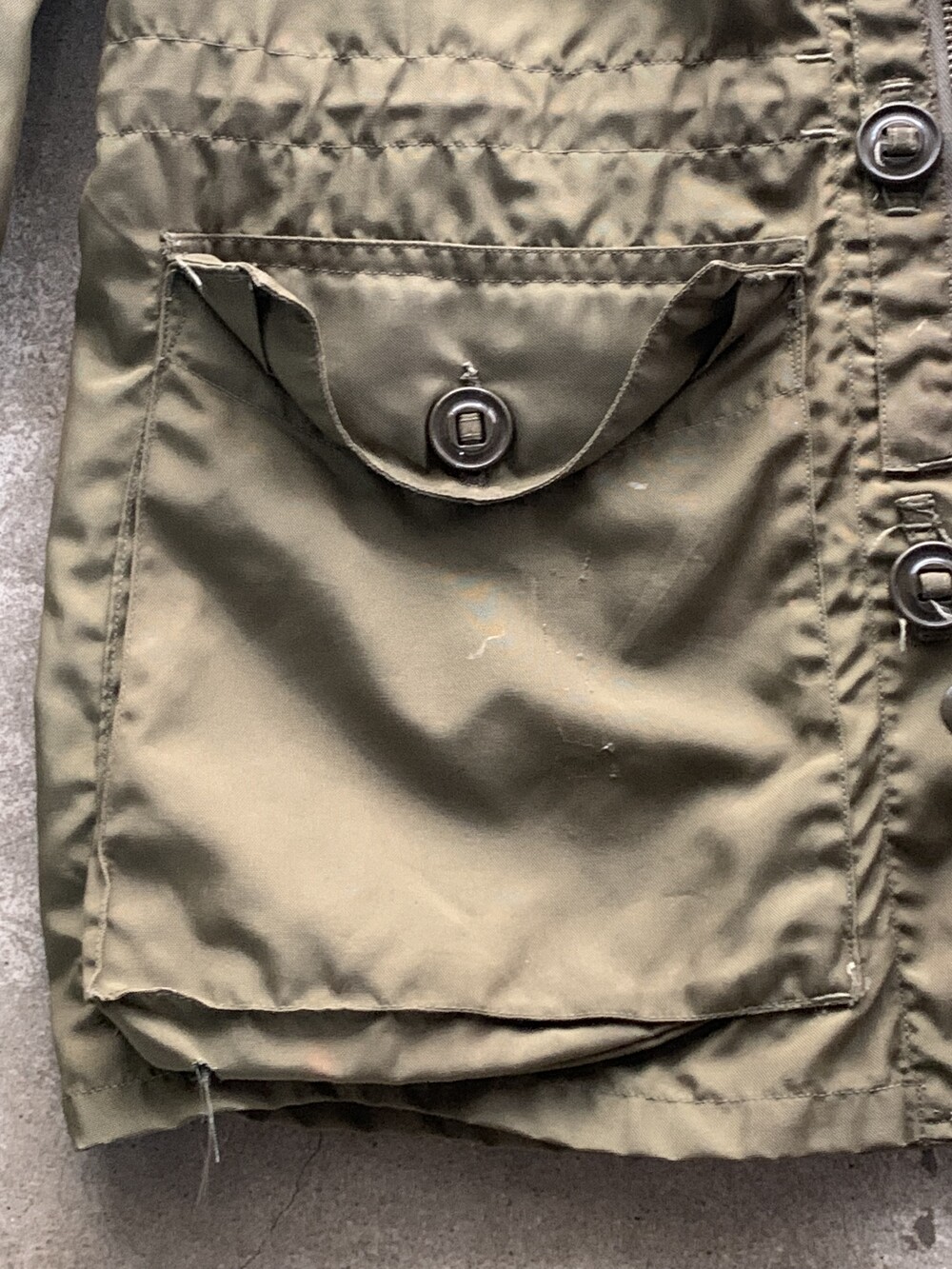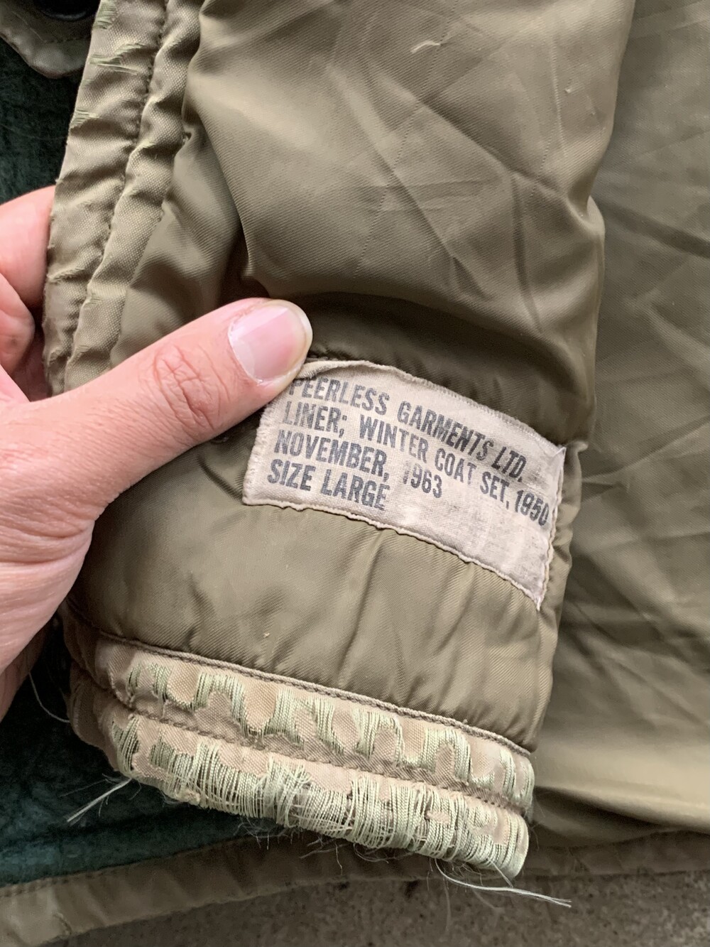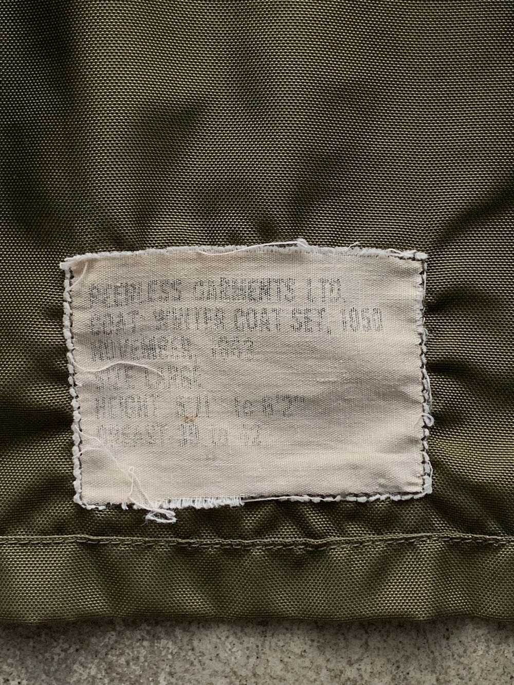 🚩Detail 동시대의 미군 콜드 웨더 파카에서 영향을 받았으나 캐나다군 독자적인 레이어링 시스템을 구축하기 위해 다양한 디테일을 배치한 노력의 산물이자, 동시에 영연방 국가들의 표기를 그대로 따라 약칭에 M(Model)이 아닌 P(Pattern)가 붙는 캐나다군 P-50 콜드 웨더 파카입니다. 1950년대 최초로 개발된 형태와 동일한 사양의 1963년 생산 제품으로 이후 사선 포켓이 특징적인 컴뱃 파카의 초기형이기도 합니다.
