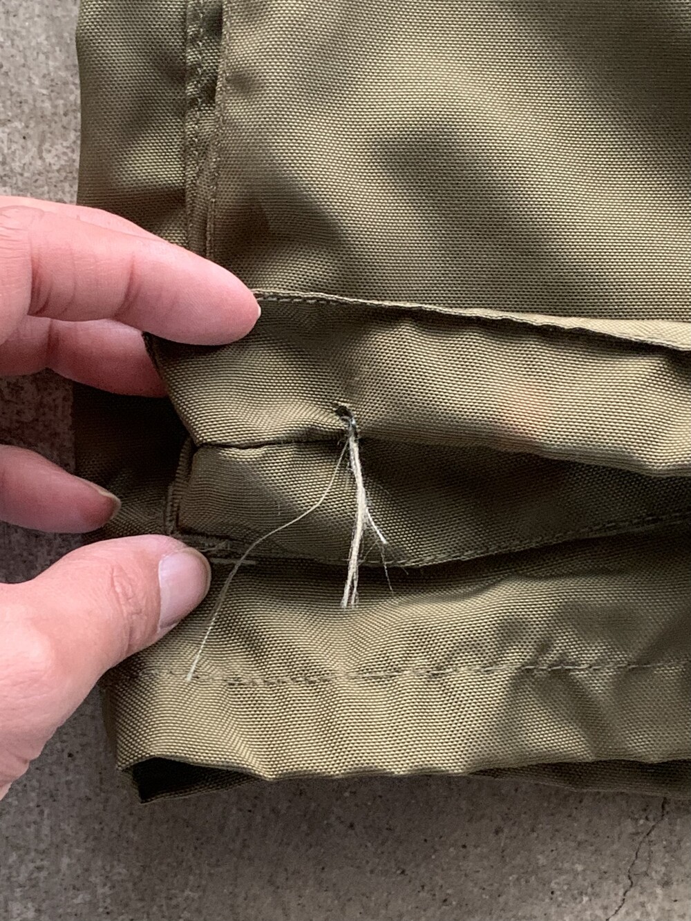 🚩Condition 아웃쉘 겉면 자잘한 긁힘 및 하단부 포켓 아래쪽 데미지(보강 수선 예정), 지퍼 테이프 헤진 등의 사용감 있음. 후드 퍼가 일부 유실되는 등 전반적으로 사용감이 있으나 착용에 지장을 줄 정도로 큰 얼룩이나 데미지는 없는 제품.