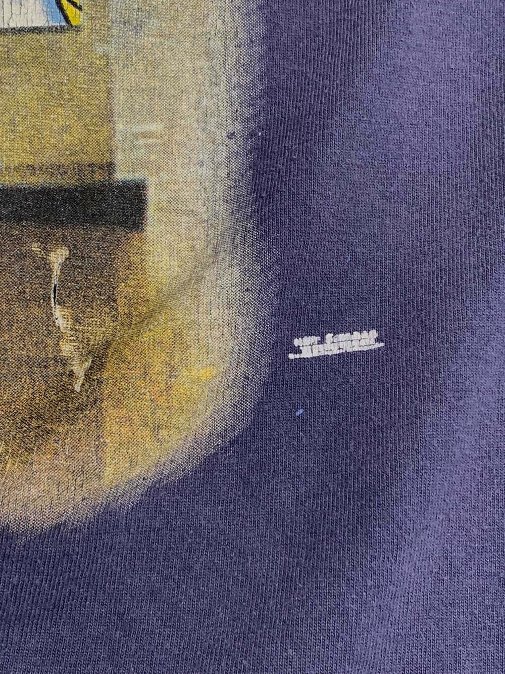 프린팅에 일부 크랙이 있고 하단부에 탈색에 의한 얼룩이 있으나 그 외에는 눈에 띌 정도로 큼지막한 얼룩이나 데미지는 없는 제품.
