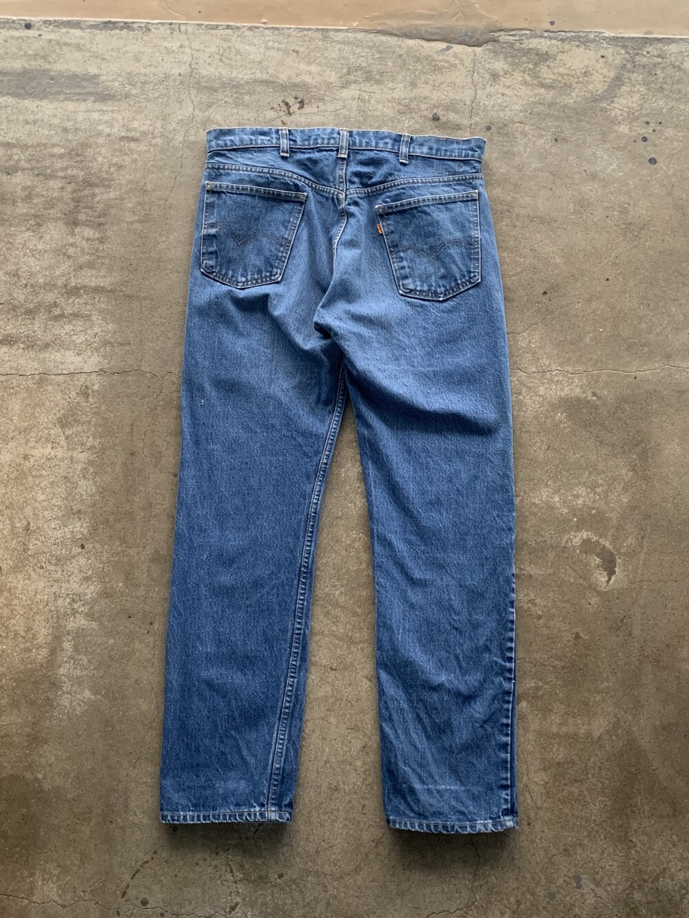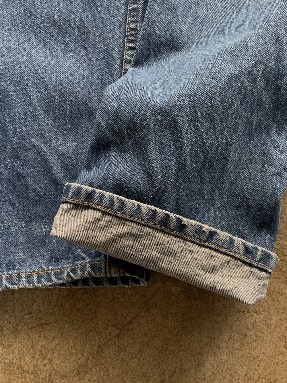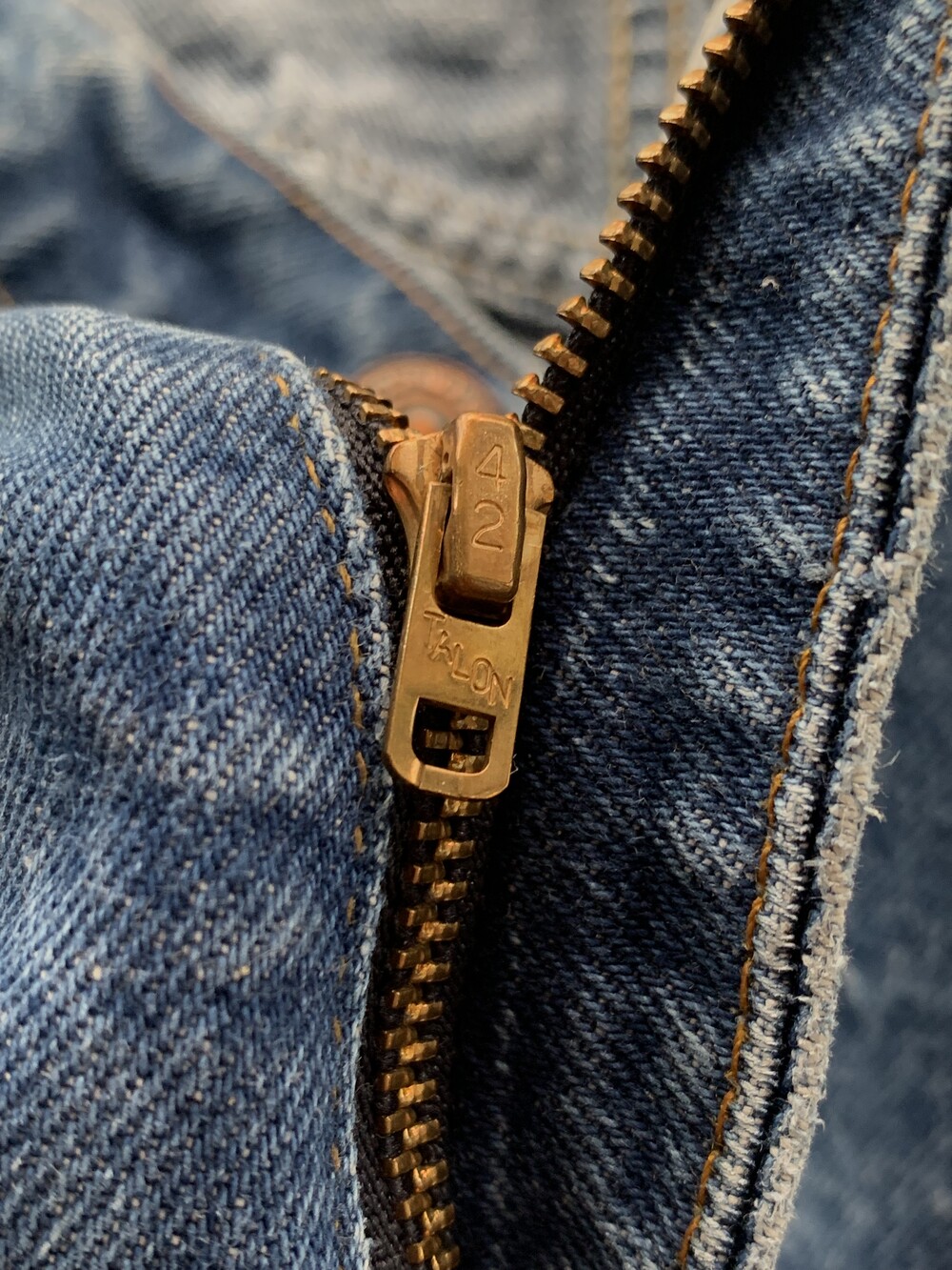전면 42탈론 지퍼가 적용된 1980년대 초반 생산 리바이스 505 데님팬츠입니다. 레드탭 505에 비해 밑단이 갈수록 좁아지는 테이퍼드 경향이 보다 짙은 제품으로, 캐주얼한 스니커즈보다는 보다 포멀한 구두나 부츠에 매치하기 좋을만한 제품입니다.