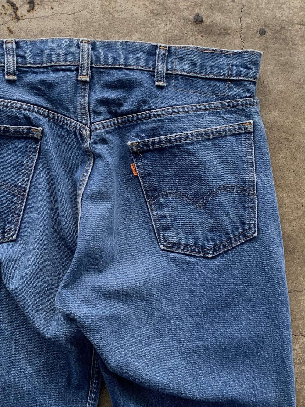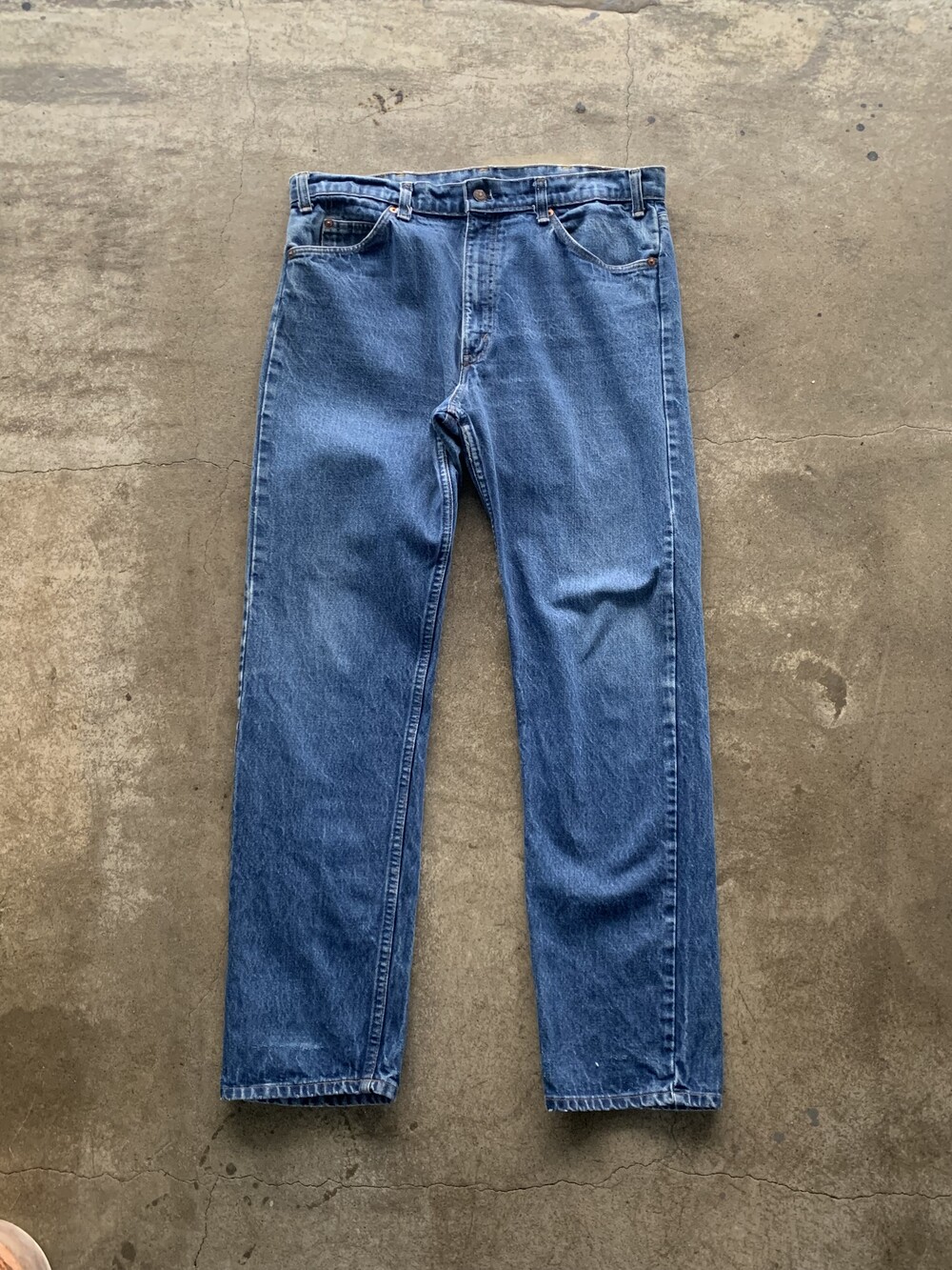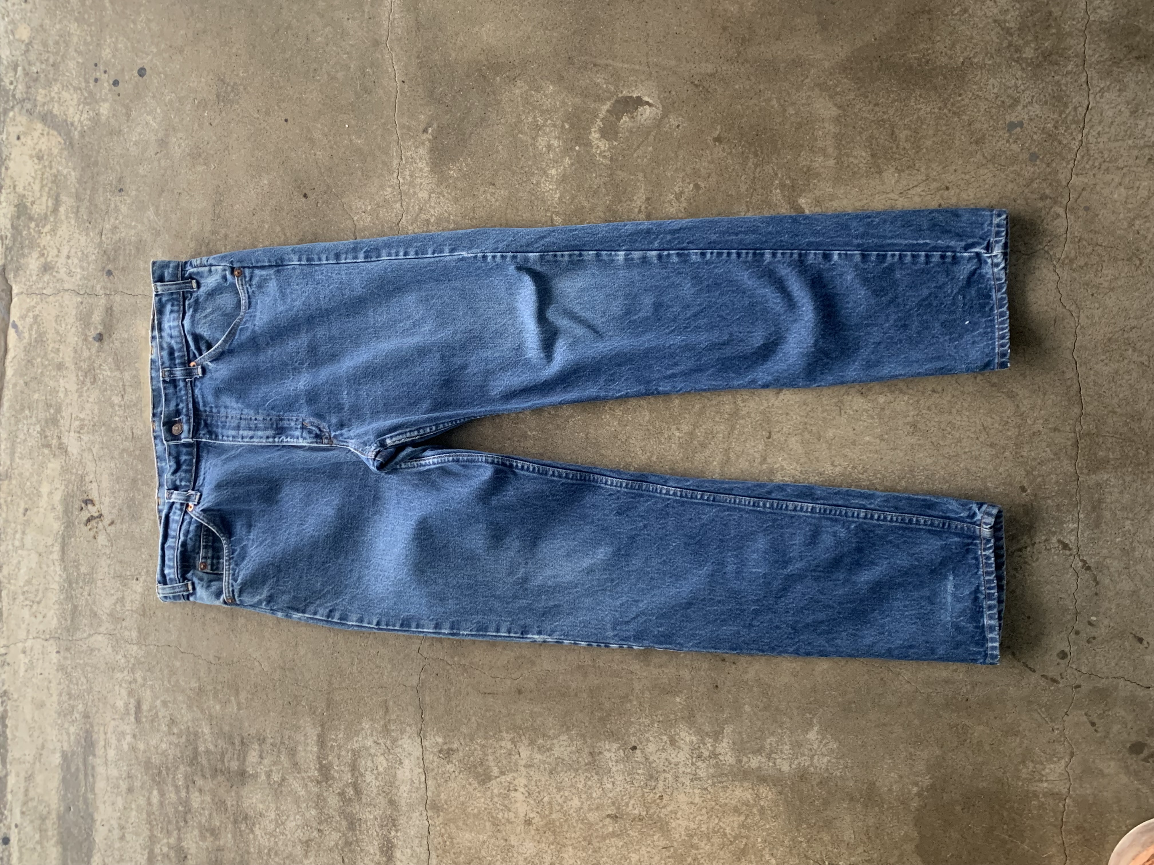 전면 42탈론 지퍼가 적용된 1980년대 초반 생산 리바이스 505 데님팬츠입니다. 레드탭 505에 비해 밑단이 갈수록 좁아지는 테이퍼드 경향이 보다 짙은 제품으로, 캐주얼한 스니커즈보다는 보다 포멀한 구두나 부츠에 매치하기 좋을만한 제품입니다.
