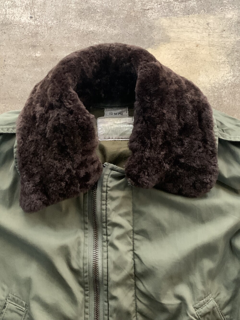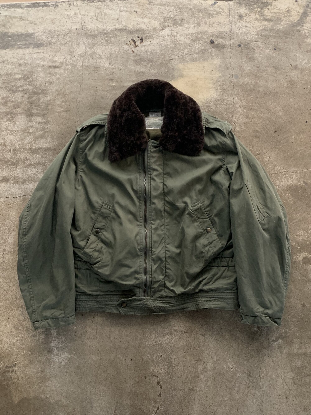 콕핏에 앉은 상태에서도 거추장스럽지 않을만한 짦은 기장감과 더불어 미군과는 달리 벌키하지 않으면서도 적절하게 배치된 충전재, 한 쪽으로 살짝 치우쳐진 지퍼, 탈부착 가능한 칼라 등이 돋보이는 제품입니다. 표기 92M 으로 100호 전후로 착용하는 분들에게 권장드립니다. 🚩 🚩Condition 소매 부분 겉감 헤짐 등의 사용감이 있는 제품.