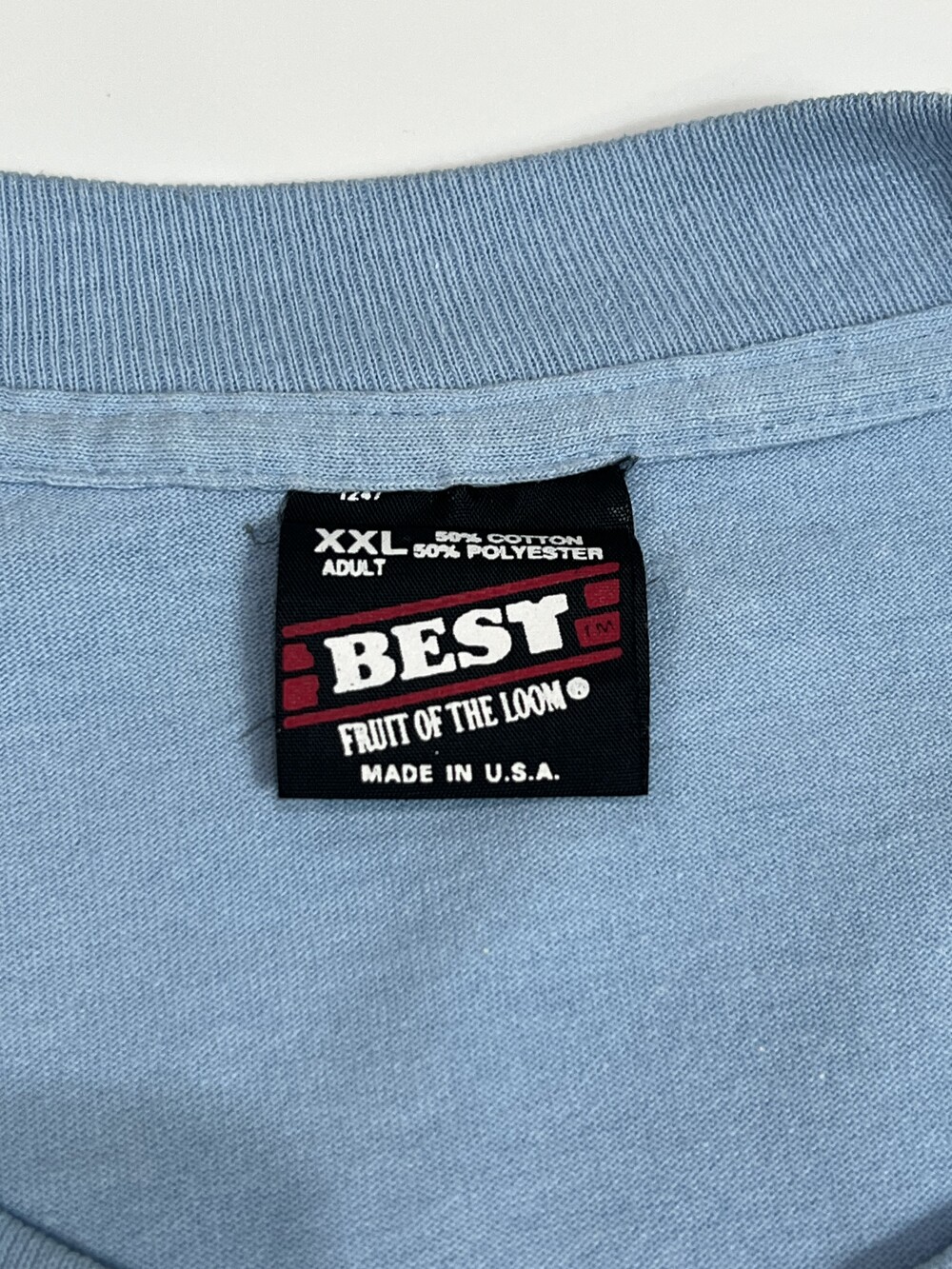 코스를 완주를 한다거나 경쟁적으로 기록을 갱신한다거나 하는 기존의 마라톤과는 다른, 기금운동의 성격이 강한 워커톤(WALKATHON) 프로모션 프린팅이 올려진 티셔츠입니다. 흑인들이 대학 교육을 받을 수 있게끔 등록금 기금을 모으는 워커톤으로, 뒷면에는 모금에 참가한 대학교 명단이 프린팅이 배치되어 있습니다.