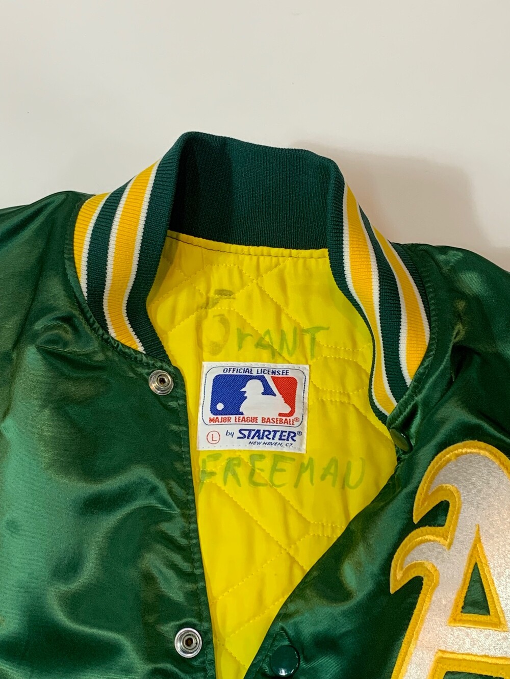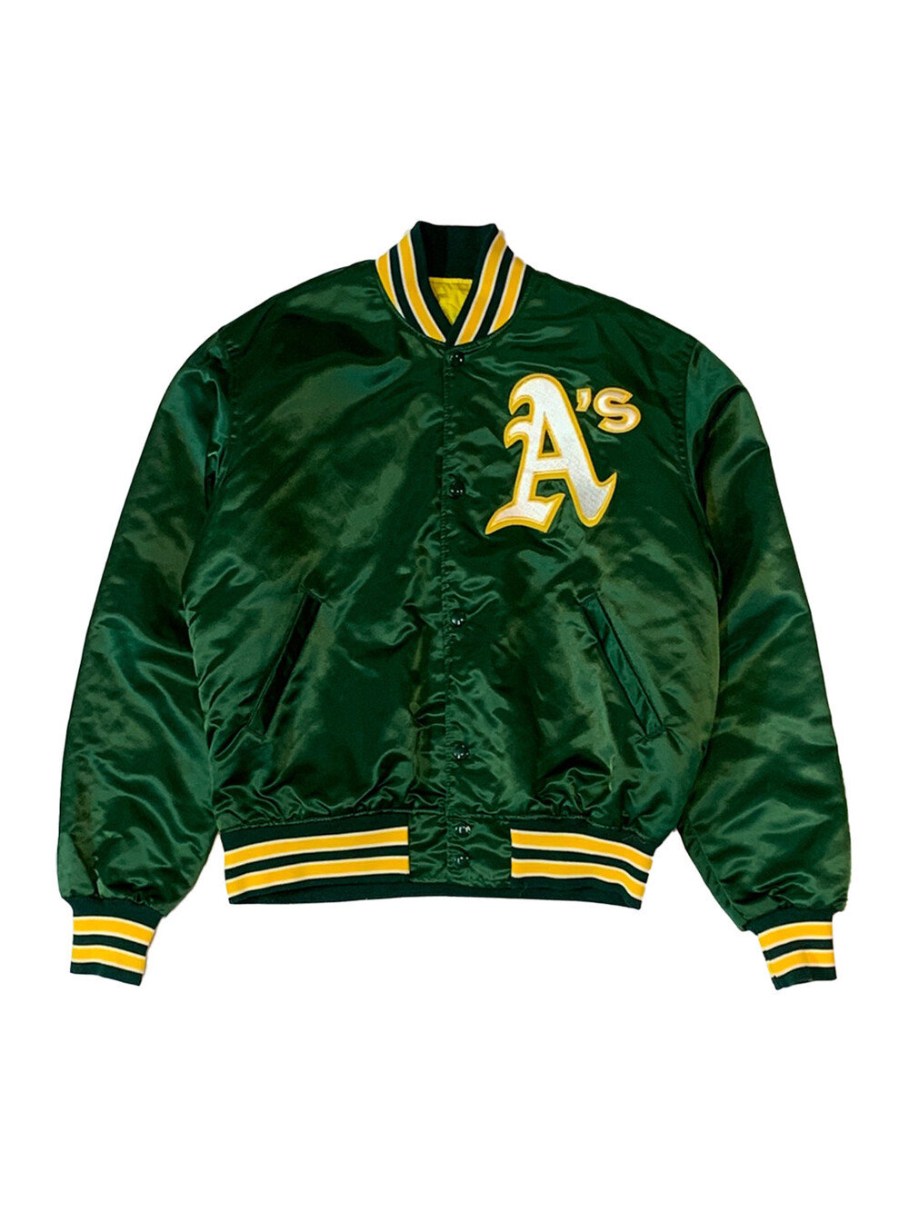메이저리그 아메리칸리그 소속 오클랜드 애슬레틱스의 그린&옐로우 배색이 돋보이는 팀 자켓입니다. 더그아웃에서 대기중인 선수들이나 매니저가 주로 업었기 때문에 메이저리그 제품에 한해서는 더그 아웃 자켓이라고도 부릅니다. 1980년부터 1982년까지 매니저로 재임하던 빌리 마틴(Billy Martin)이 1982년 오클랜드 애슬레틱스 팀 자켓의 모델로 입은 모습이 커머셜로 공개되기도 했습니다.