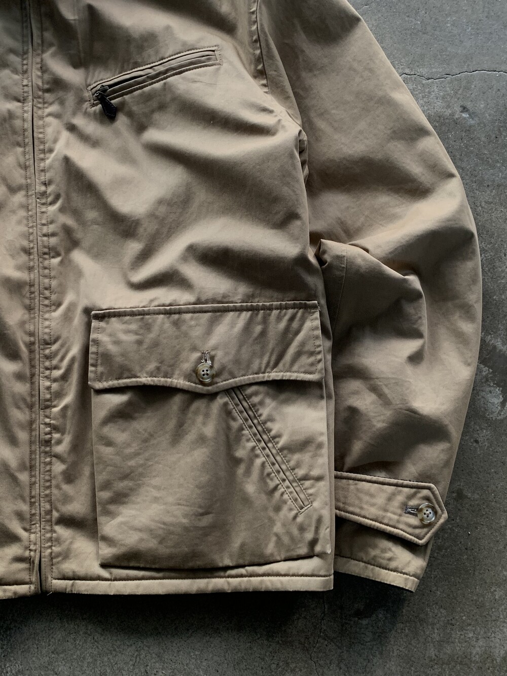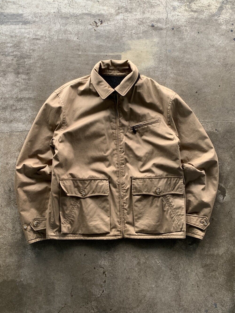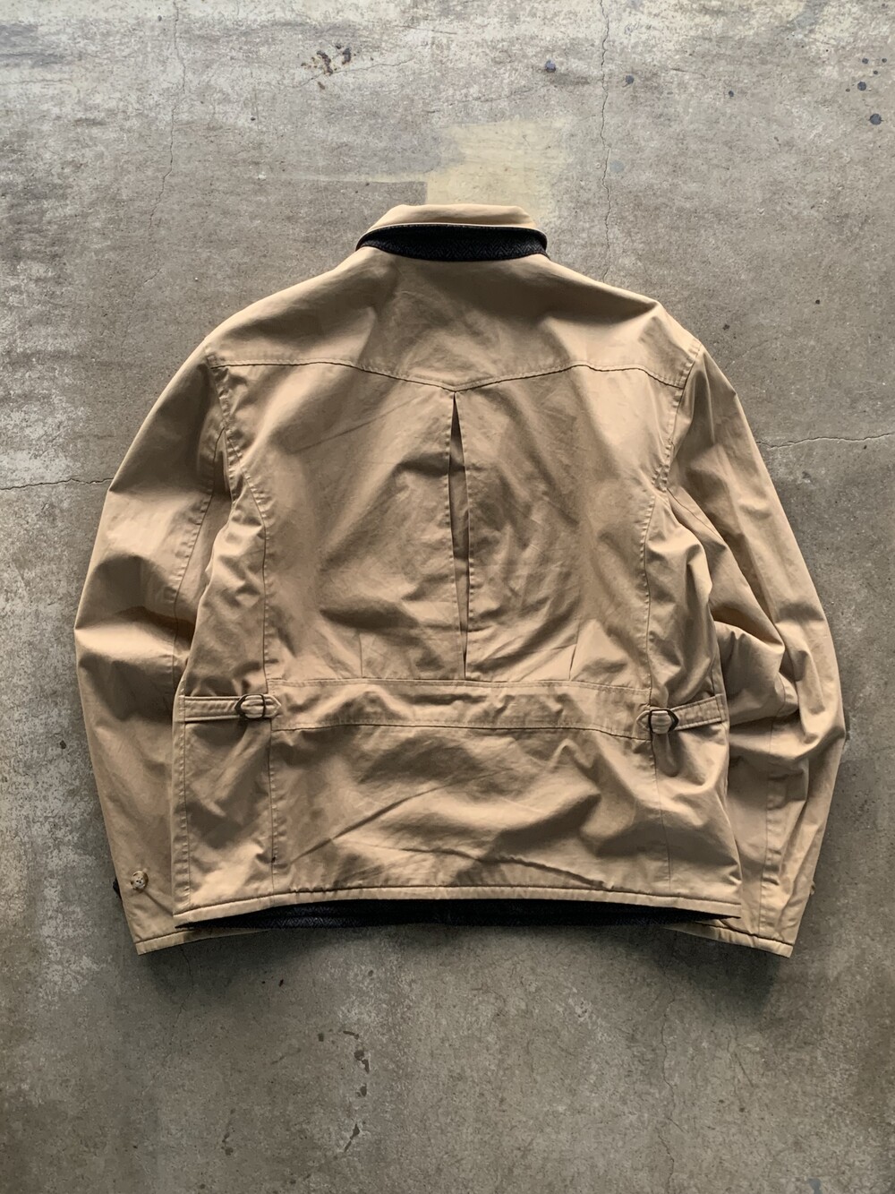 뒷면 하프벨트와 소매 스트랩이 공통적으로 적용되는 1930-40년대 스포츠 자켓 디자인을 모티브로 한 쪽은 헤링본 울 원단, 다른 한 쪽은 코튼 트윌 원단이 적용된 폴로 랄프로렌의 리버시블 스포츠자켓입니다. 고전적인 비례감을 유지하면서도 소매 길이나 기장을 어느정도 늘려 스타일에 제약 없이 착용하기 좋을만한 제품입니다.