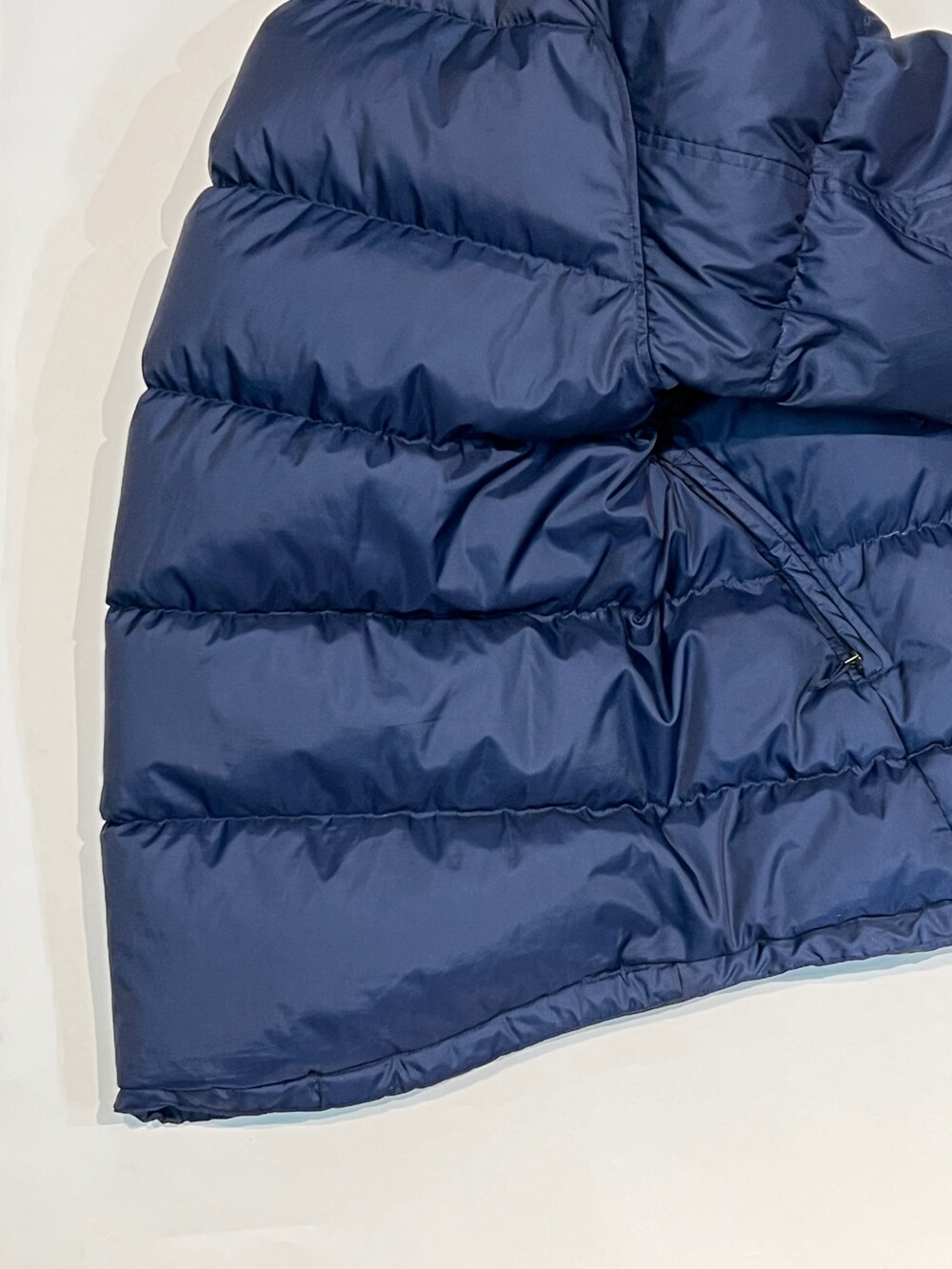2003/04 시즌 팀웨어로 지급된 FC 인테르나치오날레 (인터밀란) 다운 자켓입니다. 동일한 시즌에 발매된 윈드브레이커와 유사한 디자인이나, 뒷면이 살짝 길게 내려와 엉덩이를 가리는 기장감의 제품입니다. 벤틸레이션 용도의 언더암 부분 지퍼와 밑단 스트링과 소매 벨크로를 이용하여 방풍용 디테일도 있는 제품입니다.