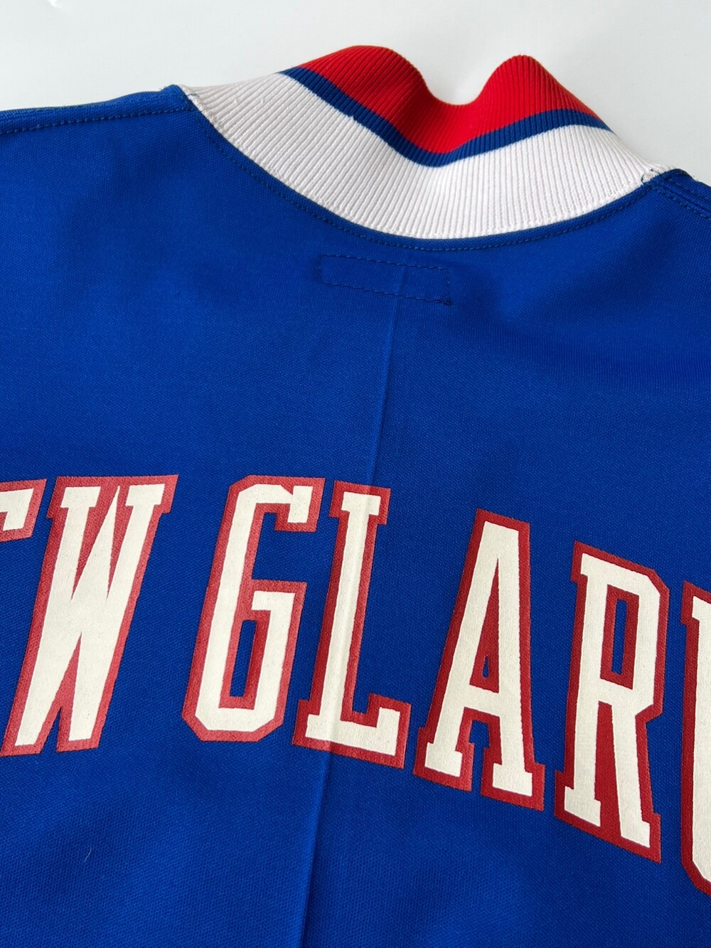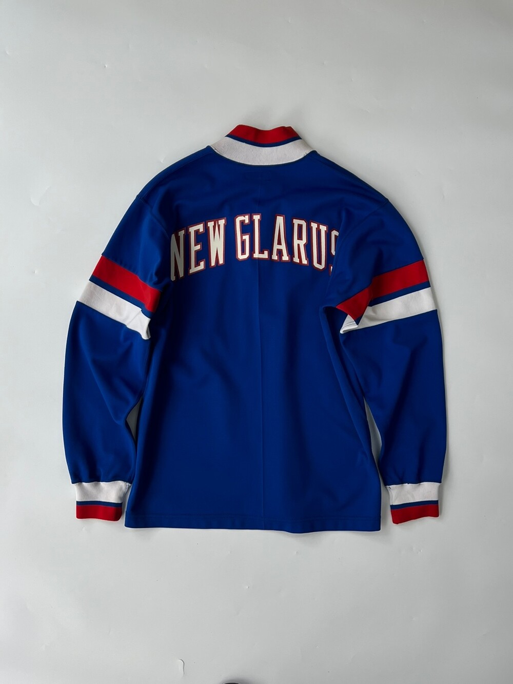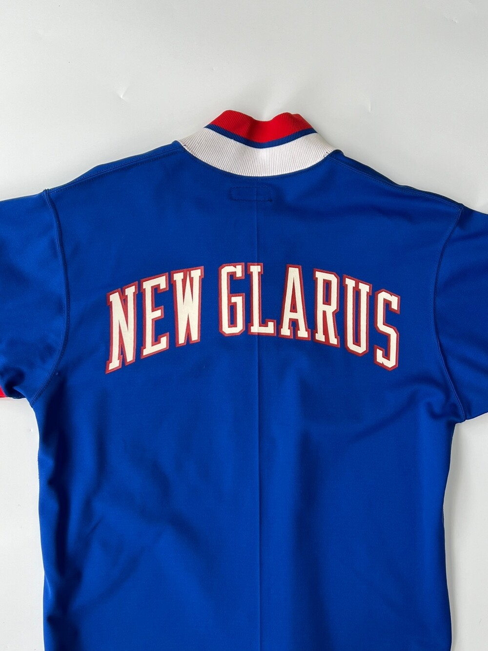 🚩Detail 나일론 소재의 바스켓볼 웜업 자켓입니다. 위스콘신 주에 위치한 메이커 뱃저 스포팅 굿즈(BADGER SPORTING GOODS)에서 생산한 제품으로, 동일한 주에 위치한 뉴 글라루스 고등학교의 바시티 팀인 NEW GLARUS KNIGHTS의 프린팅이 전후면에 배치되어 있습니다.