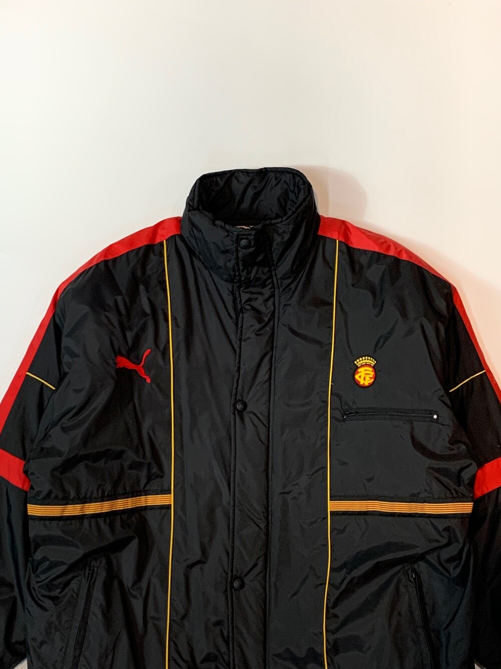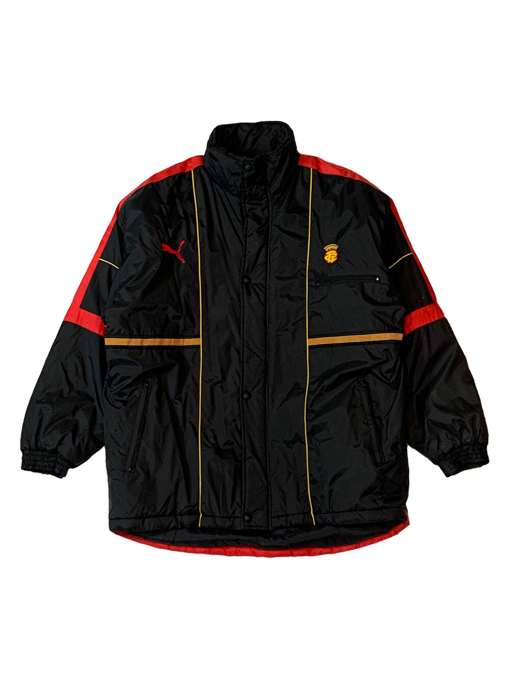 자치권을 인정받지 못해 UEFA, FIFA 등의 기관이 주최하는 국제경기에는 출전하지 못하는 비공식 국가대표팀인 카탈루냐 대표팀의 1998/99 시즌 벤치파카입니다. 나일론 겉감에 폴리 충전재가 들어 가볍게 착용할 수 있으며, 방풍 역할을 담당하는 아우터이다보니 보온성에 초점을 맞춘 이너나 미들레이어 아우터 등을 같이 착용하기를 권장드립니다. 105호 전후로 레이어드하기에 불편하지 않을 정도로 여유로운 사이즈의 제품입니다.