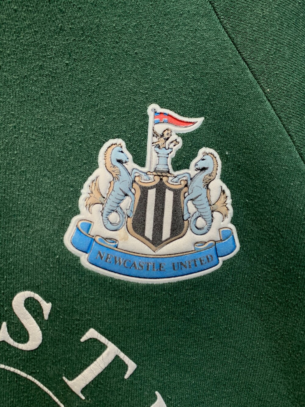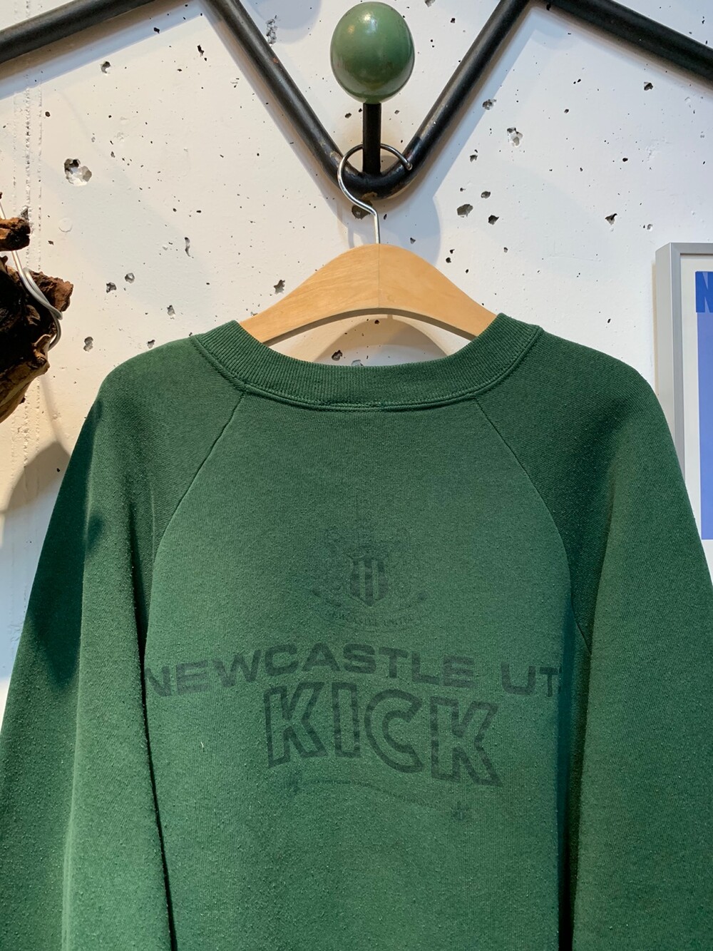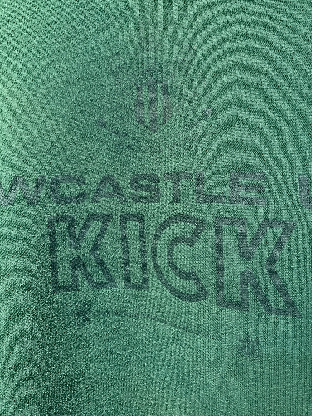 KICK SPORTWEAR 명성있는 구단들의 로고나 이미지를 활용한 프린팅이 올려진 티셔츠, 스웻셔드 등의 캐주얼한 스포츠웨어를 판매했던 브랜드입니다. 흐려져서 잘 보이지는 않지만 후면 프린팅 하단부에는 KICK SPORTWEAR IN ASSOCIATION WITH NEWCASTLE UNITED F.C. 라고 기재되어 있어, 라이센스드 프로덕트로 이해해도 좋을만한 제품입니다.