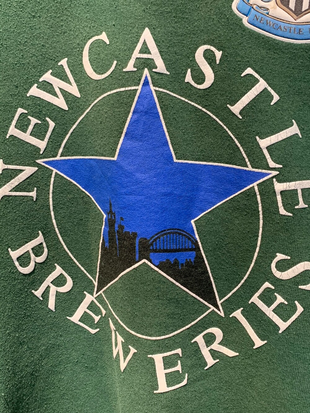 🚩Detail 뉴캐슬 풋볼셔츠 전면 메인 스폰서로 널리 알려진 뉴캐슬 브라운에일(NEWCASTLE BROWN ALE)을 생산한 것으로 널리 알려진 양조장 NEWCASTLE BREWERIES를 상징하는 별 로고가 전면에 프린팅된 킥 스포츠웨어 브랜드의 튜블러 타입 스웻셔츠.