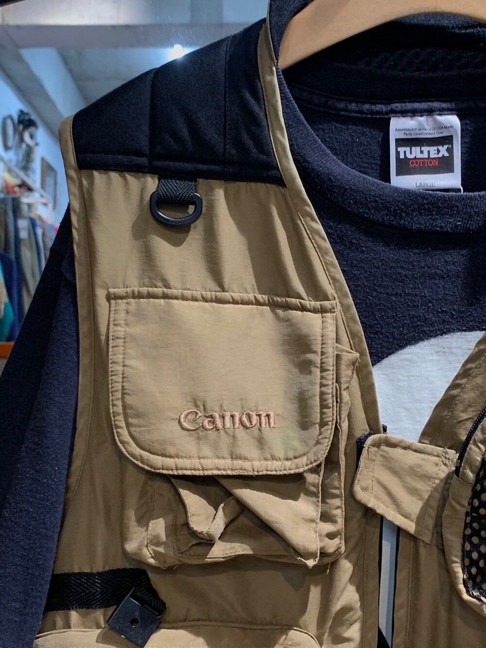카메라, 프린터, 디스플레이 등을 주력으로 선보이는 일본 전자제품 브랜드 캐논(Canon)의 카메라맨 베스트. 렌즈, 그립, 베터리, 메모리카드 등 다양한 악세서리를 보관할 수 있게끔 전면과 후면에 포켓이 있으며, 무게를 못 이겨 처지지 않고 안정적으로 몸에 밀착되도록 몸판부분과 포켓 안쪽에 패드가 붙은 제품입니다.