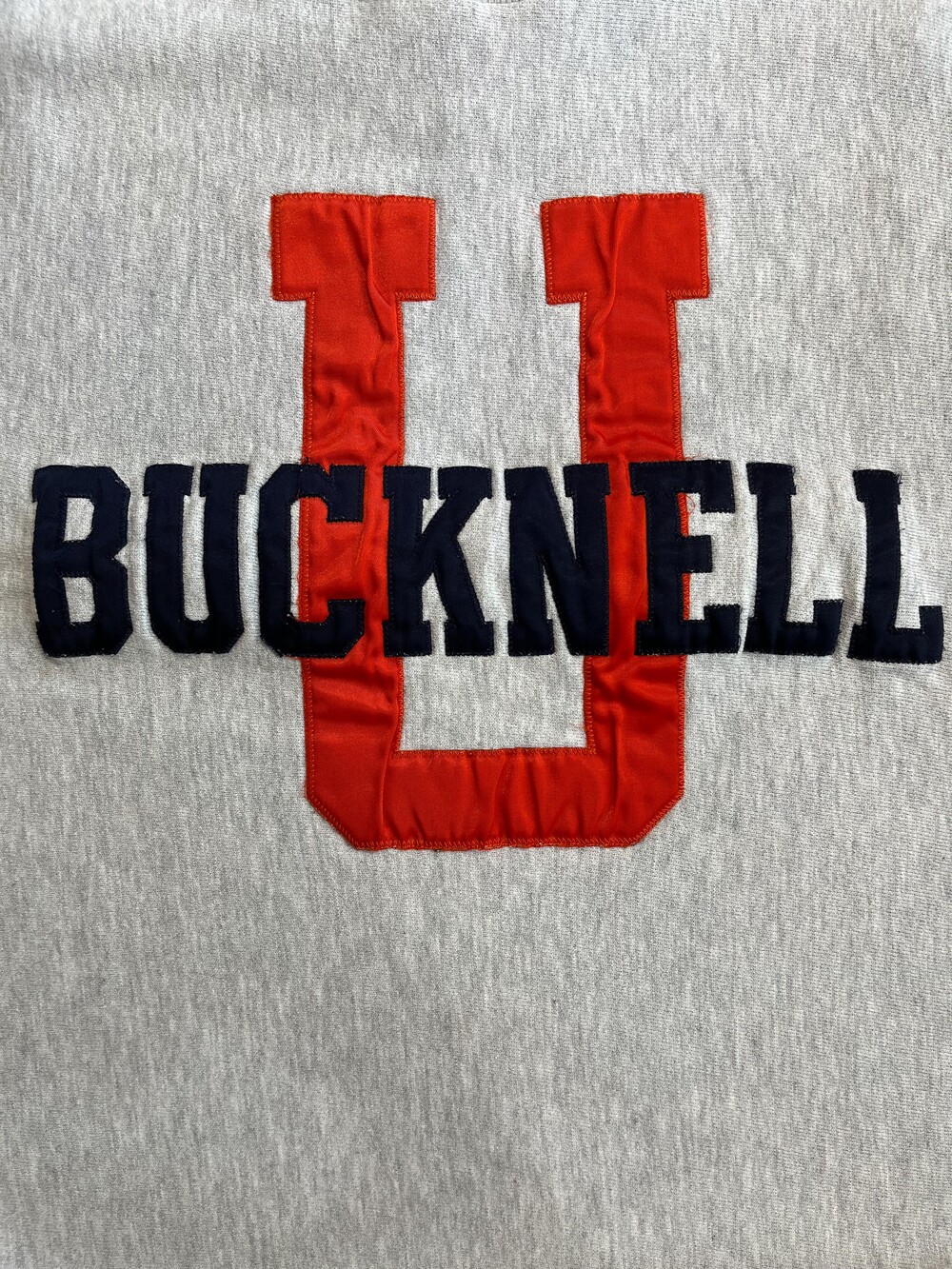 🚩Detail 1990년대 미국 생산 챔피온의 리버스위브 스웻셔츠입니다. BUCKNELL UNIVERSITY의 컬러웨이인 네이비와 오렌지 컬러의 패치가 전면에 배치되어 있습니다.