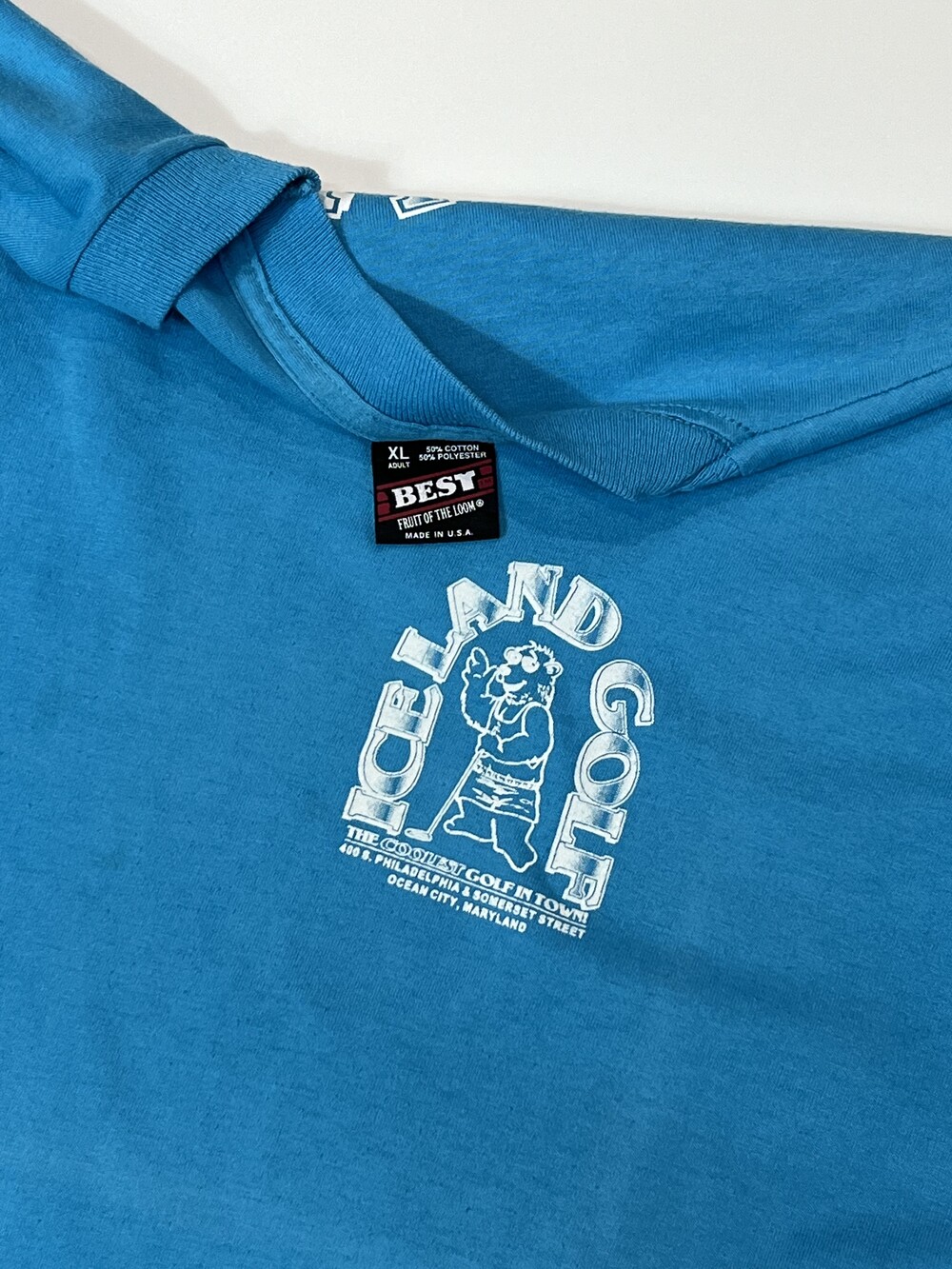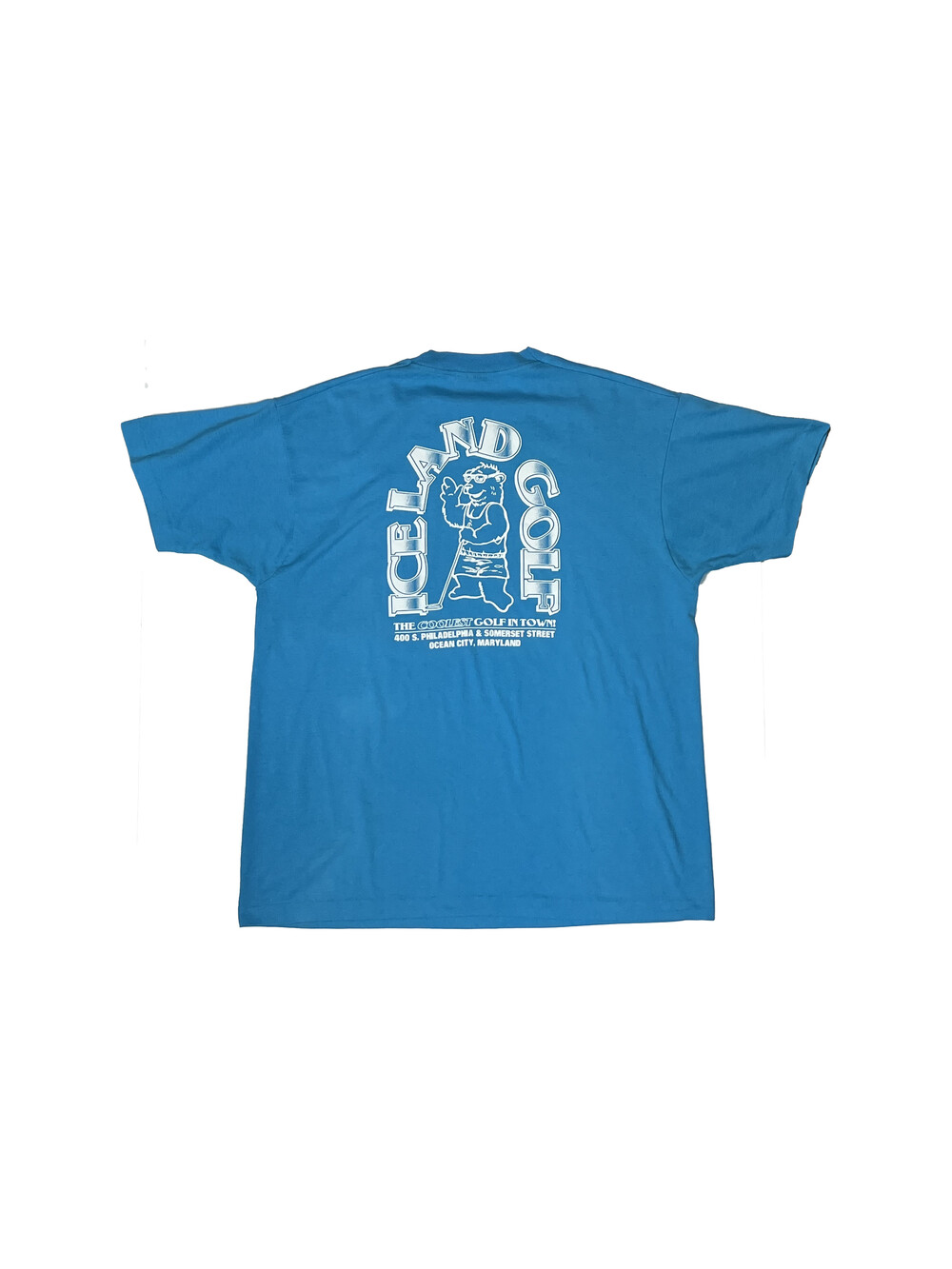 메릴랜드 주에 위치한 골프장 아이스랜드 골프 프로모션 프린팅이 올려진 제품. THE COOLEST GOLF IN TOWN! 이라는 슬로건에 걸맞는 바디 컬러와 프린팅 조합이 어울리는 제품입니다.