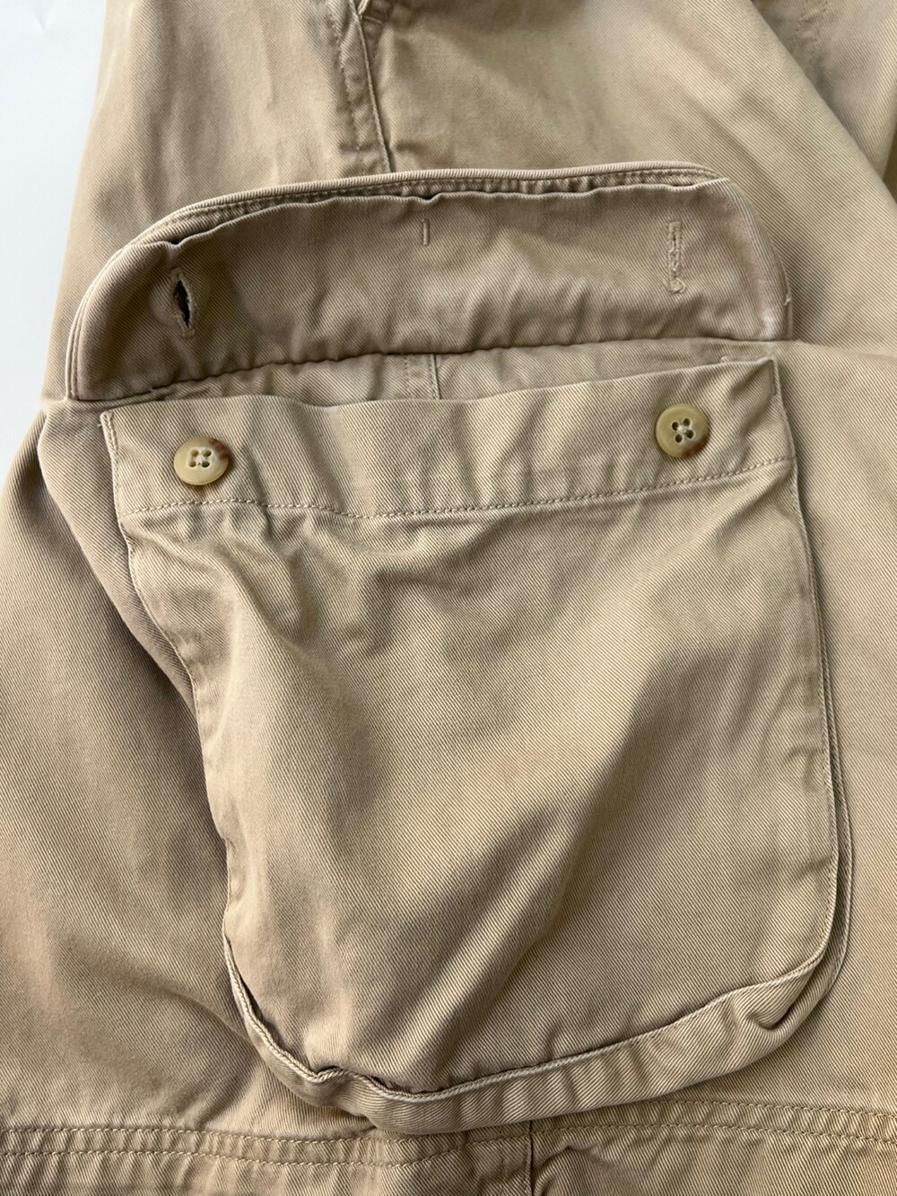 폴로 랄프로렌의 카고 쇼츠입니다. 플레인 프론트 타입의 치노 팬츠에 양쪽으로 포켓이 붙은 형태의 제품으로, 큼직한 아웃포켓이 있는데도 불구하고 투박하기보다는 미니멀한 감성의 쇼츠입니다.