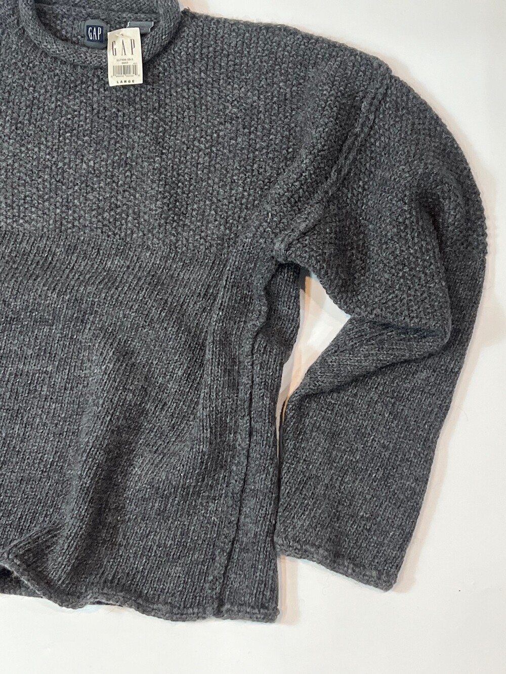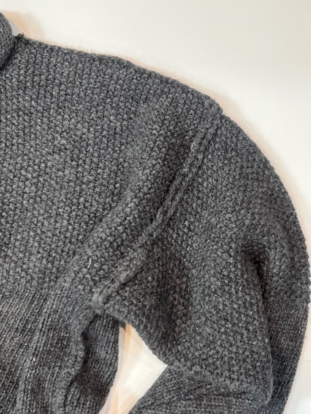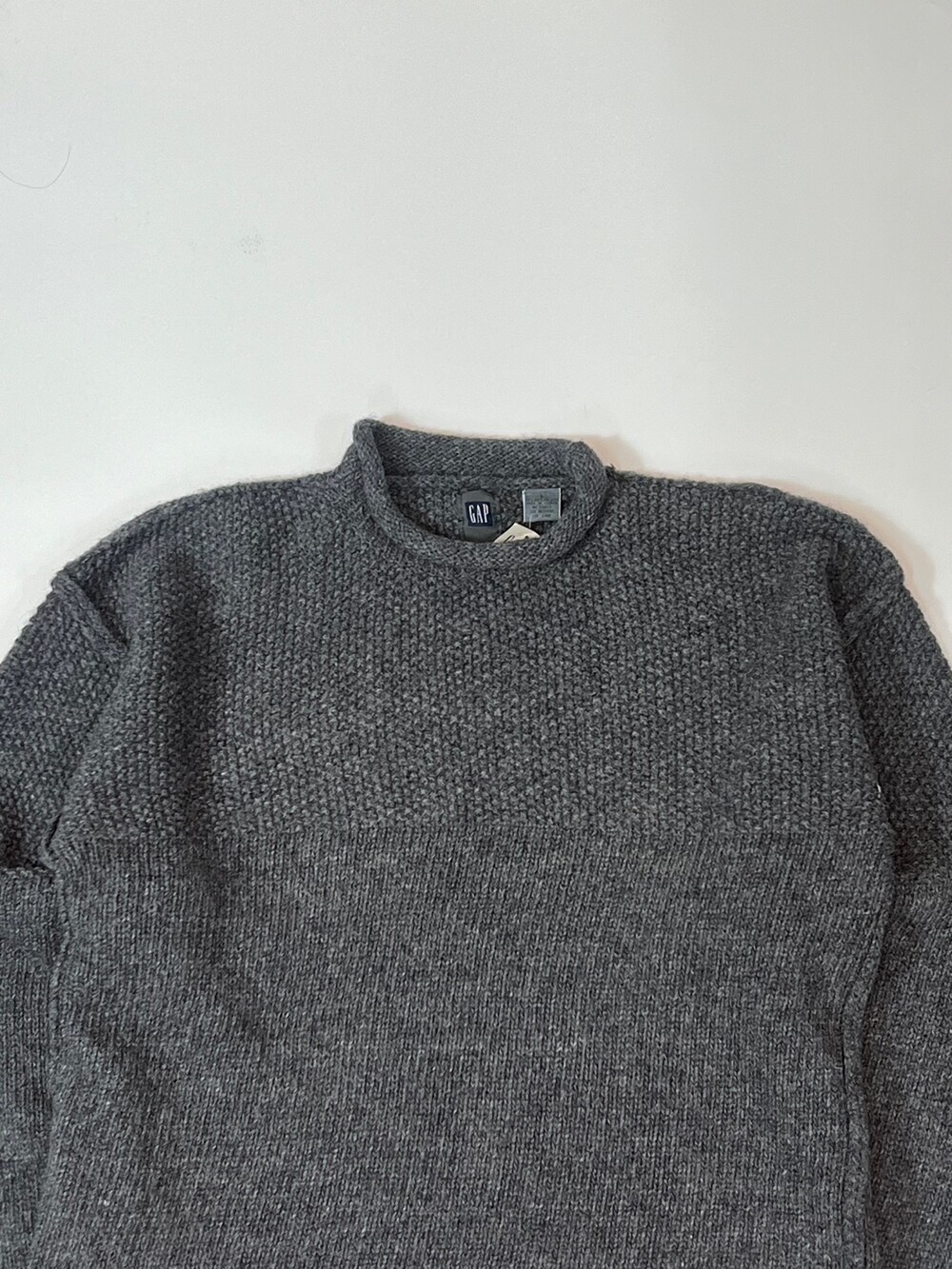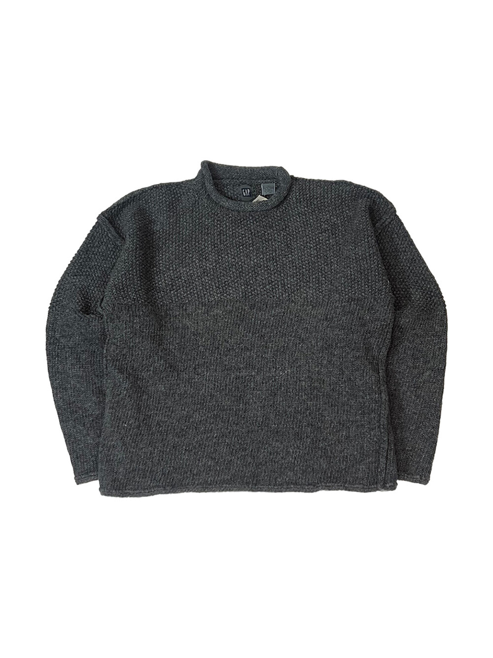 🚩Detail 군데군데 각기 다른 짜임을 보이는 셔틀랜드 울 소재 갭(GAP)의 롤넥 니트 풀오버입니다. 이음매를 거칠게 마감한 것도, 밑단과 소매 립도 아주 얇게 만든것도 그렇고 질감을 거침없이 섞으면서도 어둑어둑한 컬러 덕분에 크게 이질감이 느껴지지 않는 독특한 니트입니다.