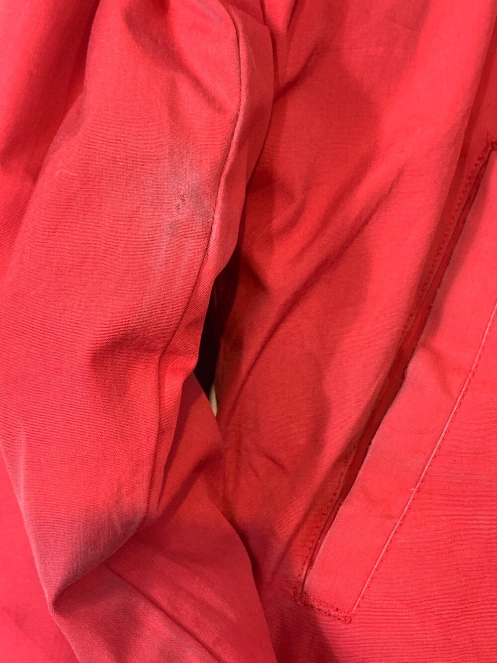 🚩Condition 소매 중간 부분과 끝 부분에 핀홀 혹은 쓸림으로 인한 원단 헤짐이 일부 존재하며 겉감이 희끗하게 페이딩이 된, 사용감이 있는 상태.