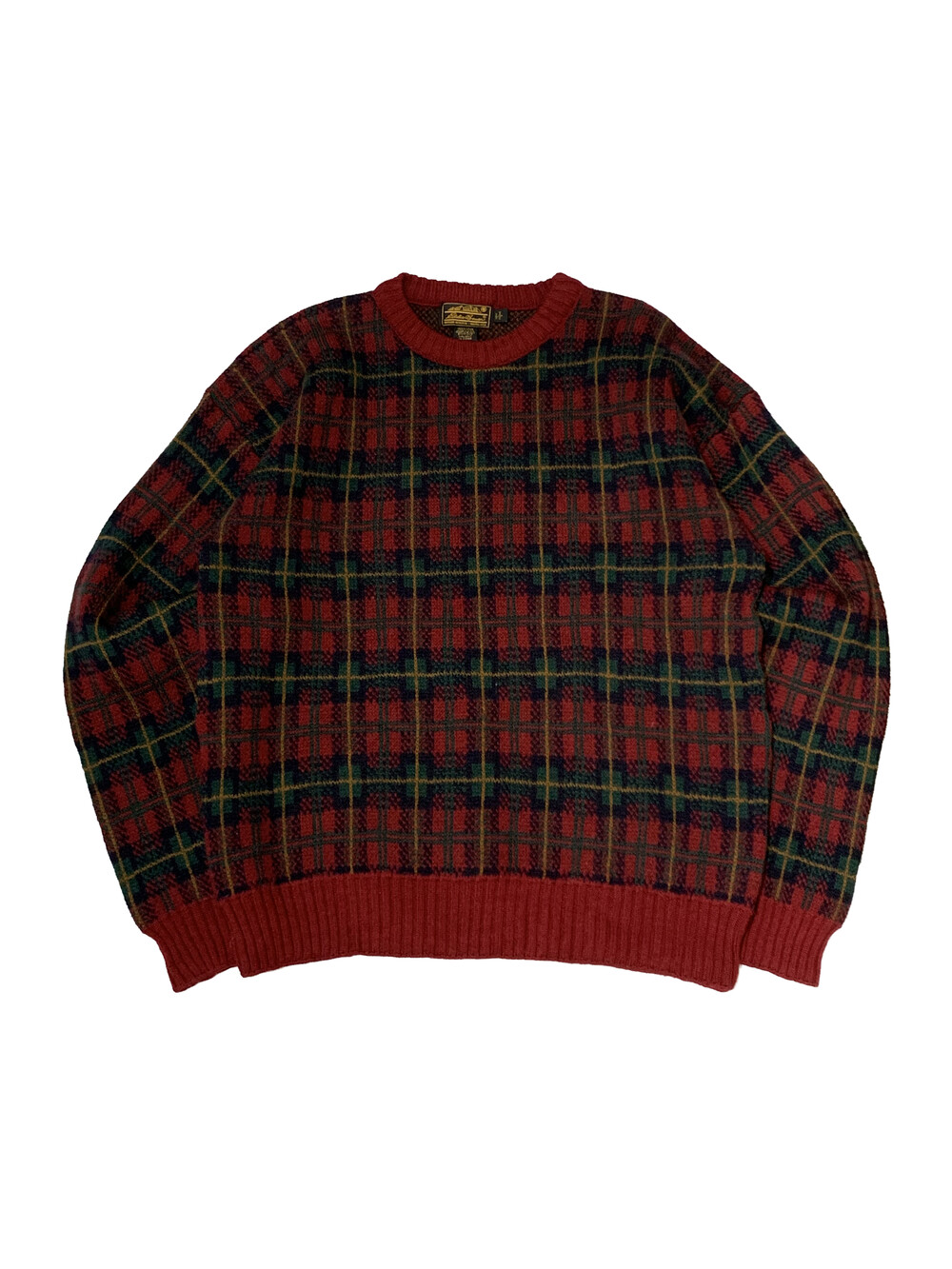 미국발 아웃도어 브랜드에서 공통적으로 선보이던 따뜻한 색감의 체크 패턴이 매력적인 울 스웨터. 청키한 두께감, 그리고 여유로운 사이즈로 루즈하게 착용하거나 스웻후디나 셔츠 등의 이너를 레이어드해서 착용해도 좋을만한 제품입니다.