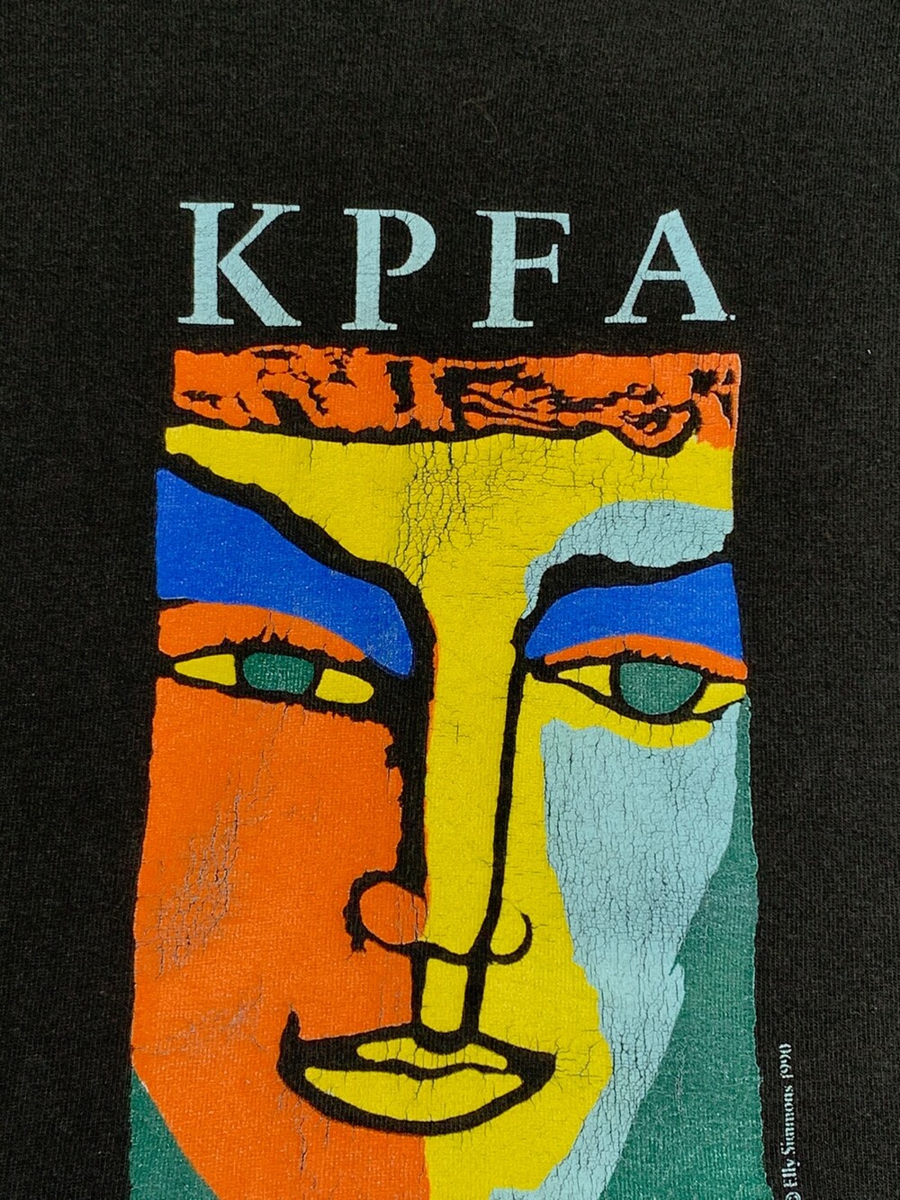 미국 캘리포니아 주 버클리(BERKELEY)에 위치하며 청취자 기금으로 운영되는 토크 및 음악 라디오 방송국 KPFA 프르모션 티셔츠. Elly Simmons 라는 작가의 팝아트 장르 작품이 프린팅되어 있는 걸로 보아 토크쇼에 참가했을 당시에 전시회 홍보를 목적으로 생산된 것으로 추정됩니다.