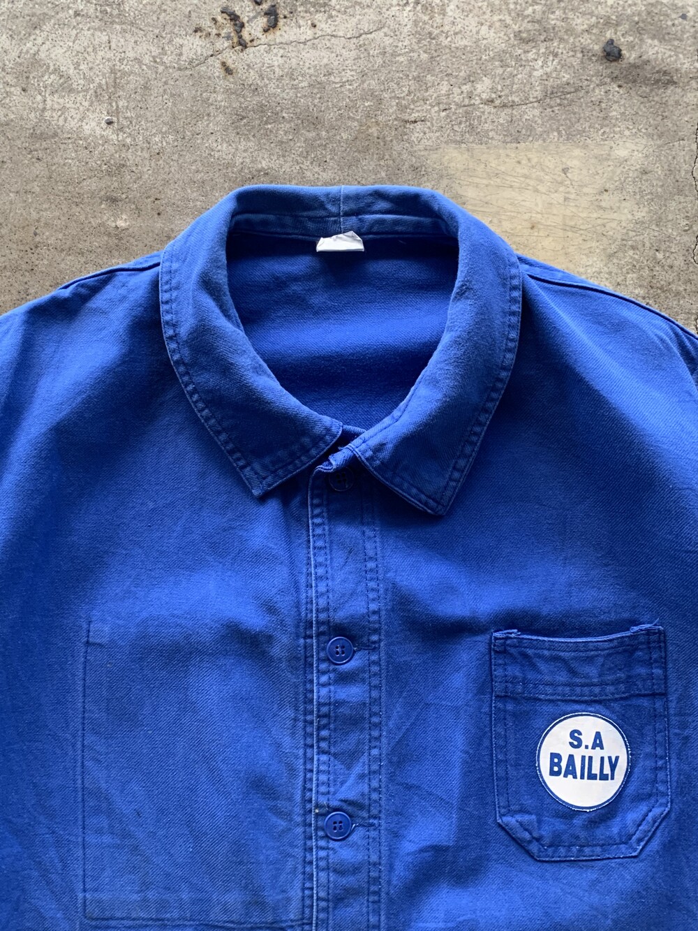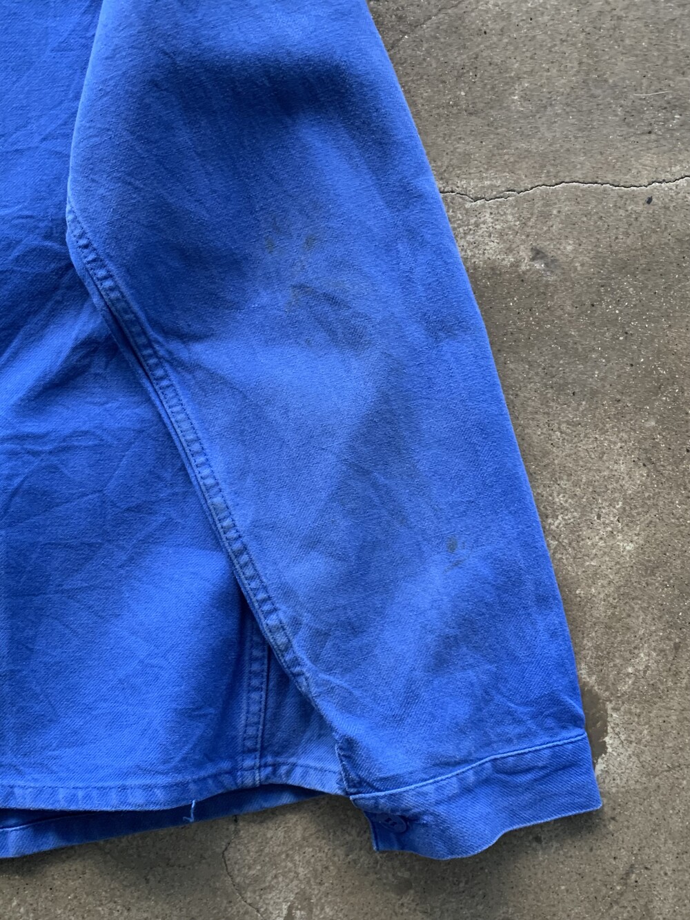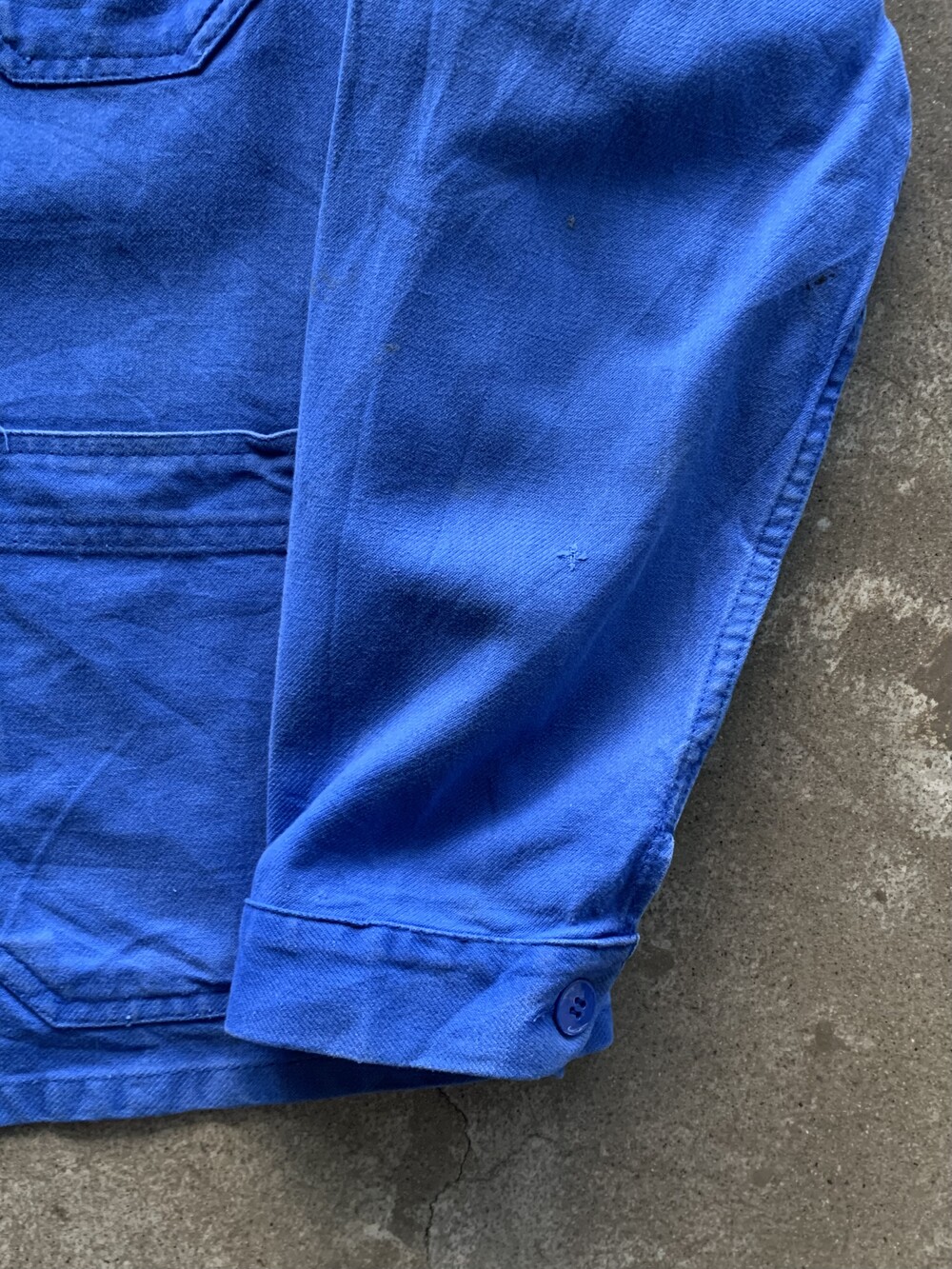 🚩Detail 안쪽에 메이커 택이 붙어있지는 않으나 둥근 모양의 클럽 칼라와 가장자리 테두리 외에는 전반적으로 플랫하면서도 푸른 빛깔의 버튼으로 미루어 1960-70년대 사이에 생산된 모델로 추정할 수 있을만한 전형적인 3포켓 타입 유로피언 워크 자켓입니다. 가볍게 착용할 수 있는 코튼 트윌 원단인지라 몰스킨 워크 자켓에서나 볼 만한 페이딩은 기대하기 어렵지만 따뜻한 날씨에는 아우터로, 추울 때는 넣어입지 않는 캐주얼한 셔츠로 활용해도 좋을만한 범용성이 돋보입니다.