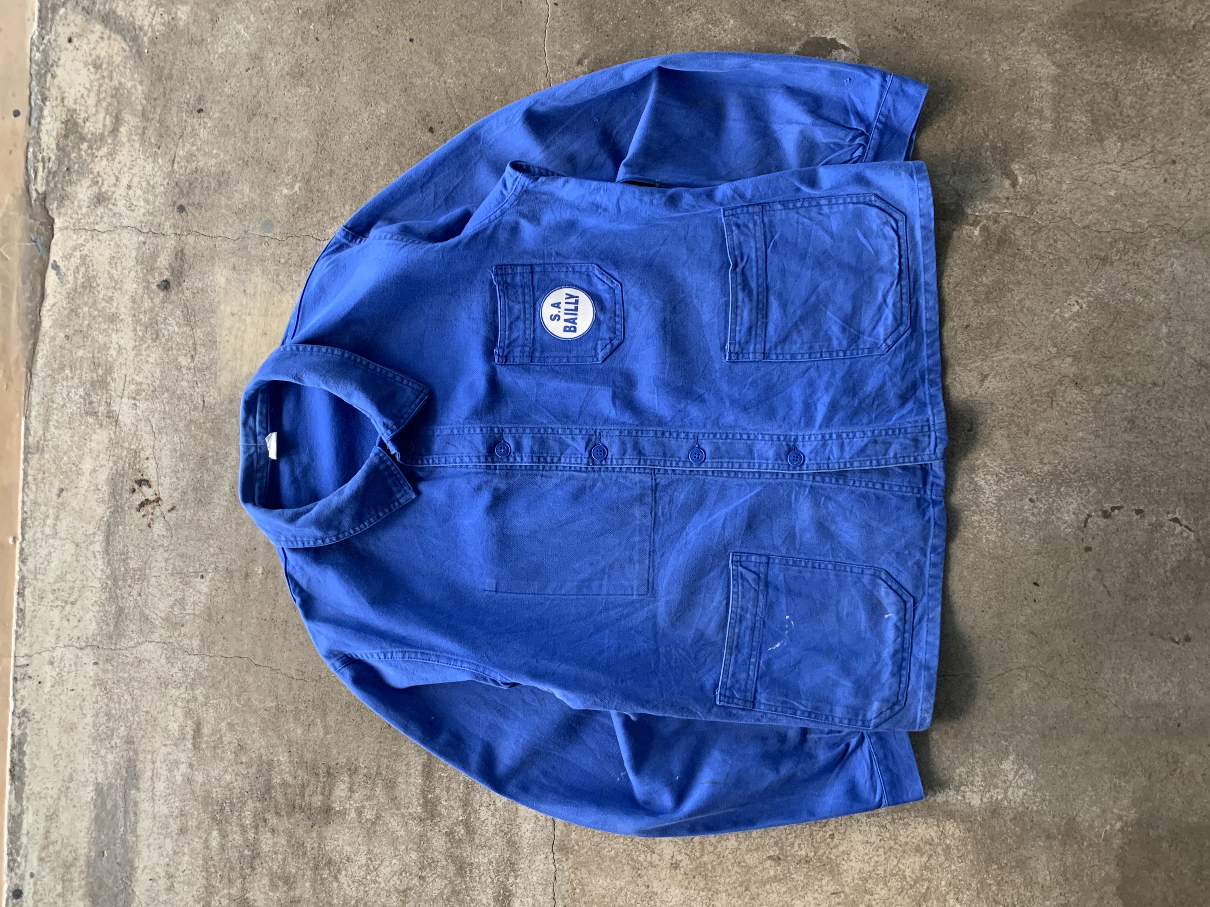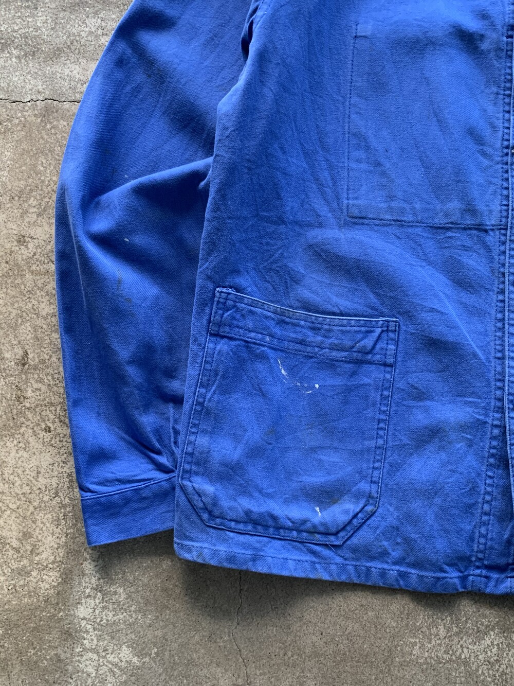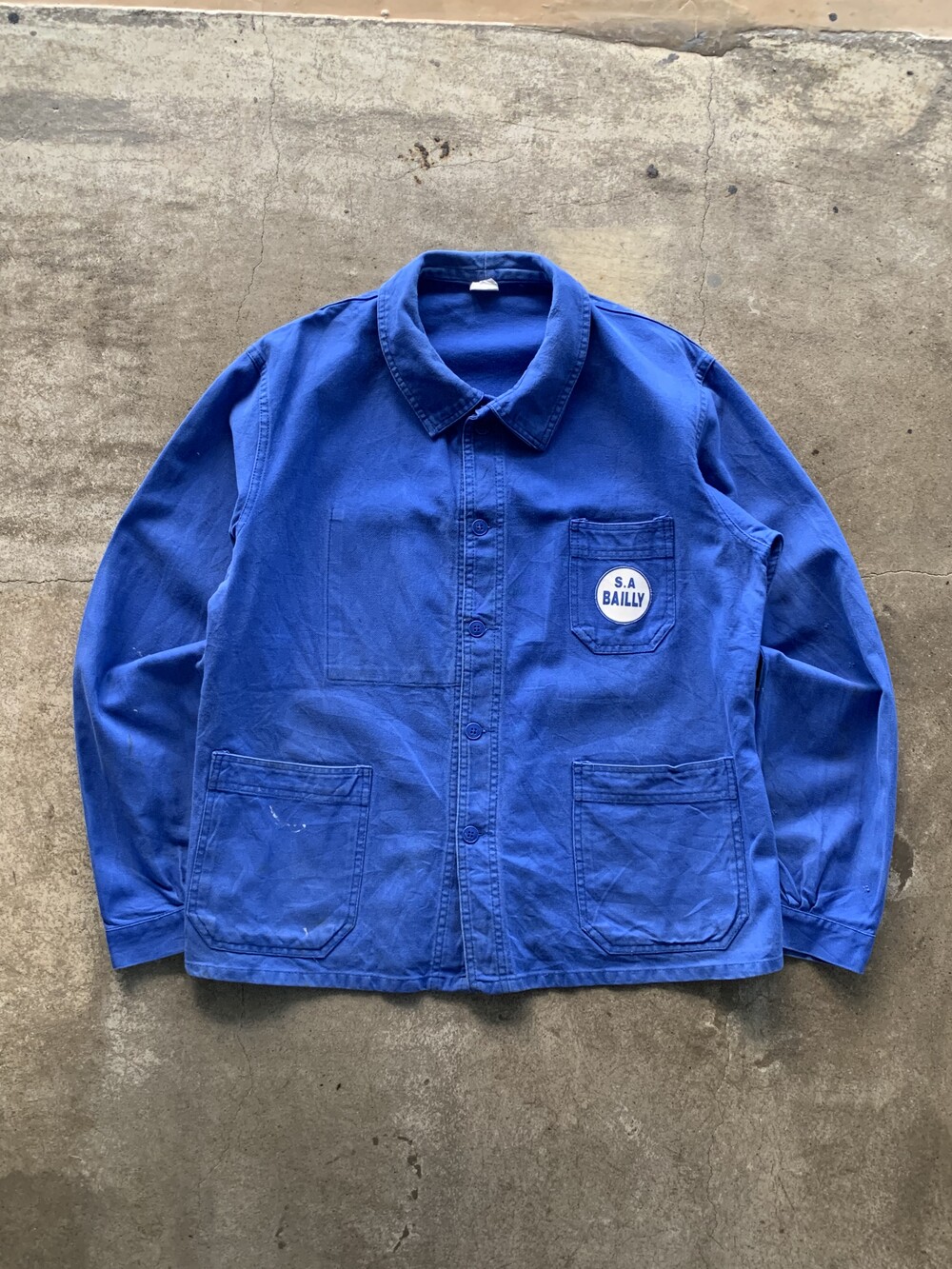 🚩Detail 안쪽에 메이커 택이 붙어있지는 않으나 둥근 모양의 클럽 칼라와 가장자리 테두리 외에는 전반적으로 플랫하면서도 푸른 빛깔의 버튼으로 미루어 1960-70년대 사이에 생산된 모델로 추정할 수 있을만한 전형적인 3포켓 타입 유로피언 워크 자켓입니다. 가볍게 착용할 수 있는 코튼 트윌 원단인지라 몰스킨 워크 자켓에서나 볼 만한 페이딩은 기대하기 어렵지만 따뜻한 날씨에는 아우터로, 추울 때는 넣어입지 않는 캐주얼한 셔츠로 활용해도 좋을만한 범용성이 돋보입니다.