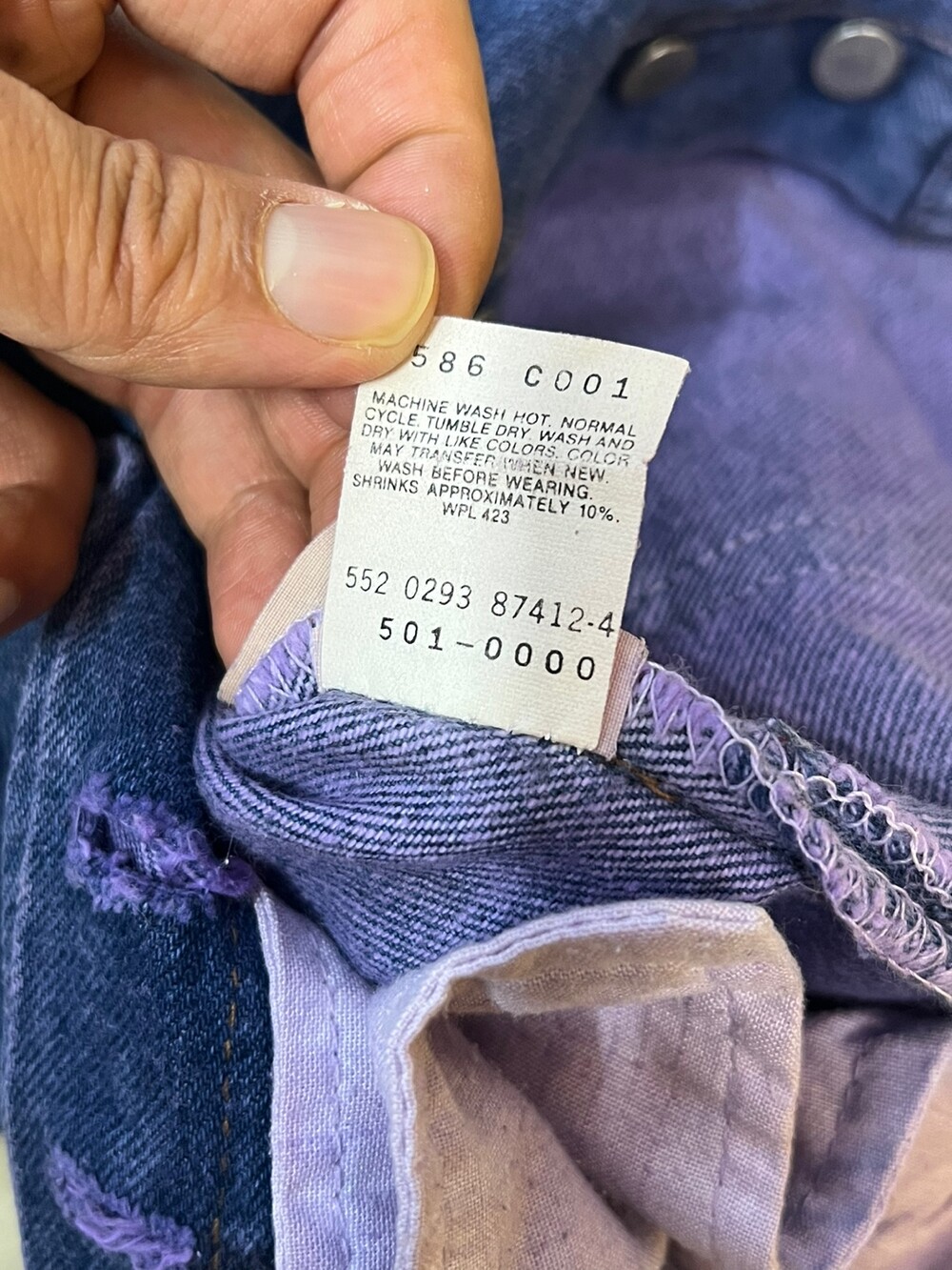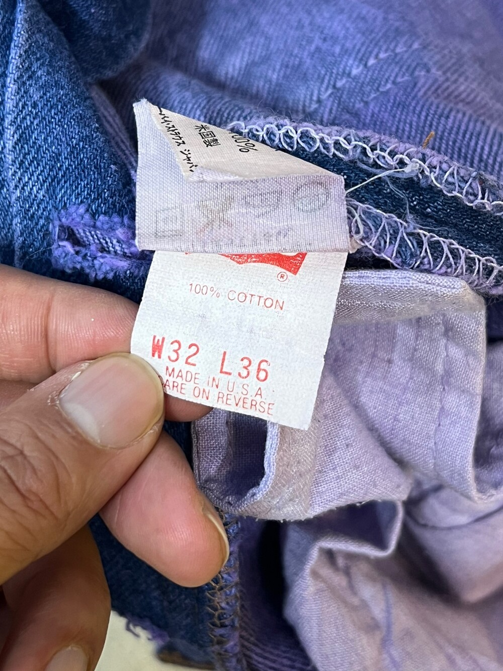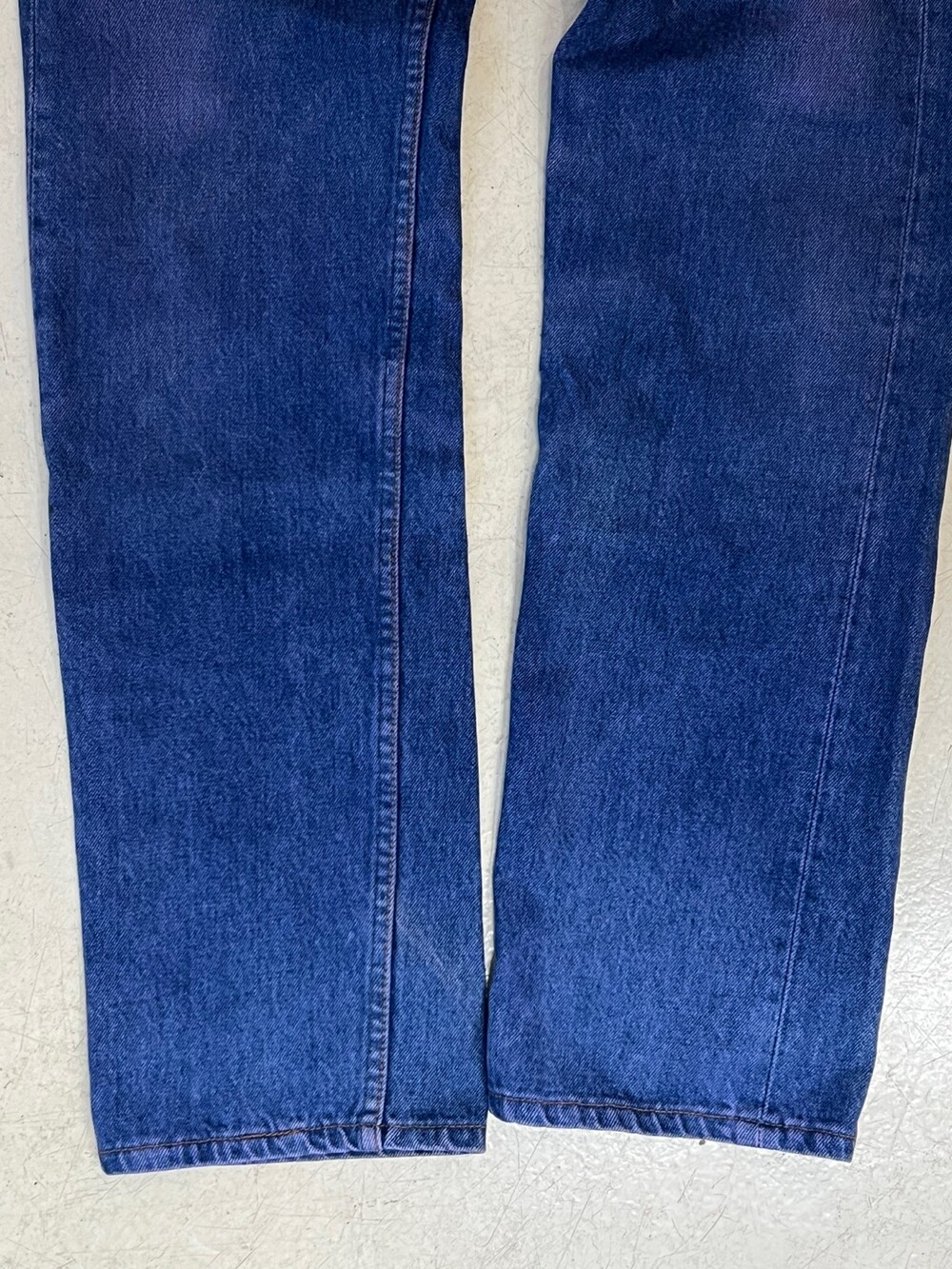 이전 사용자에 의해 염색 과정을 거친 리바이스 501 데님팬츠입니다. 1993년 2월 미국 생산 제품으로, 밑단 수선을 거치지 않은 긴 기장감의 501 특유의 느슨한 실루엣을 즐길 수 있는 제품입니다.