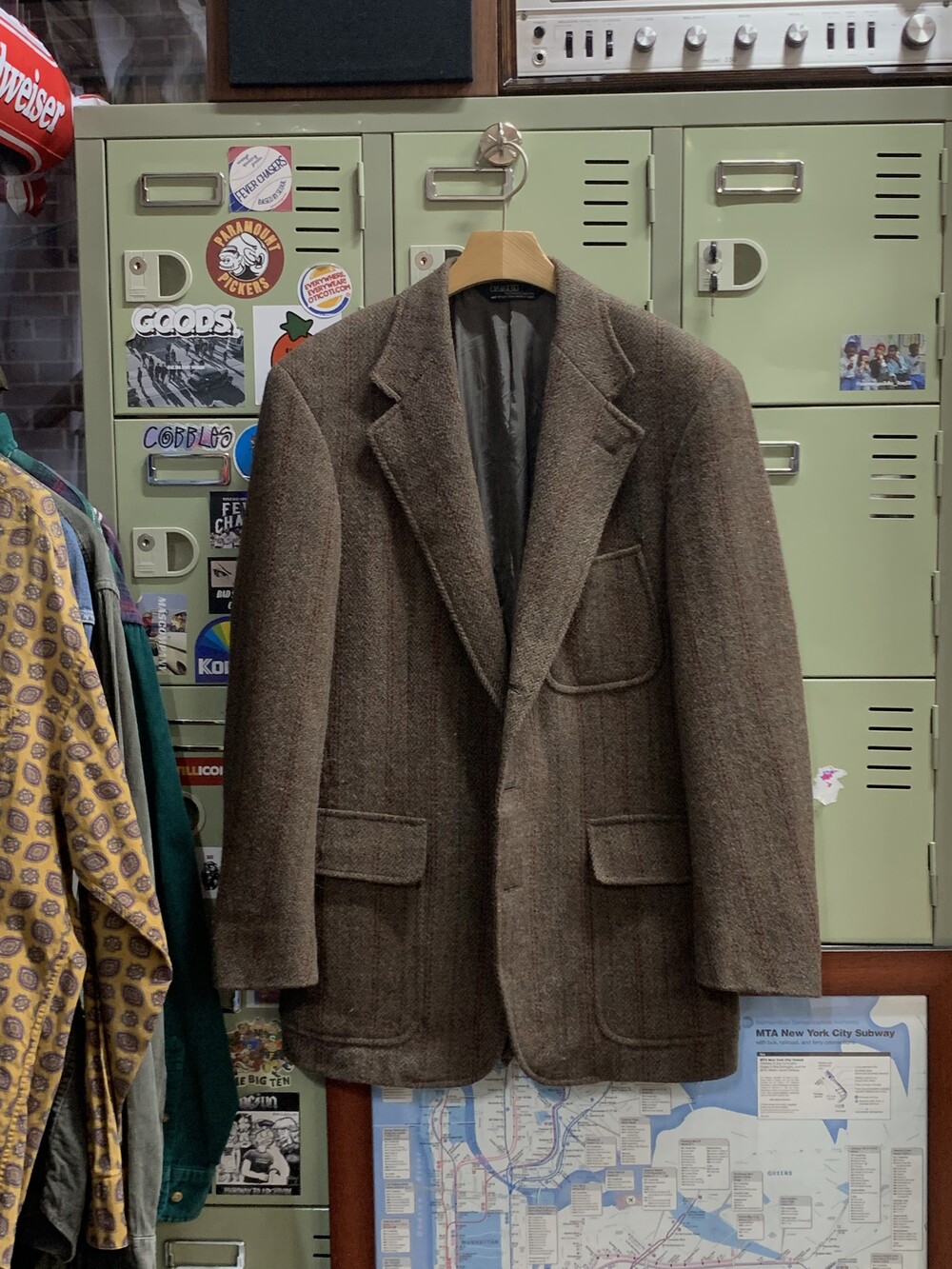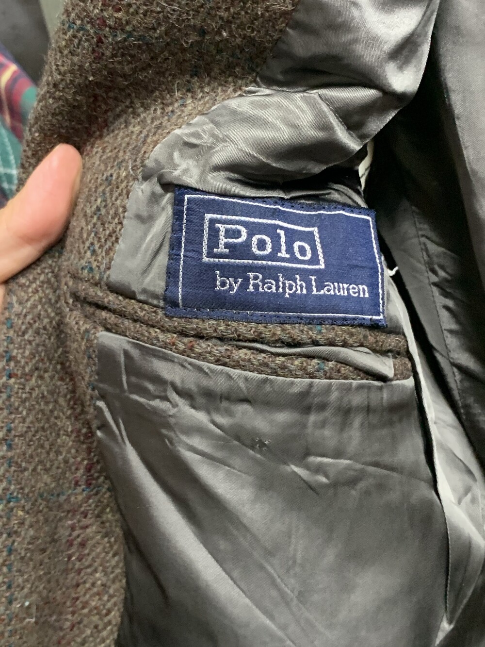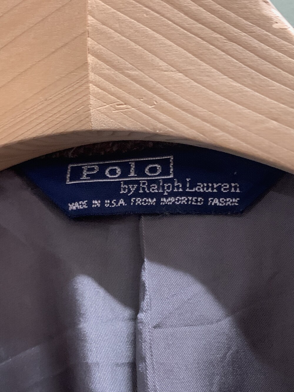 🚩Detail 두께감 있는 울 원단과 비스코스 라이닝, 어깨부분을 감싸는 과하지 않은 패드와 뒷면 센터벤트가 특징적인 전형적인 미국제 랄프로렌 울 스포츠 자켓. 맨 윗쪽 버튼이 자연스럽게 말려 보이지 않는 3 roll 2 사양이 두께감있는 원단 덕에 유려한 V존 연출이 가능할만한 제품으로, 셔츠나 두껍지 않은 니트 풀오버 혹은 니트 베스트 등을 활용하여 레이어드해서 착용하기를 권장드립니다.