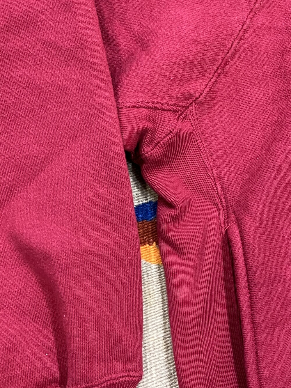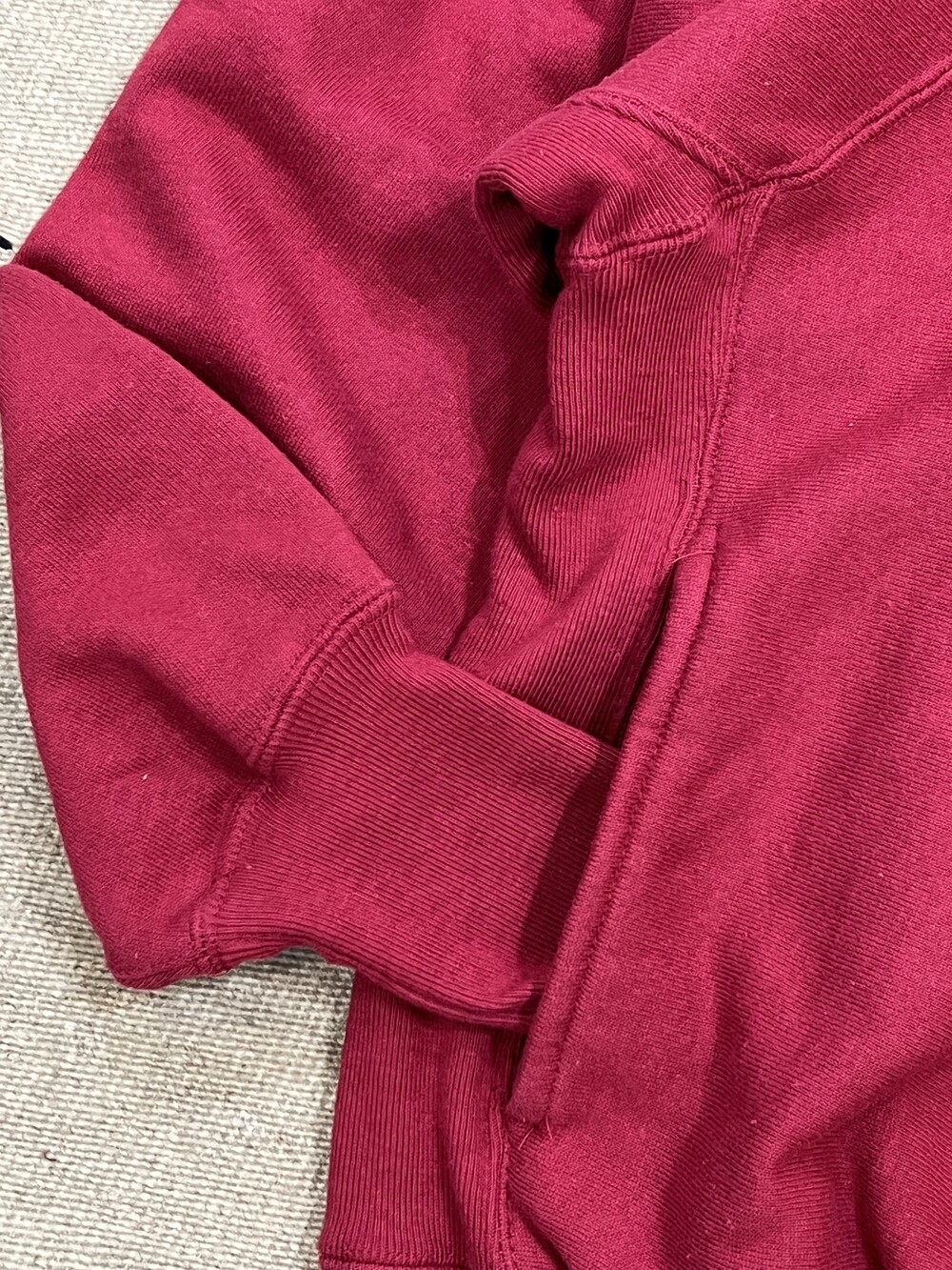[Details] - 일반적인 의류의 재단방향을 90도로 돌려 재단하여 제작된 리버스위브 타입 - 암홀을 의도적으로 넓게 키운 프리덤 슬리브(Freedom Sleeve) - 암홀 아랫부분 몸판을 잡아주는 역할을 하는 양쪽 사이드패널(Side Panel) - 래글런 슬리브의 모크넥 타입으로, 전면 사이드 포켓까지 있는 독특한 개체