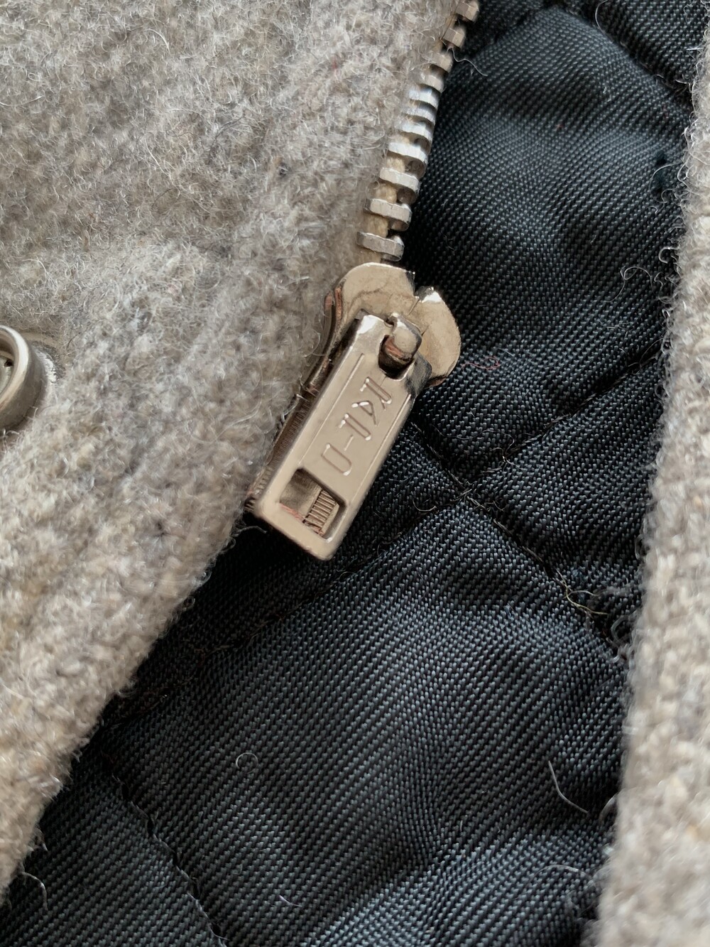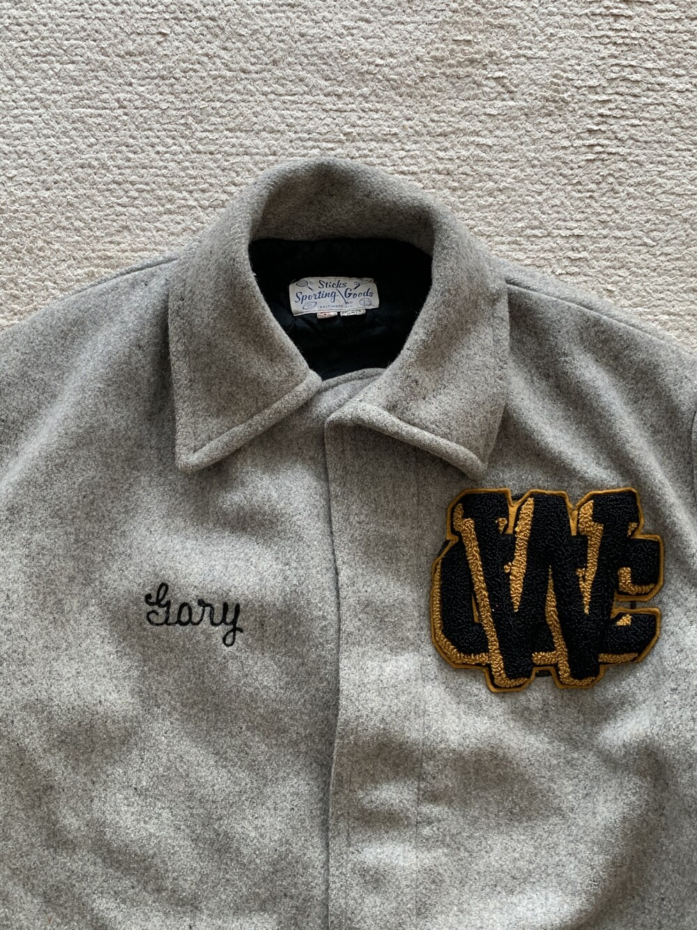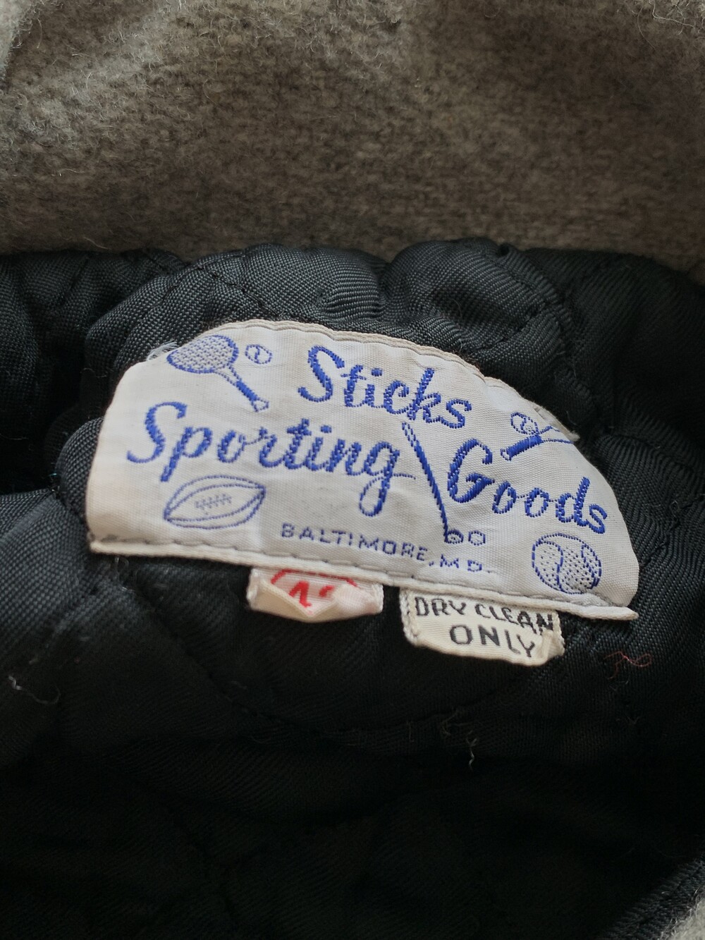 🚩Detail 바시티 자켓 혹은 어워드 자켓으로 부를만한 팀 자켓을 생산하는 미국발 메이커 중 하나인 Sticks Sporting Goods 에서 제작한 올드 사양 울 스포츠 자켓. 미국 메릴랜드 주에 위치한 GRAY MANOR SPORTSMANS CLUB 에 소속된 팀원들의 유대감과 소속감을 고취시키기 위해 주문 제작한 제품으로 추정됩니다. 밑단에 립이 없어 일반적인 어워드 자켓에 비해 기장이 긴 유형으로 두께감있는 전면 셔닐 패치, 포켓 안쪽 원단, RAPID 지퍼 등 연식을 가늠케하는 디테일이 배치되어 있습니다.