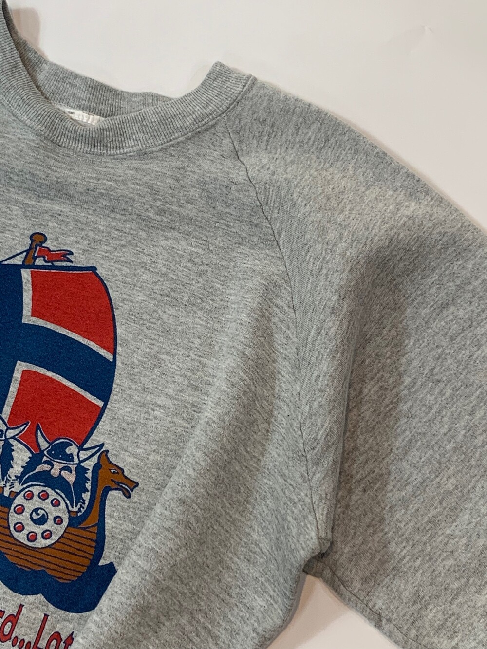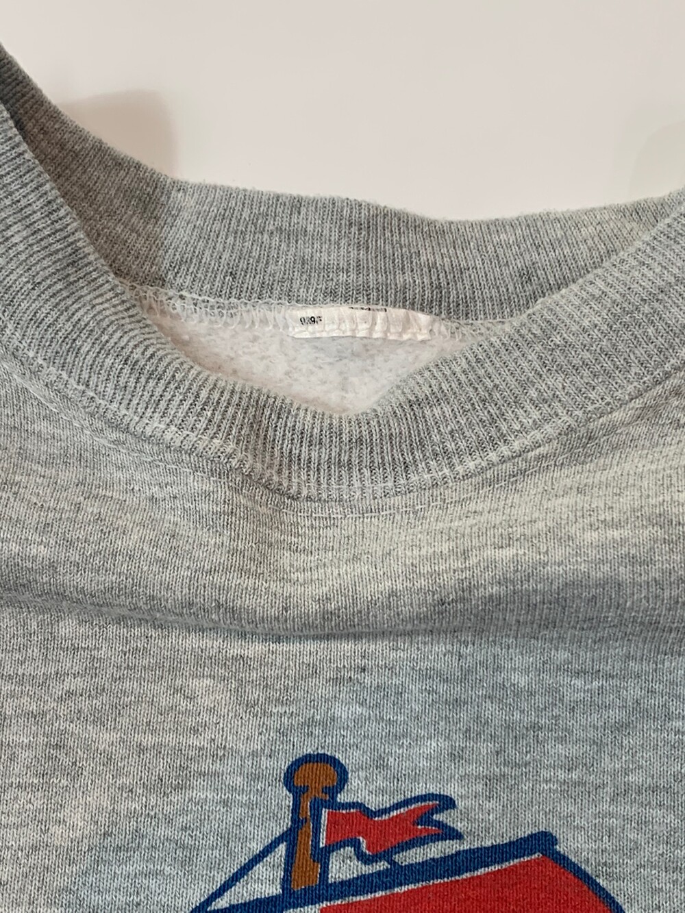🚩Detail 몸판과 밑단 립 측면에 봉제선이 없는 모양새가 원통형 관 모양과 같다고 하여 튜블러(Tubular) 수식어가 붙습니다. 라벨은 유실되어 정확한 메이커를 알 수 없는 튜블러 스웻셔츠입니다. 암홀이 넓지 않아 품에 비해 길어보이는 기장감(실제로는 그리 길지는 않습니다), 살짝 좁은듯한 인상의 슬리브 너비 등을 고려했을 때 프룻오브더룸의 바디인 것으로 추측할 수 있습니다. 전면에는 카툰풍의 노르웨이 바이킹 프린팅이 올려져 캐주얼하게 활용하기 좋을만한 제품입니다.