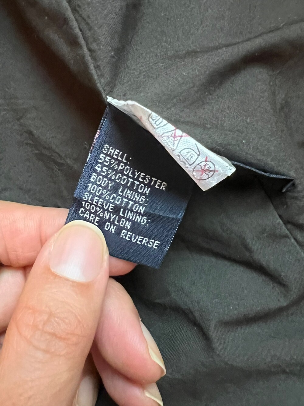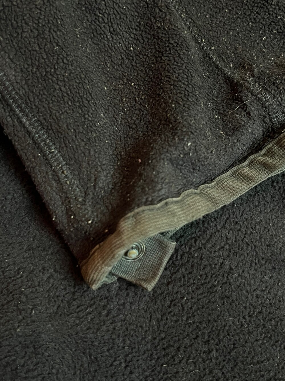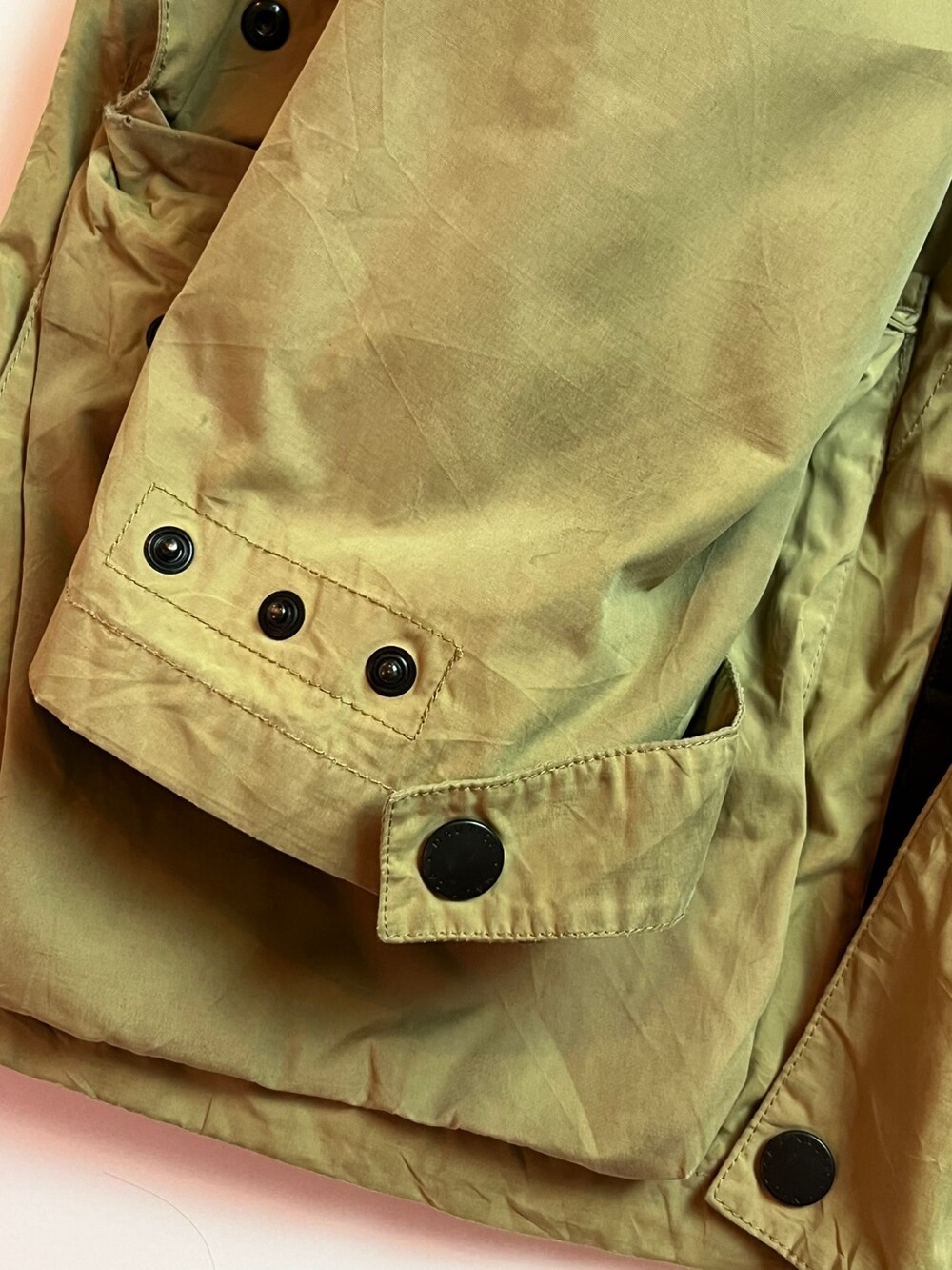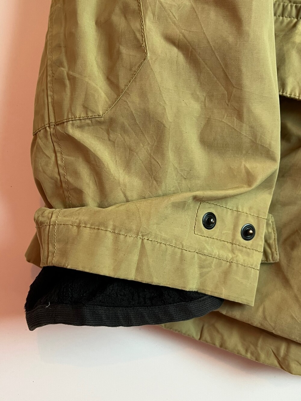🚩Detail 물을 뿌렸을 때 물방울이 맺히는 것으로 보아 약간의 발수 기능을 갖춘, 옛 마운틴 파카에서 흔히 볼 수 있는 혼용률인 폴리60/코튼40 원단의 기능성과 왁스드 코튼(Waxed Cotton) 특유의 질감을 구현하기 위한 목적으로 이러한 혼방 원단을 아웃쉘로 사용한 것이 아닌가 싶습니다.