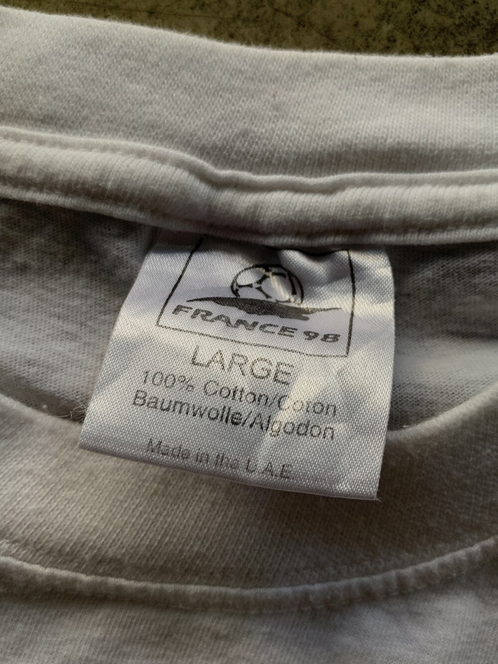 🚩Detail 개최국이자 당시 월드컵에서 우승을 차지한 프랑스에서 열린 1998년 프랑스 월드컵 굿즈 중 하나로, 오피셜 스폰서 중 하나인 듀라셀의 마스코트 듀라셀 버니(DURACELL BUNNY) 프린팅이 전면과 소매에 올려진 프린팅이 돋보이는 제품입니다. 당시 공인구가 아디다스의 티로콜로르로, 그래서인지 듀라셀 버니 역시 아디다스의 축구화를 신은 모습으로 풋볼기어 스폰서까지 은근히 드러내는 디테일을 확인할 수 있습니다.